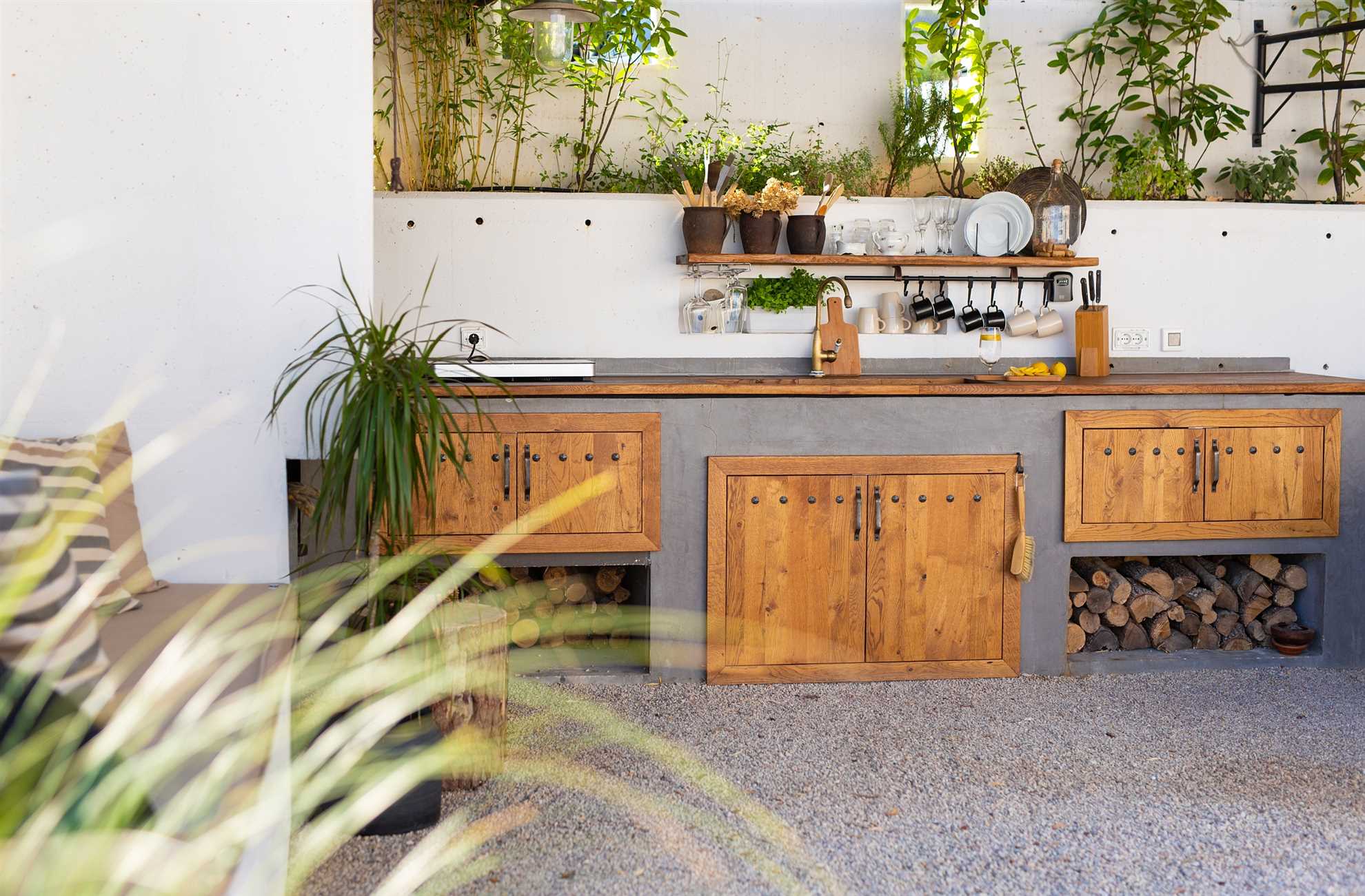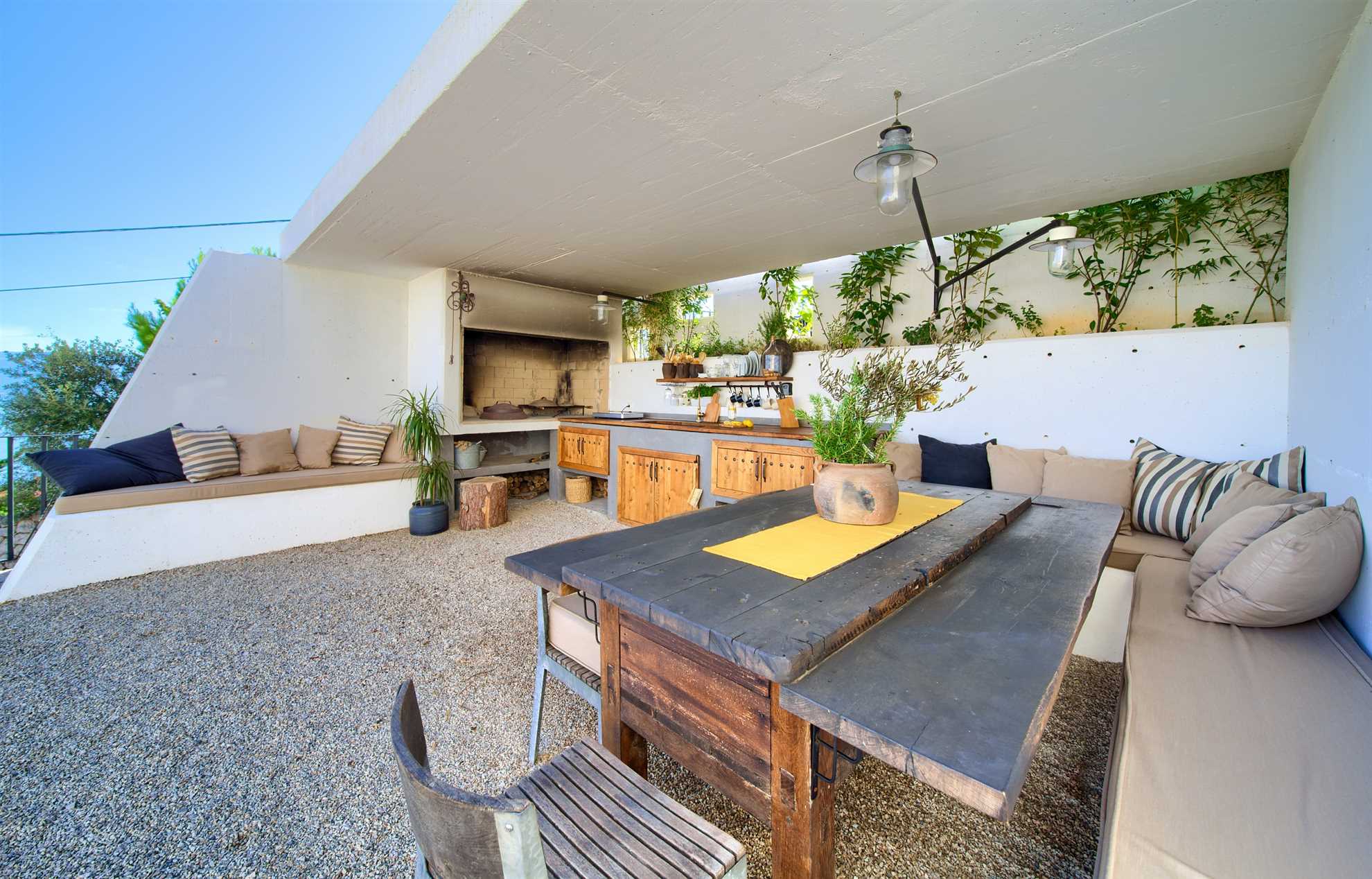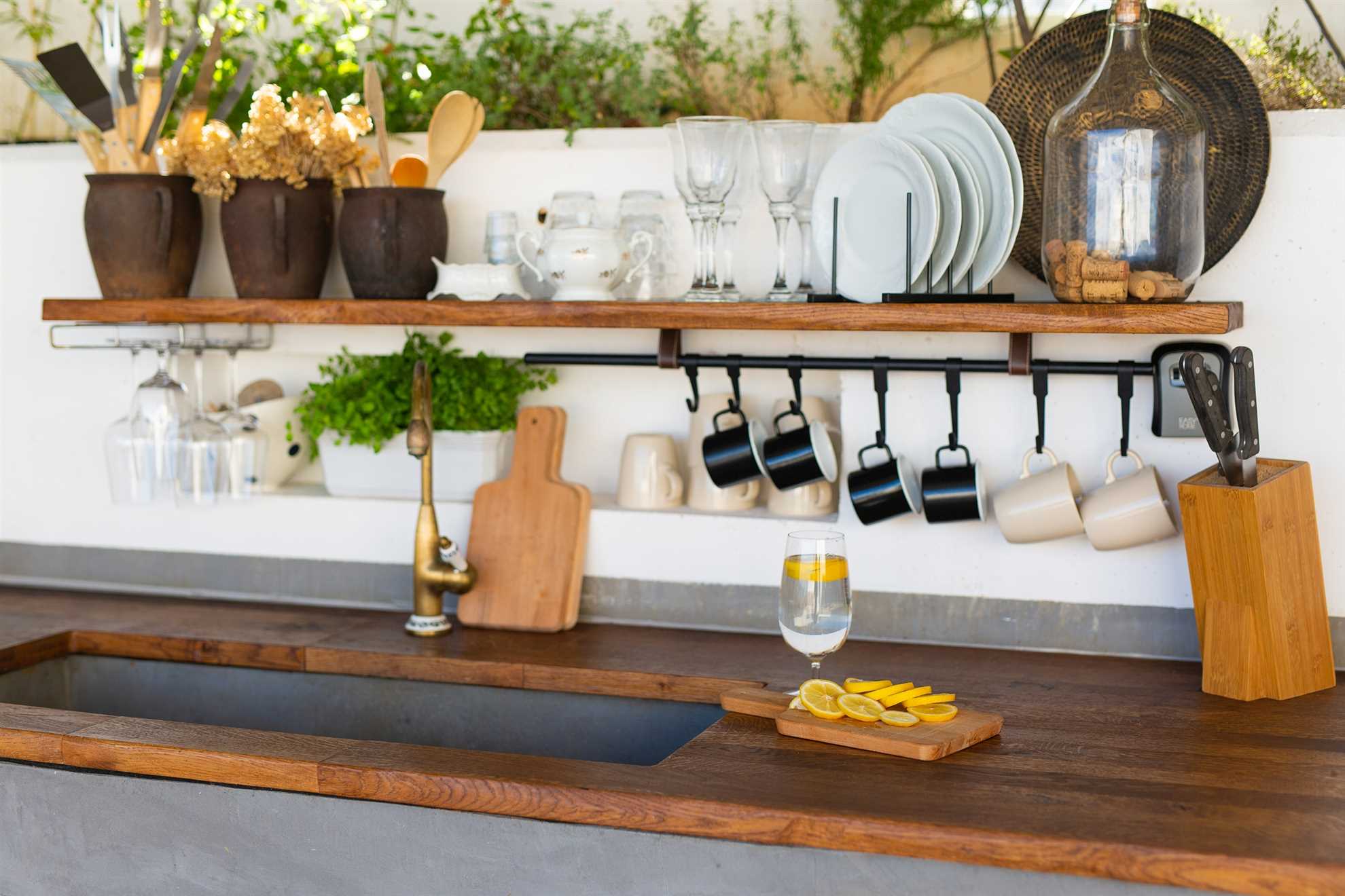The covered outdoor kitchen offers the perfect comfort of a true functional kitchen, while a huge wooden oak table, a former "hoblpank" hosts all of you with relaxed and positive energy, recumbent on the soft cushions around it. Socialising is thus mixed with the cooking creativity of individuals and the hedonistic casualness of the eaters. This pleasant outdoor corner overlooking the sea and yoga space gives you a lot of inspiration and fills you with energy.