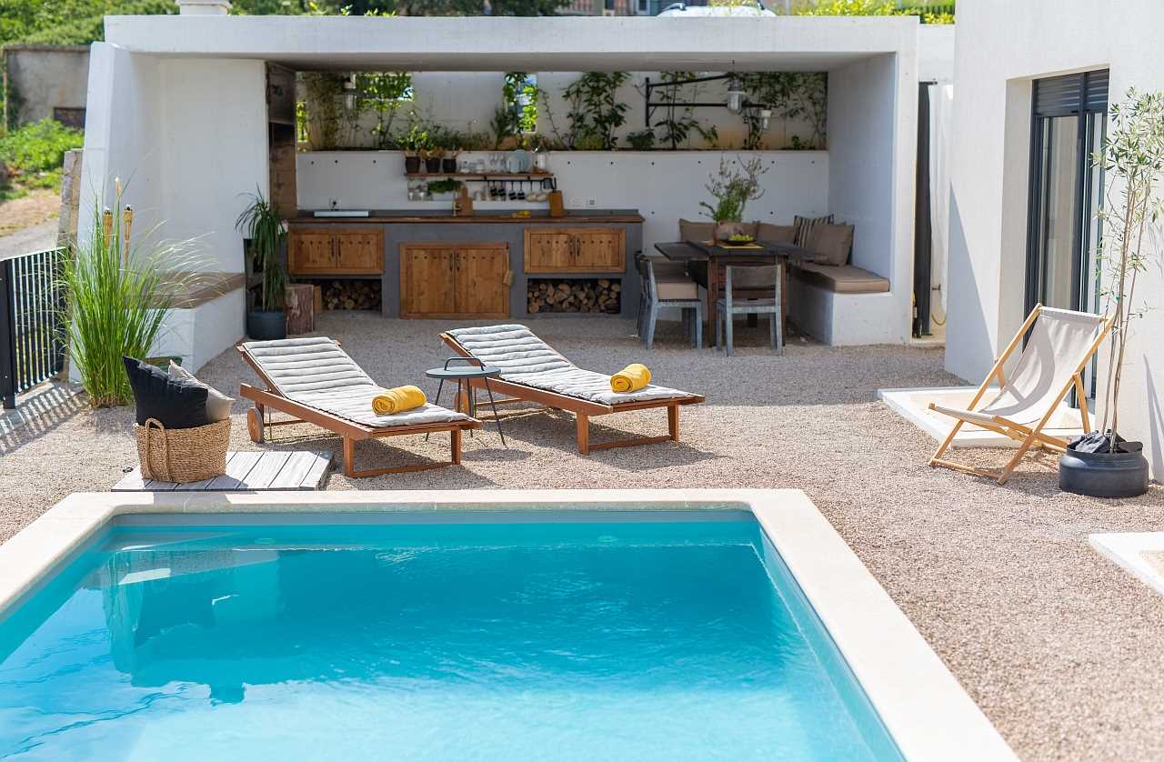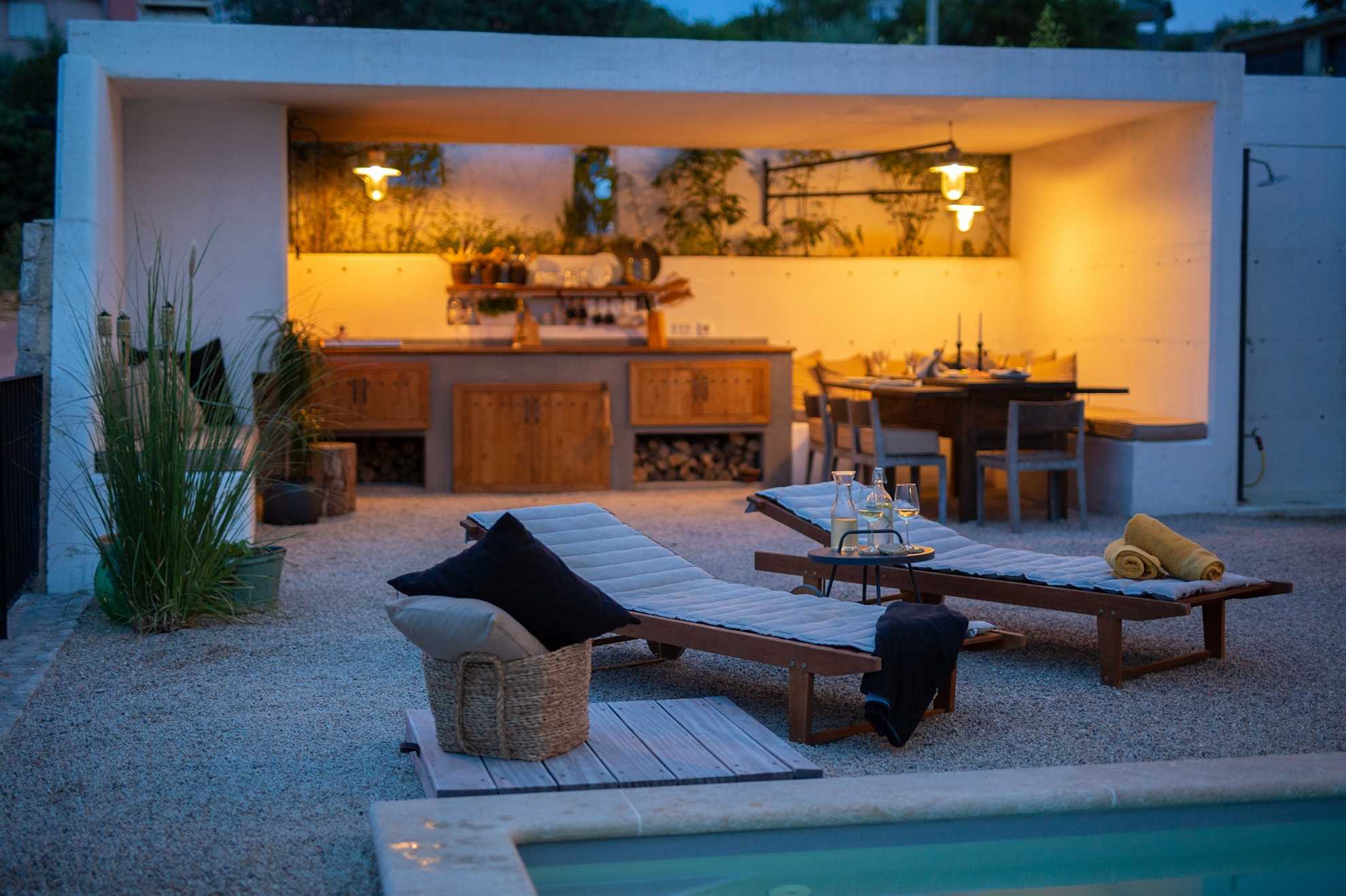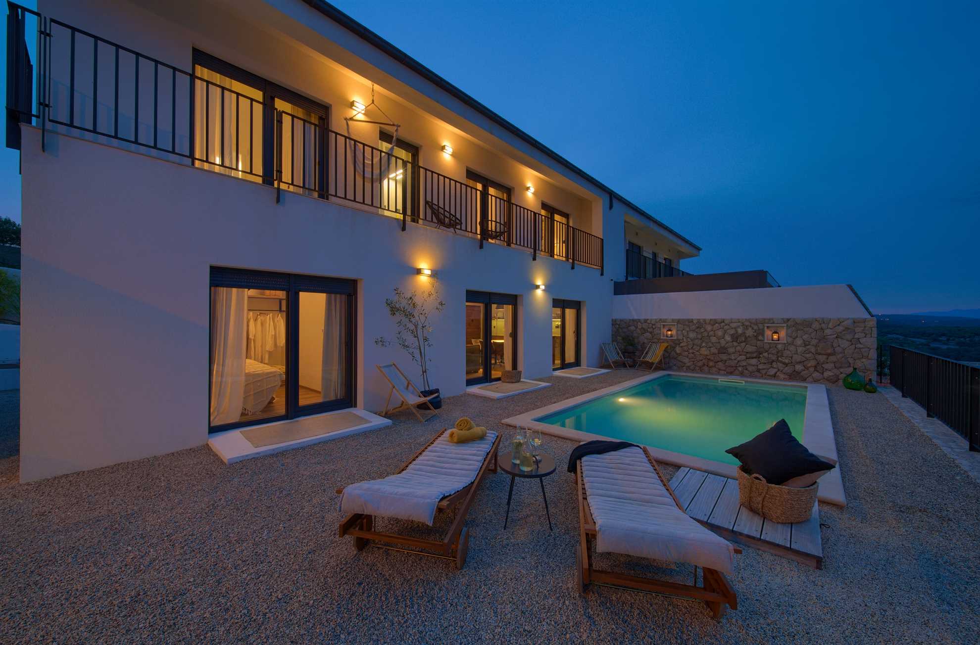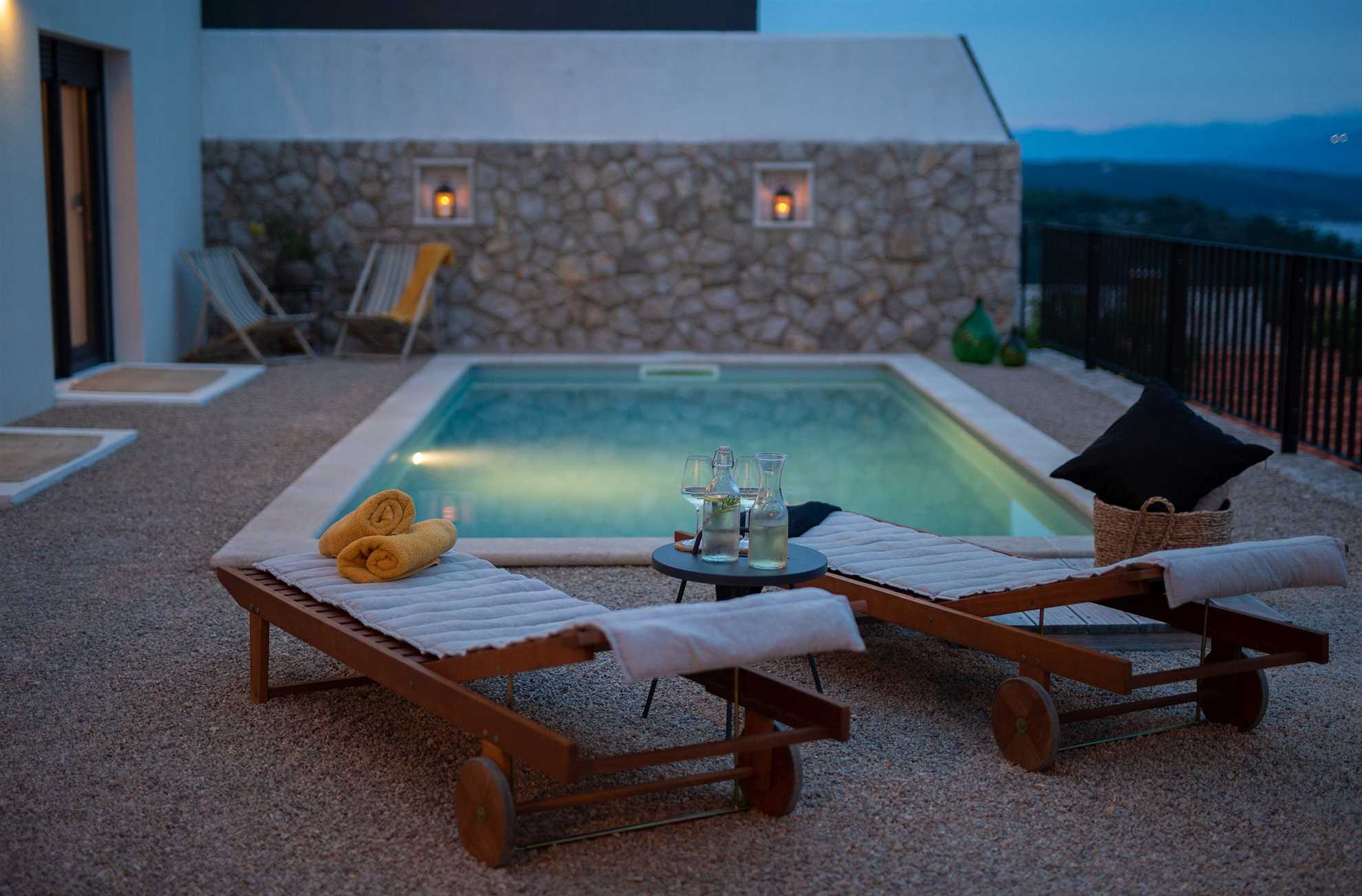Kucha 26b can host up to 7 guests, which offers a pleasant and fenced functional outdoor space for relaxation and a real vacation. Everything is designed for holiday enjoyment, slacking, sunbathing and swimming in the pool. The villa has central underfloor heating and a cooling system. In combination with a fireplace, it is an excellent choice if you are planning a spring or autumn vacation. The town's well-maintained beach is an 8-minute walk away. There are also two parking spaces.