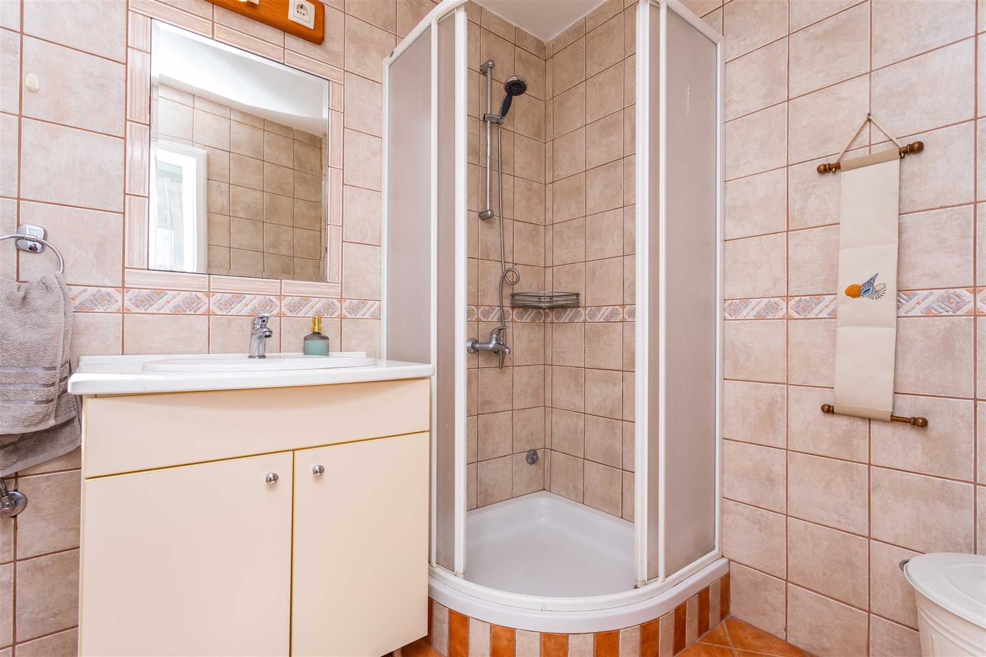 One of Villa Pinia's most unique features is the additional guest house located near the pool. This separate unit includes a spacious bedroom with a large double bed and its own en-suite bathroom with a shower, making it ideal for guests who prefer some extra privacy. With this extra bedroom, the villa can comfortably host up to eight people, providing enough space for larger groups or multiple families.