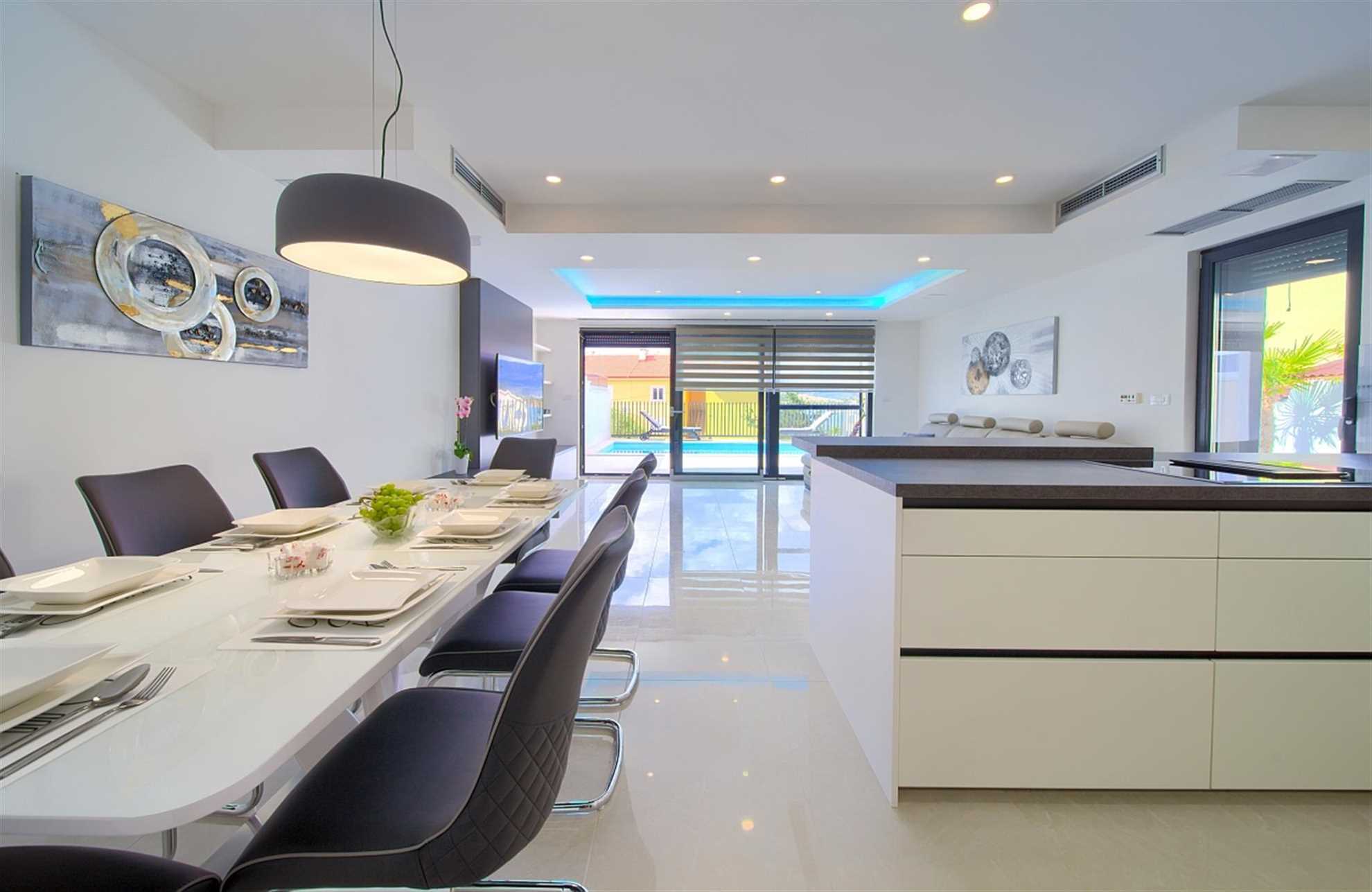 Villa Dama is fully air-conditioned, with a central ventilation system that ensures a continuous supply of fresh air and optimal temperature throughout. Elegant ambient lighting adds a luxurious touch and creates a cozy atmosphere in the evenings. Wi-Fi is available throughout the villa, allowing you to stay connected effortlessly. Additionally, there is a convenient cellar near the parking area where you can store sports equipment, such as bikes, paddleboards, or other outdoor gear.