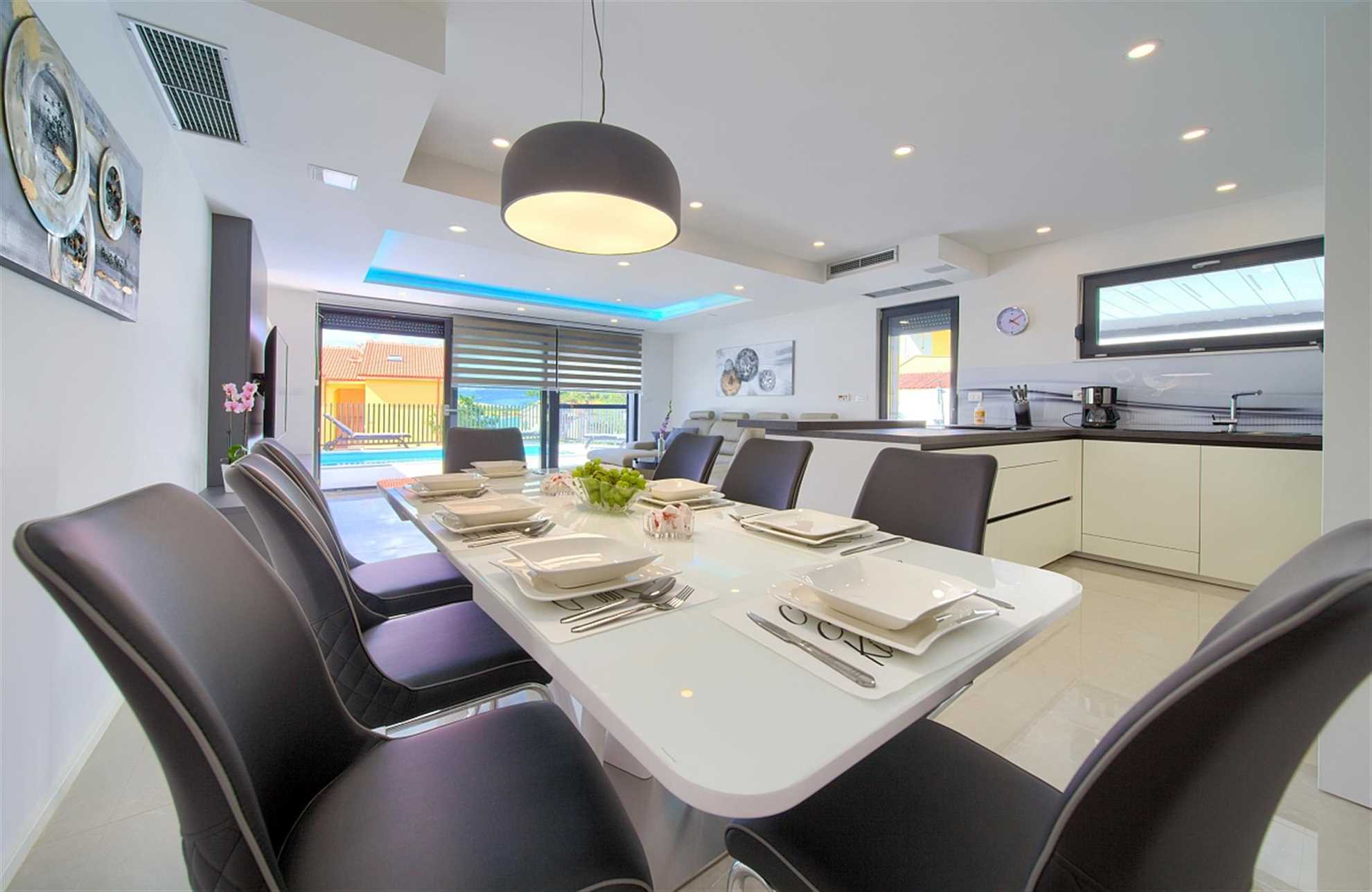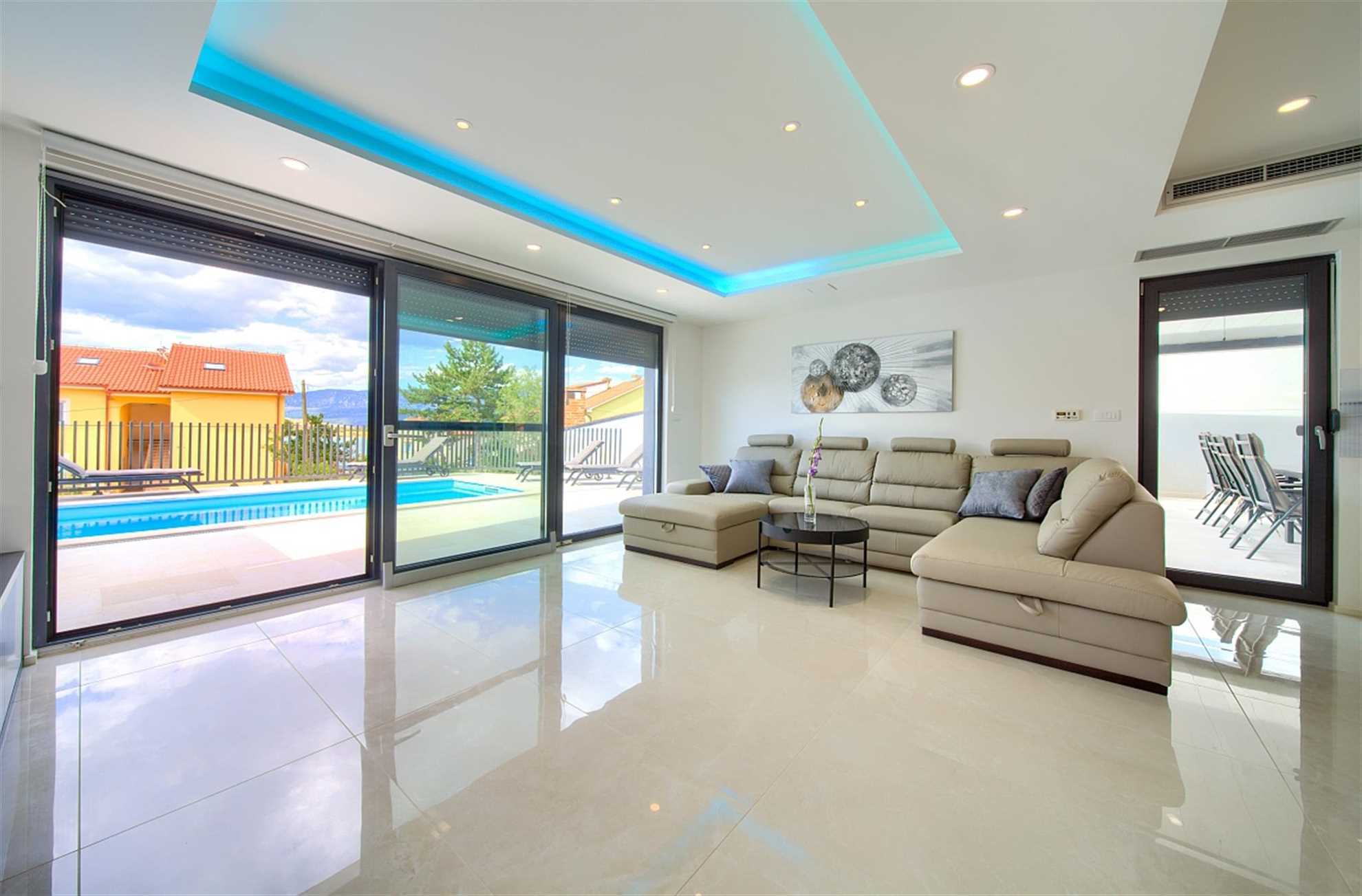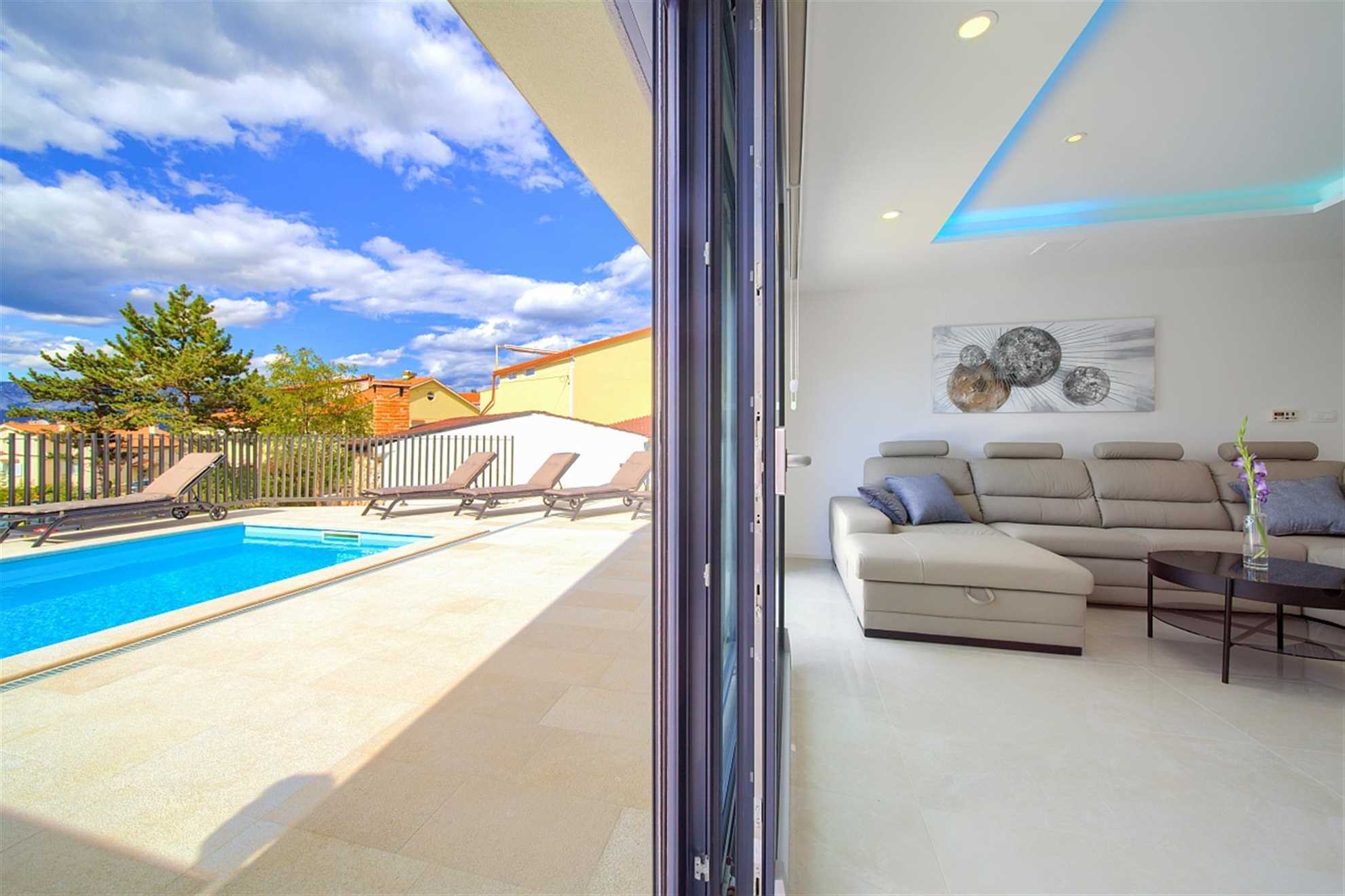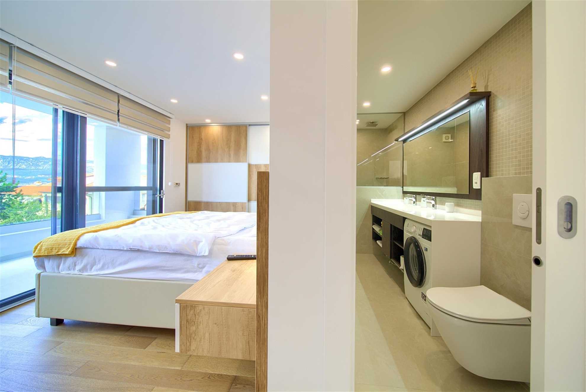 Villa Dama is a spacious, modern villa just 50 meters from the sea, located in the serene and picturesque village of Klimno on the island of Krk. It is ideal for those seeking a luxurious getaway near the coast, where you can enjoy breathtaking views of the sea and the utmost privacy. The villa’s unique architectural design combines modern elegance with a sense of exclusivity. Although it is part of a semi-detached property, Villa Dama offers complete privacy, providing a peaceful and relaxing retreat for individuals, couples, or families.
