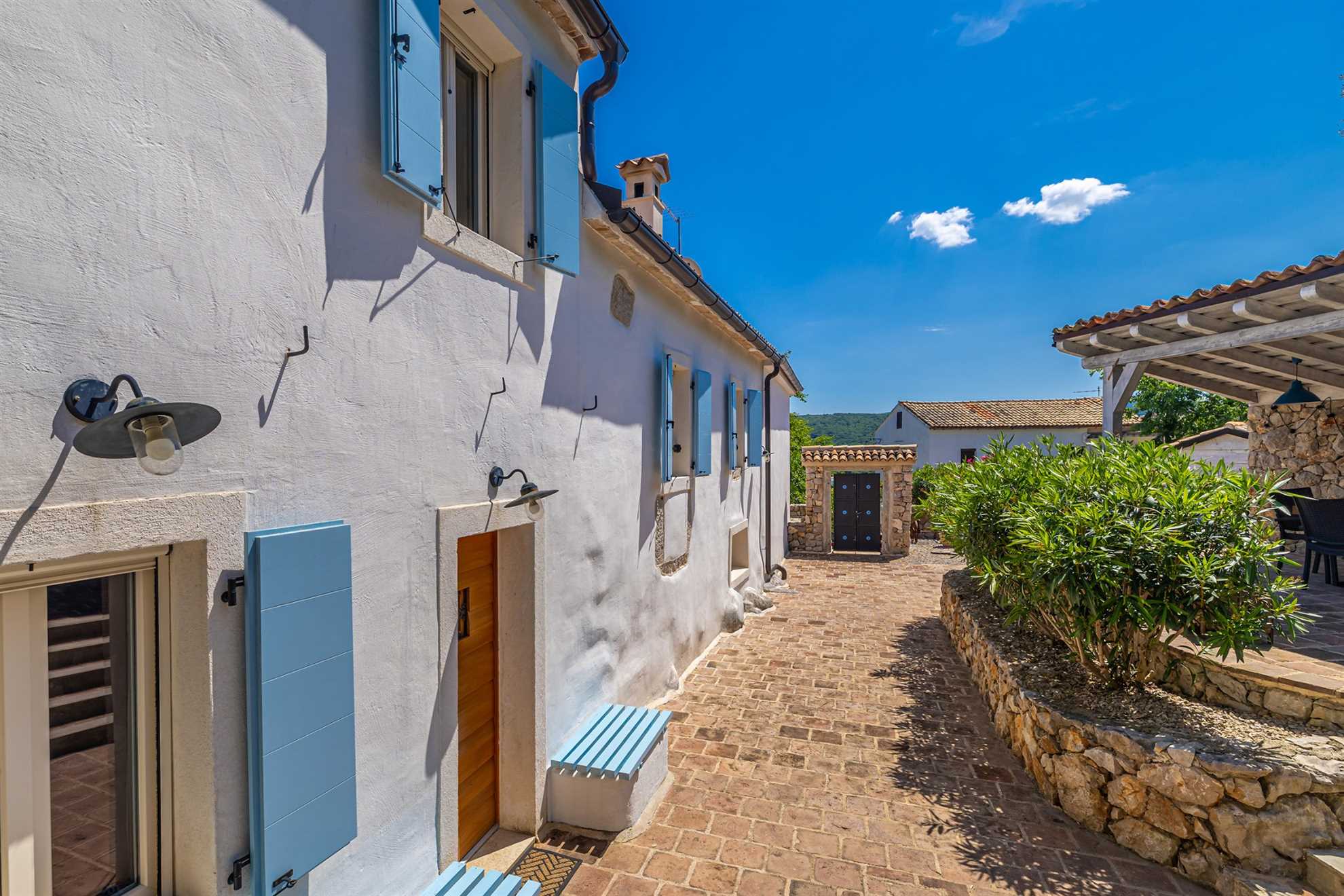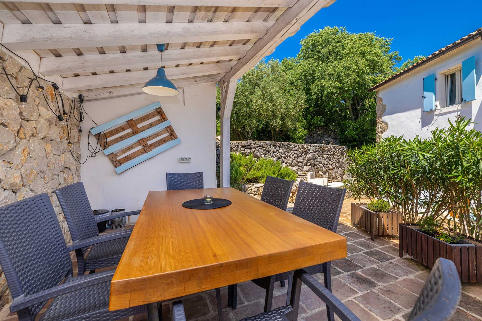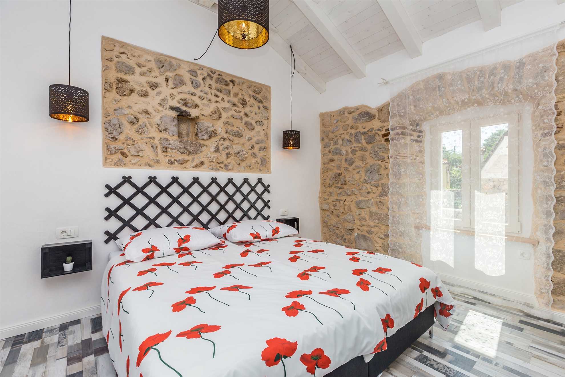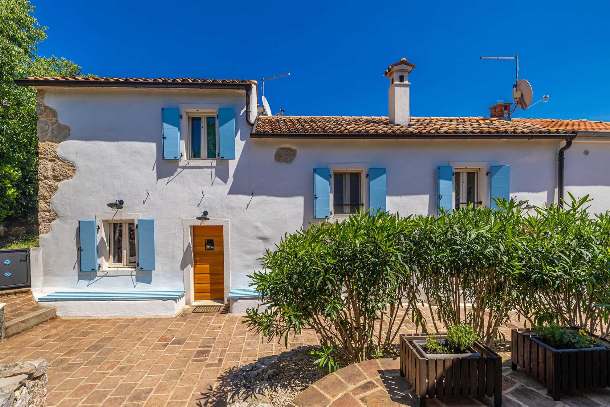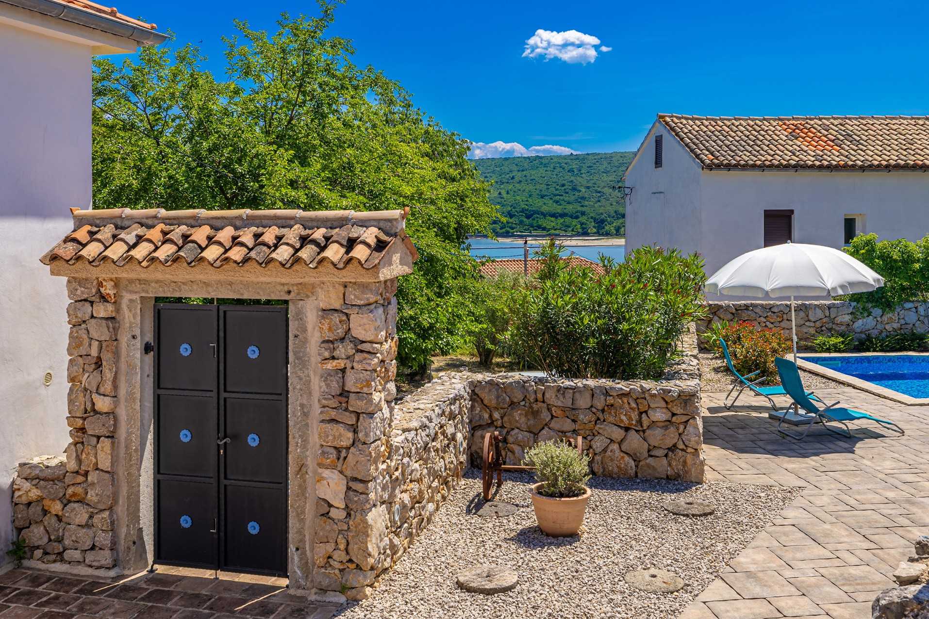 Luxury stone house with private swimming pool for 6 persons. It is located in Čižići on the island of Krk.The house has two bedrooms, two bathrooms and an outside bathroom. The holiday home is situated in a residential beach area, close to restaurants and bars, shops and supermarkets and at 400 m from the beach. Air-conditioned and fully furnished, the house is ideal for holidays with family or friends. Pets are welcome! The pool is open 01.03.-20.11.