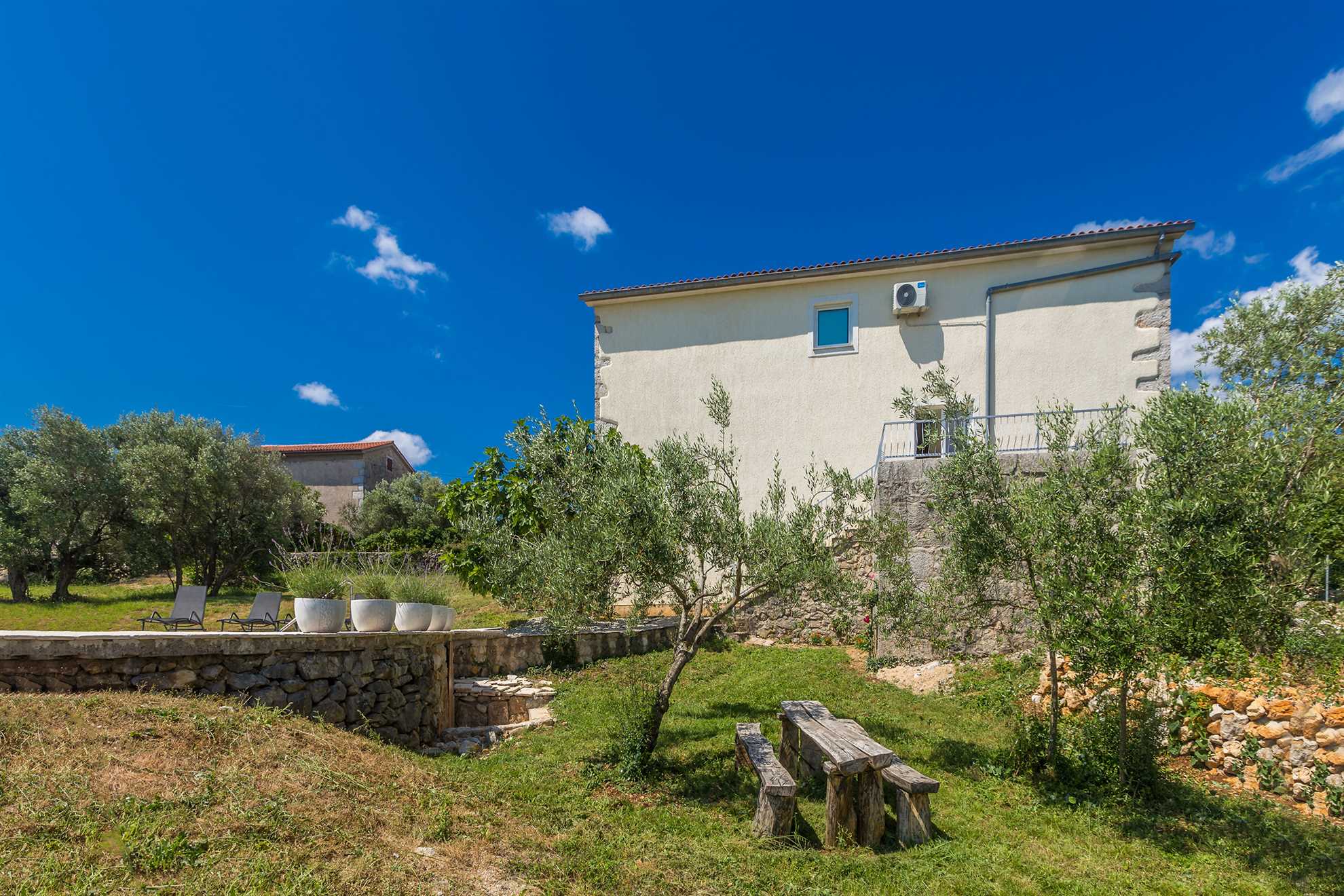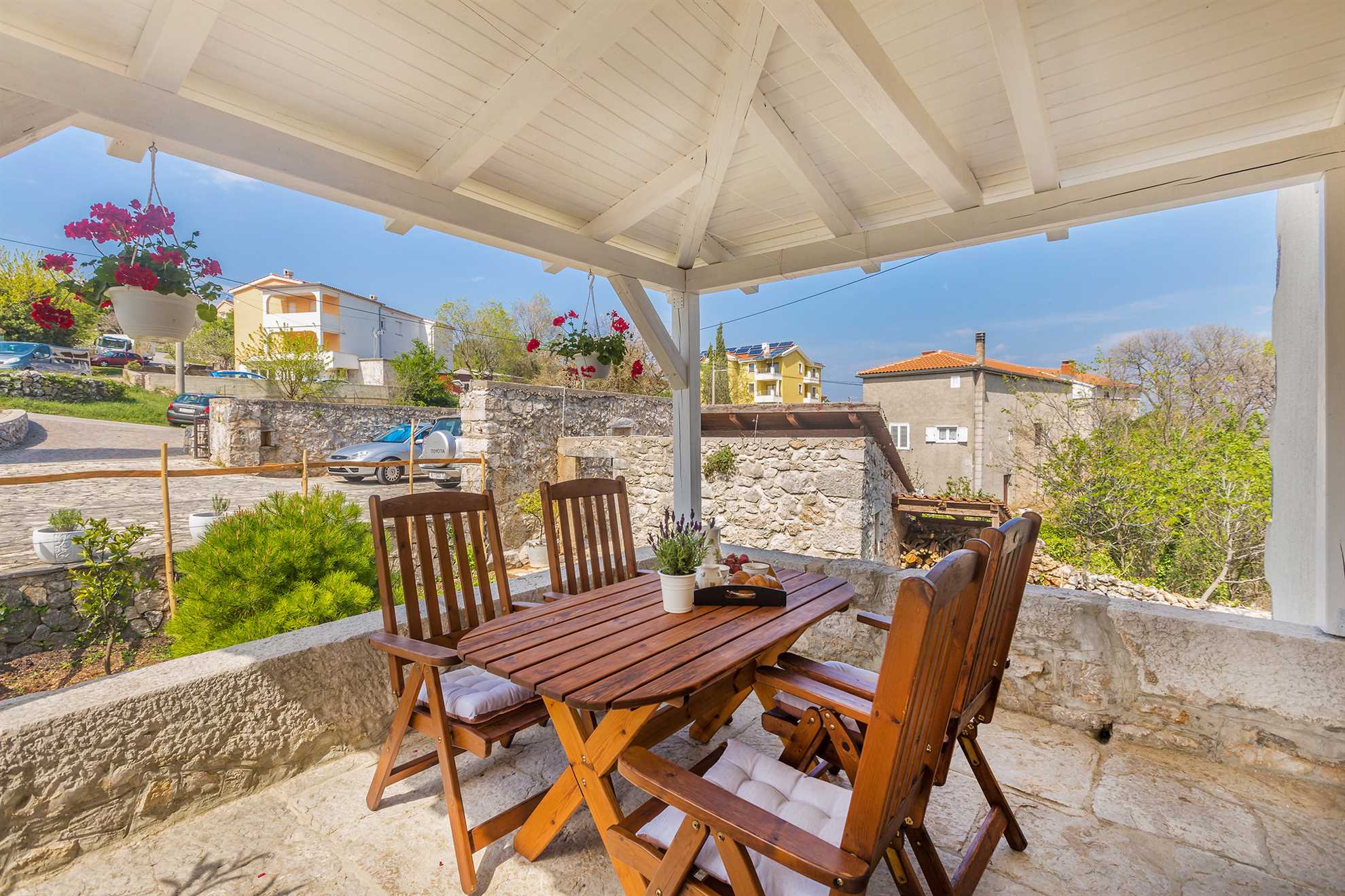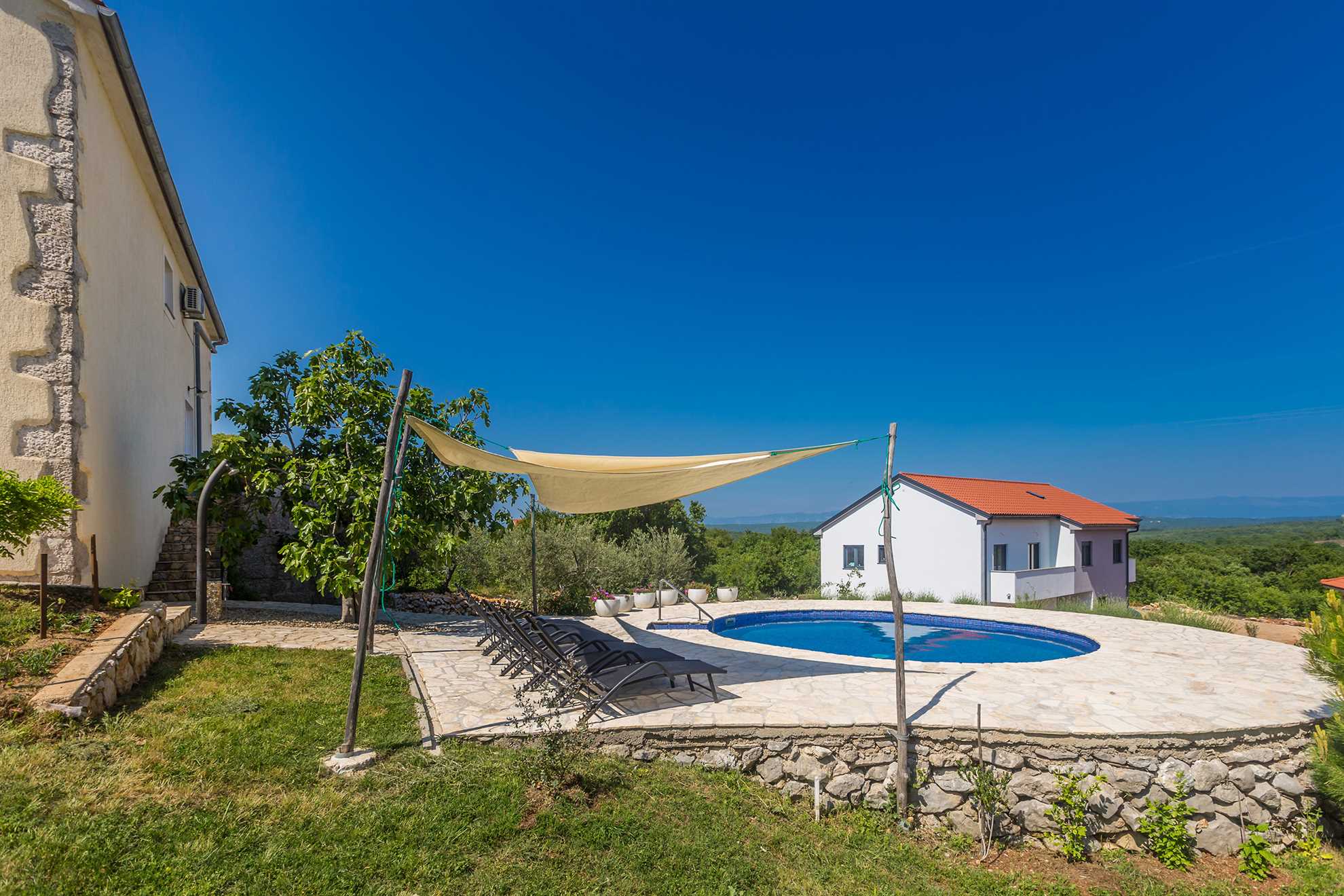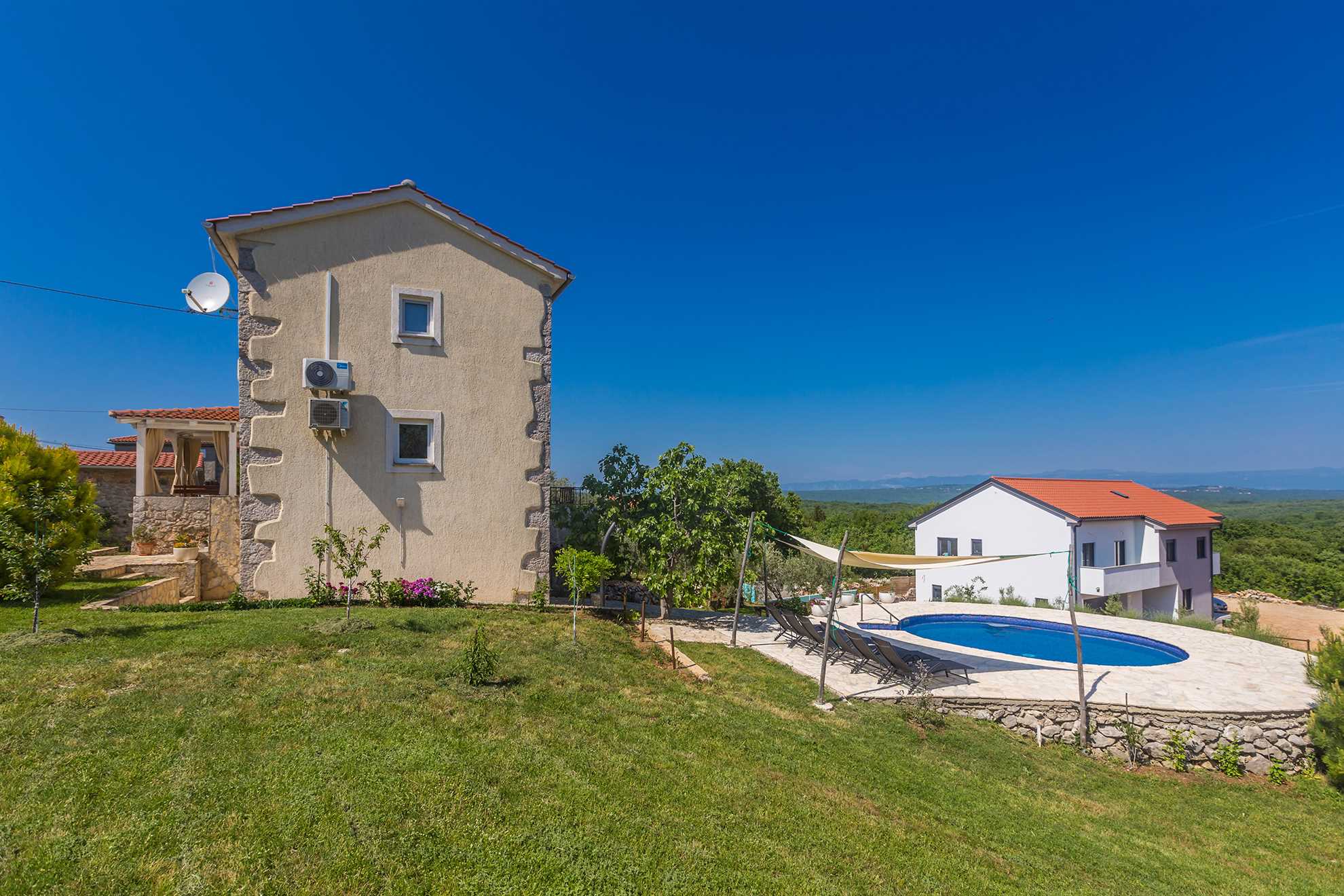 Beautiful stone house Jele is located in Salatici, on the island of Krk, just 5 minutes from town. This holiday home offers beautiful views of nature and features a large garden with a swimming pool, making it a great place for a relaxing day with family or friends. The house features three bedrooms, a bathroom, an additional toilette, a fully equipped kitchen with a dining area, a living room, and a covered terrace. The entire property is spread over two floors. It also features a barbecue, sun loungers, and an outdoor dining area. Pets are welcome. Parking is provided.