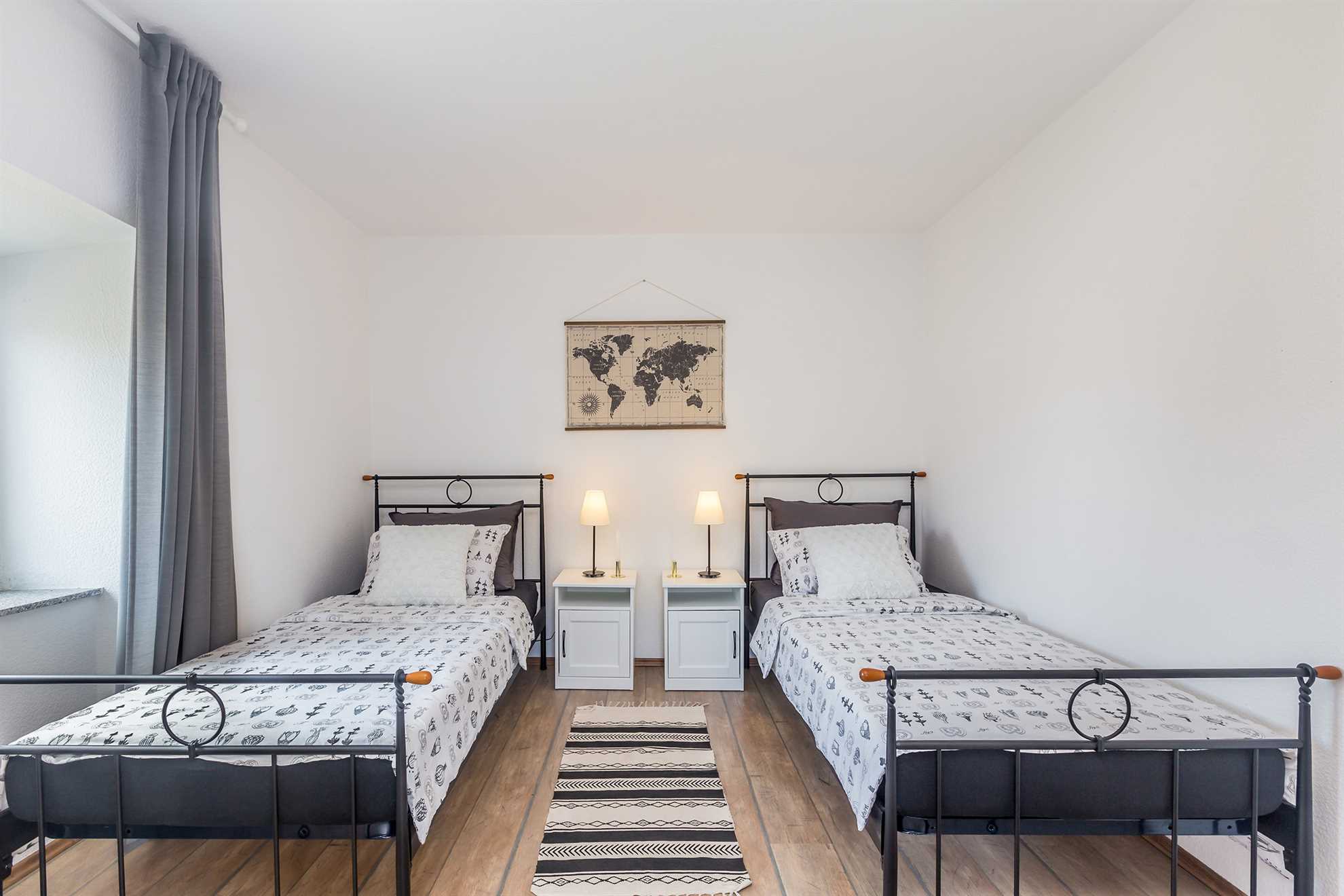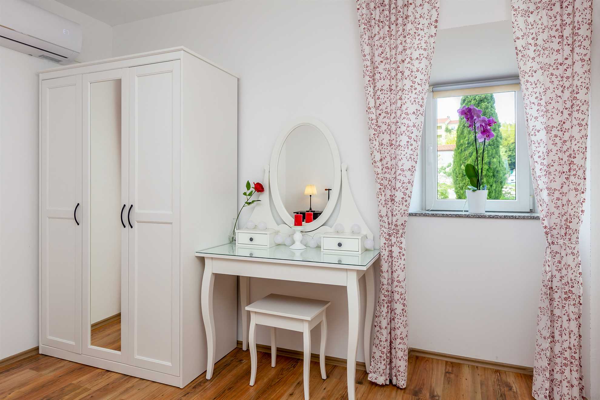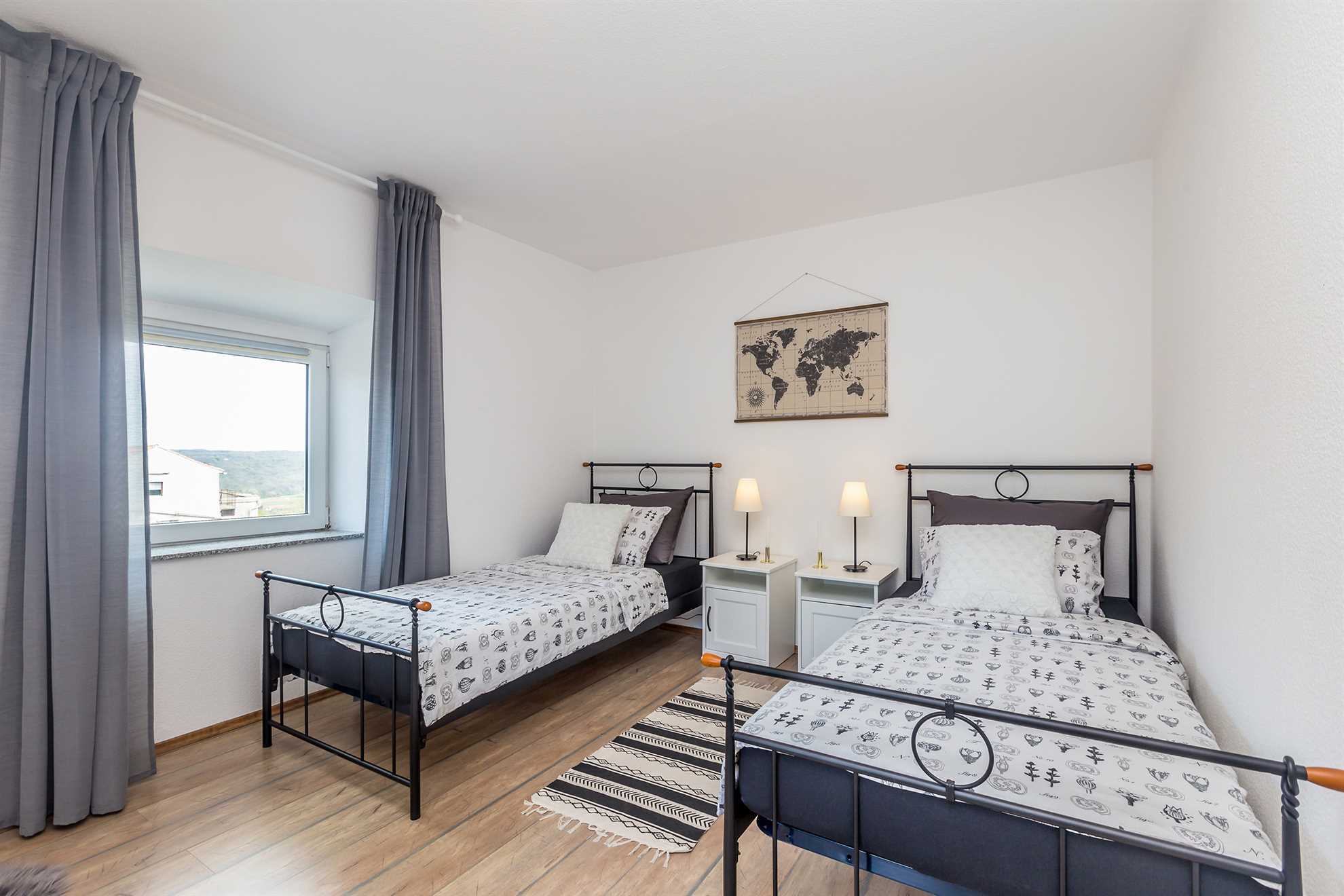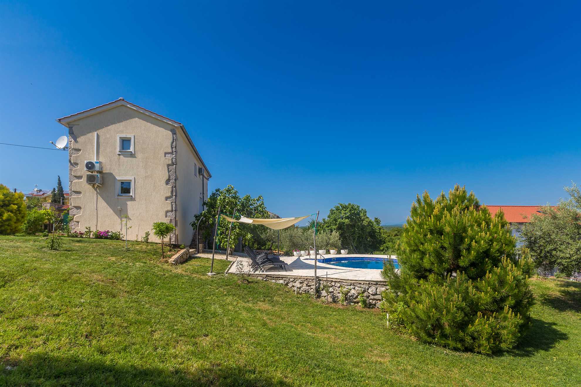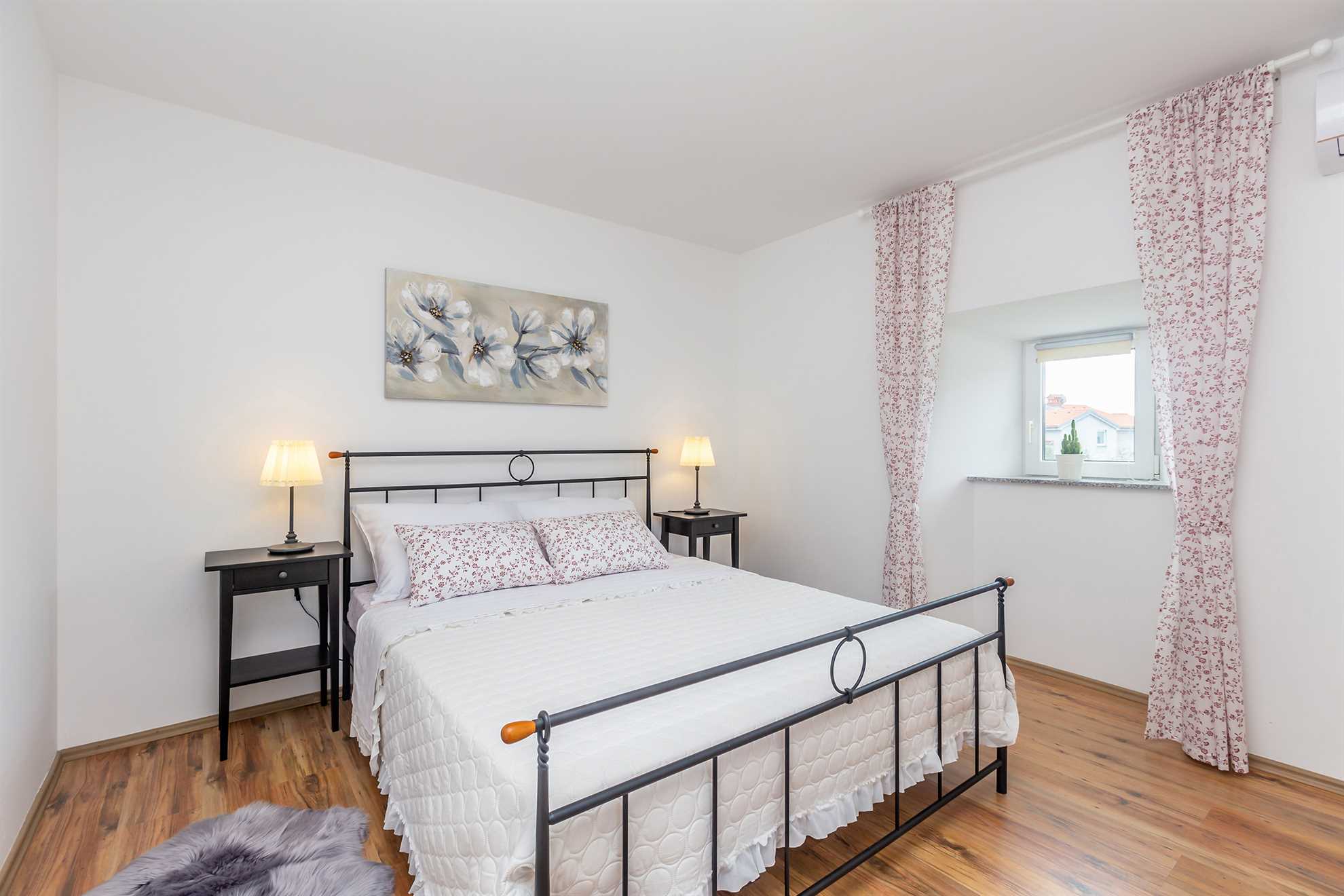 Beautiful stone house Jele is located in Salatici, on the island of Krk, just 5 minutes from town. This holiday home offers beautiful views of nature and features a large garden with a swimming pool, making it a great place for a relaxing day with family or friends. The house features three bedrooms, a bathroom, an additional toilette, a fully equipped kitchen with a dining area, a living room, and a covered terrace. The entire property is spread over two floors. It also features a barbecue, sun loungers, and an outdoor dining area. Pets are welcome. Parking is provided.