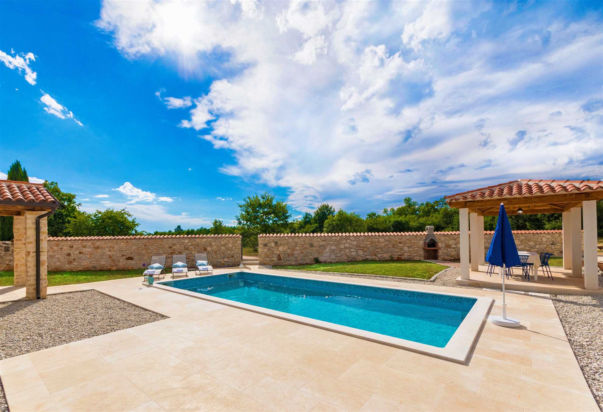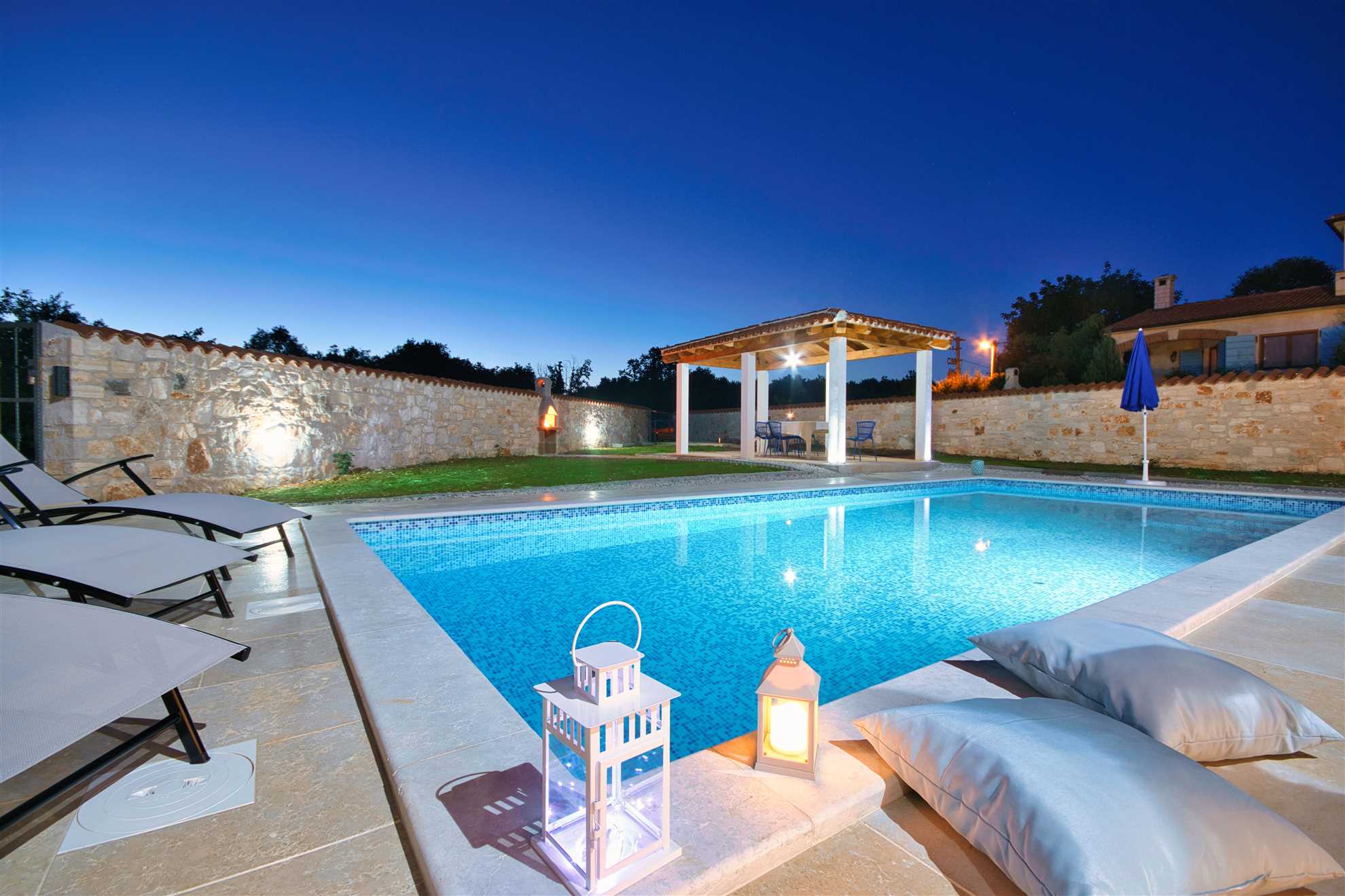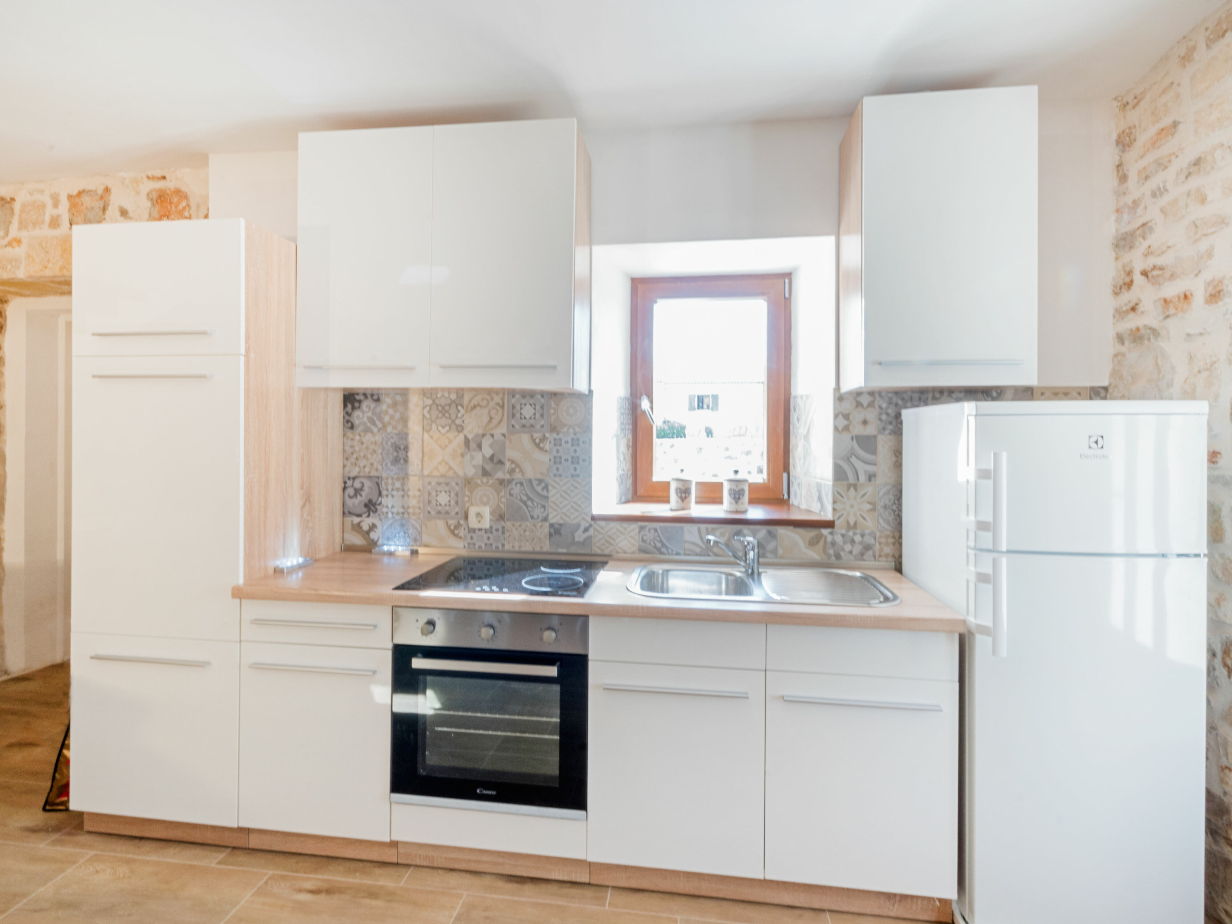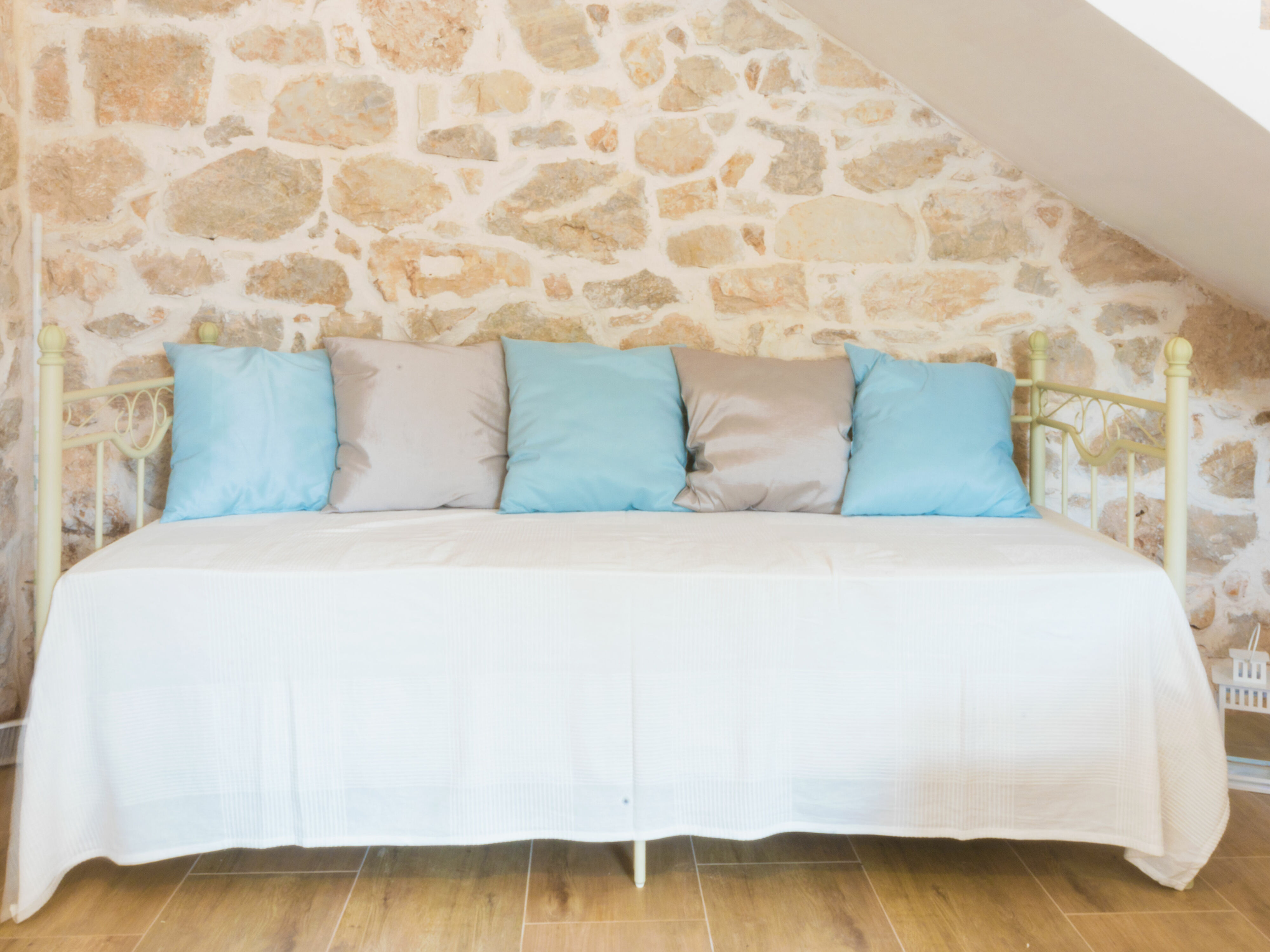 A beautifully decorated villa, charming, hospitable, warm and romantic. The living room, dining room and kitchen make a large, spacious and open living area, with plenty of light, large windows and a garden exit. The kitchen is fully equipped. In the private garden you can enjoy the pool, wooden deckchairs, and plenty of space. The interior and the garden are close and well connected. We are looking forward to your arrival at Villa Lucy.