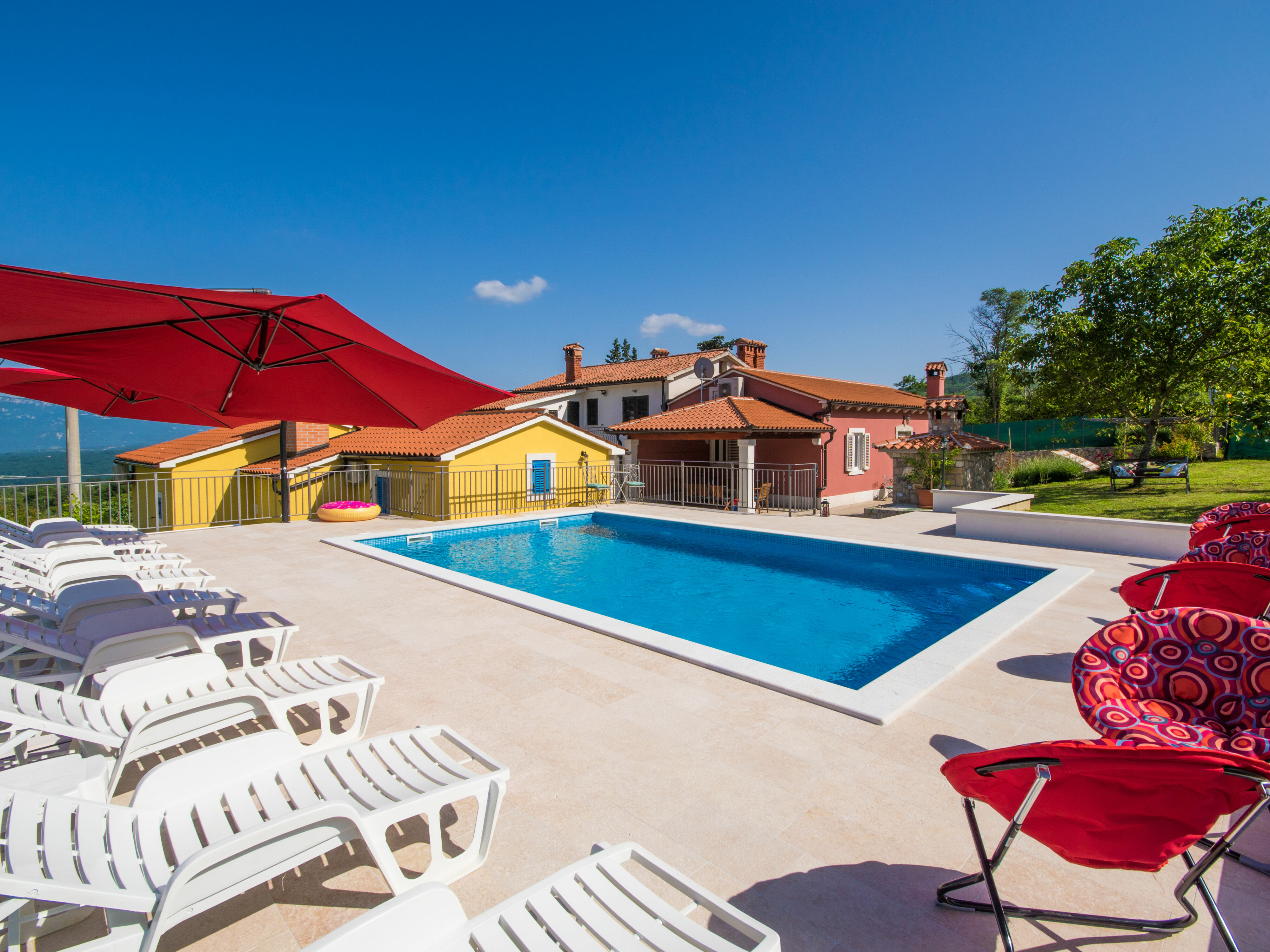 Below the hill town of Pićan, only 15 kilometres from the beach, you will find this beautiful pool villa and its 1 hectare garden. An open terrace with a barbecue and a dining table overlooks the pool, where you can spend most of your time in Istria. The house consists of two houses on the ground floor (brown and yellow houses on the index photo). Both houses are very comfortably equipped. In total there are 2 kitchens, 2 living rooms, 4 nice bedrooms, 2 bathrooms and a toilet. This arrangement of Villa Maslina offers a special opportunity for a larger group of friends or two families who want to spend the holiday together.