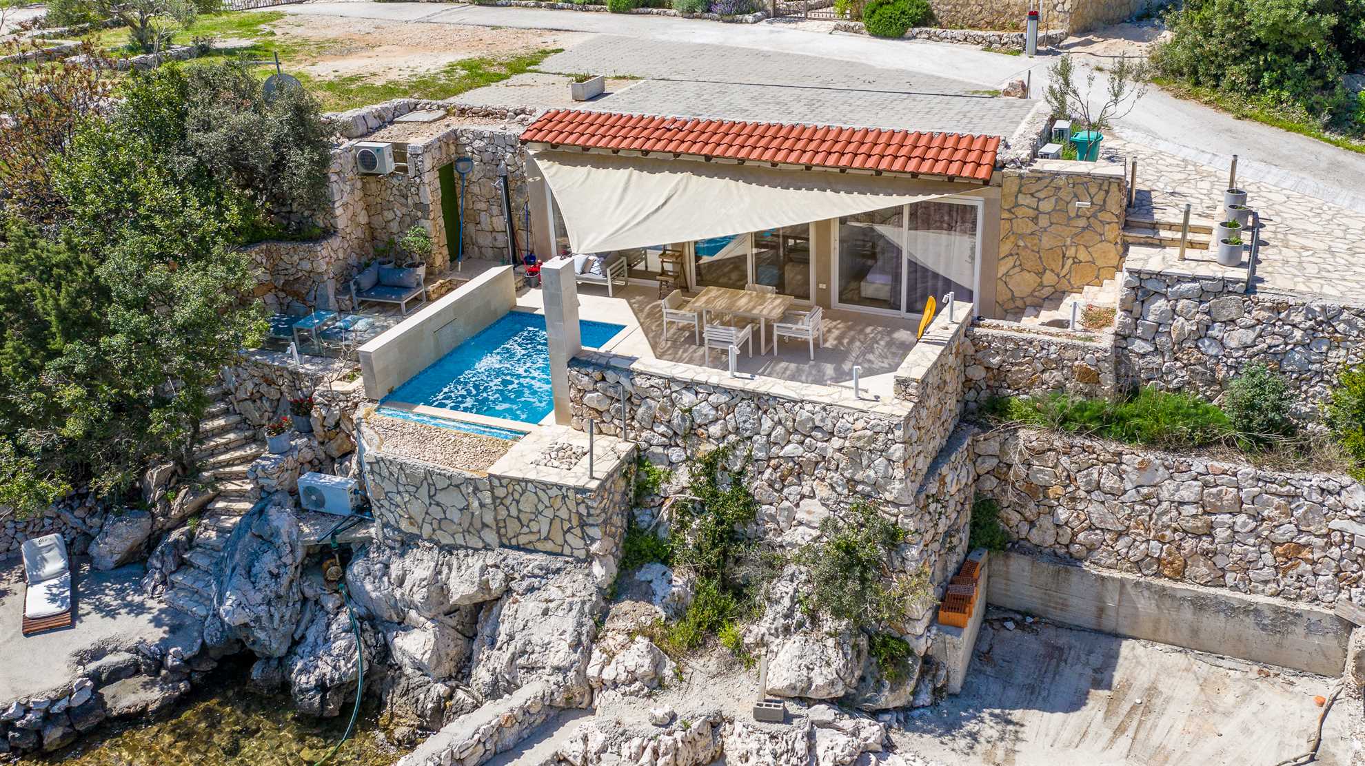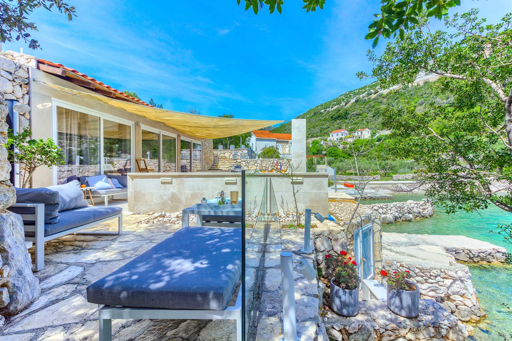 One of a kind charming property located right on the water in a secluded, quiet and tranquil bay. Amara cottage provides comfort, relaxation, privacy and views of the gorgeous landscape in every direction. Without many neighbors around you are sure to have the beautiful blue Adriatic to yourself. At your disposal are two charming double bedrooms and 2 bathrooms, fully equipped kitchen and a small sofa lounge. Facing the sea priceless views can be enjoyed from all the rooms and make waking up here a truly wonderful start to a day. Outdoor stone deck leads to a pool, and is equipped with an alfresco dining area with BBQ facilities, as well as a direct access to the sea. Welcome to the Adriatic.