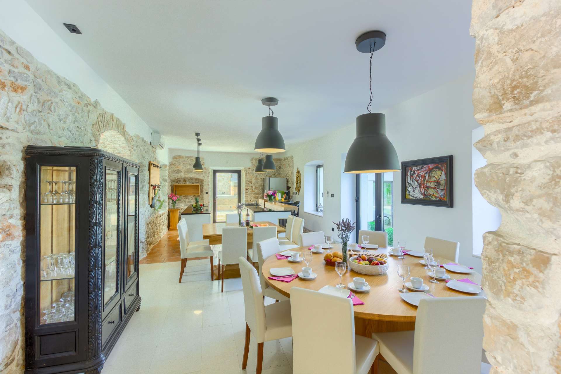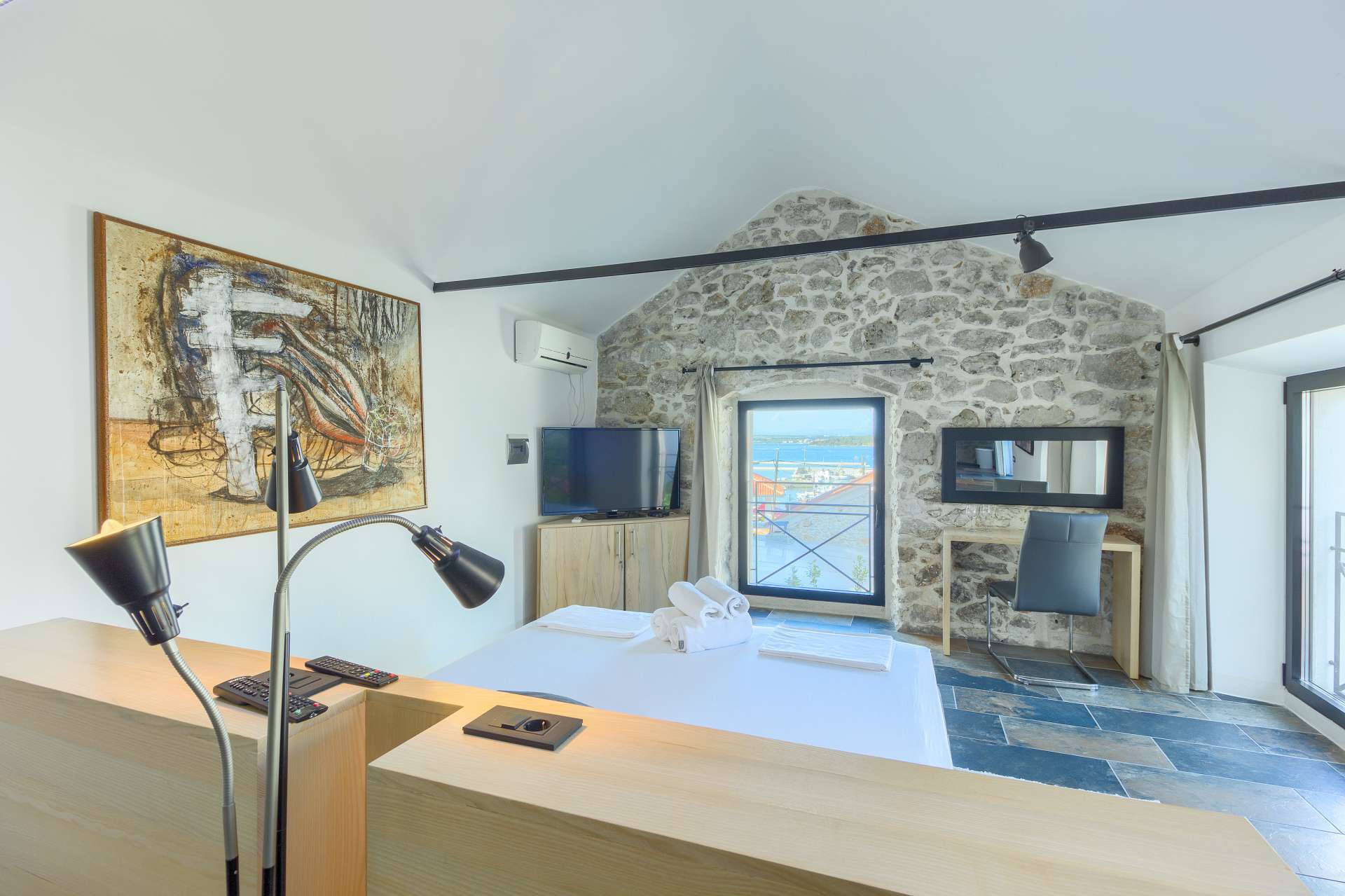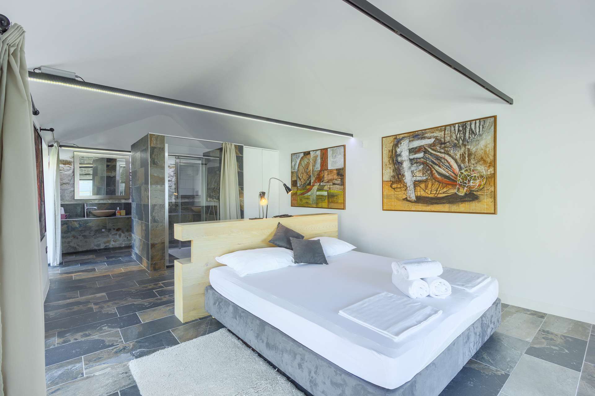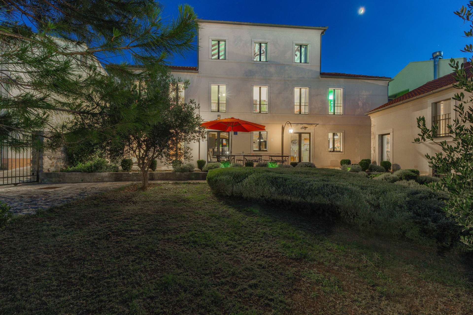 Welcome to Villa Cubismo, only 100 meters away from the sea with capacity to accommodate large groups or multiple families. Nine luxurious bedrooms come equipped with ensuite bathrooms, a separate seating area and some with in-room clawfoot bathtub. Modern and very spacious with elegant fixtures and timeless furnishings, sun filled rooms sparkle in the summer sun through floor to ceiling windows. Beamed wood vaulted ceilings, white walls covered with abstract art pieces, exposed stone craftsmanship and a flat screen TV are there to indulge you and set you up for a holiday you've been anticipating. Three living units comprise the villa with a pool and a Jacuzzi in the middle. In the main house is an ample and luminous fully equipped kitchen and seven of the bedrooms. Two annexes offer a bedrooms each with its own bathroom. The outdoor seating area accommodates 18 guests. Pool table and table football are available for your enjoyment. Beaches, restaurants and markets are all steps away. Villa Cubismo is a sanctuary for those seeking comfort, convenience, luxury, quality times with loved ones and some of the best beaches the Adriatic has to offer. Welcome to island Pašman.