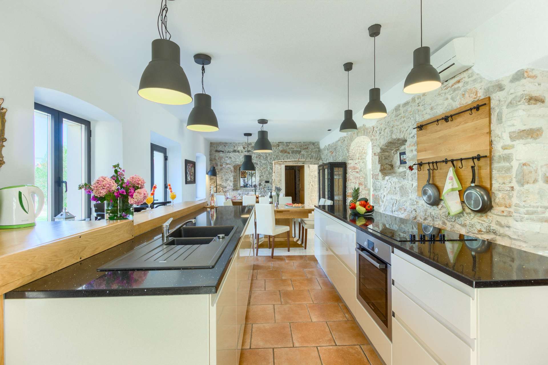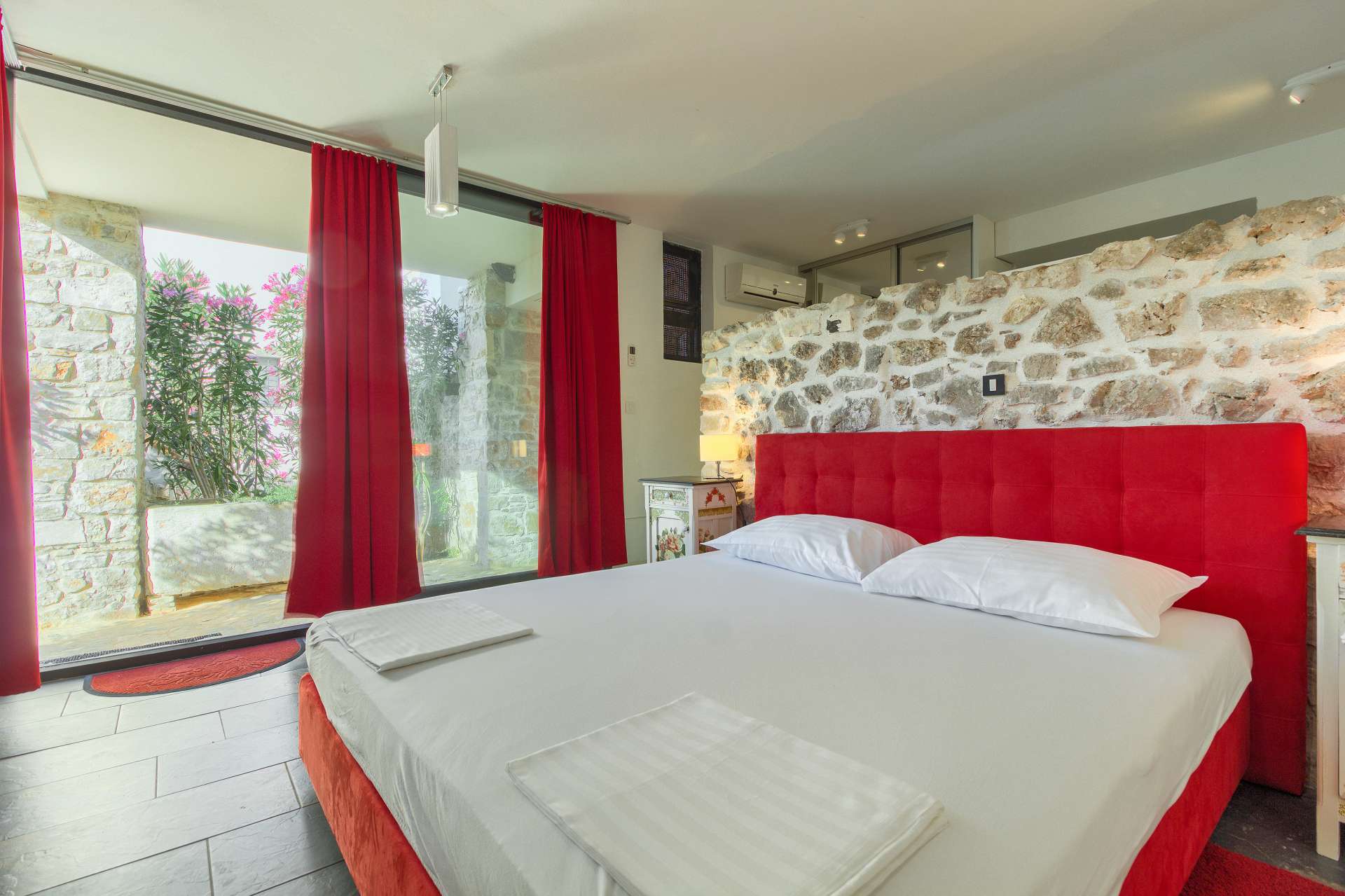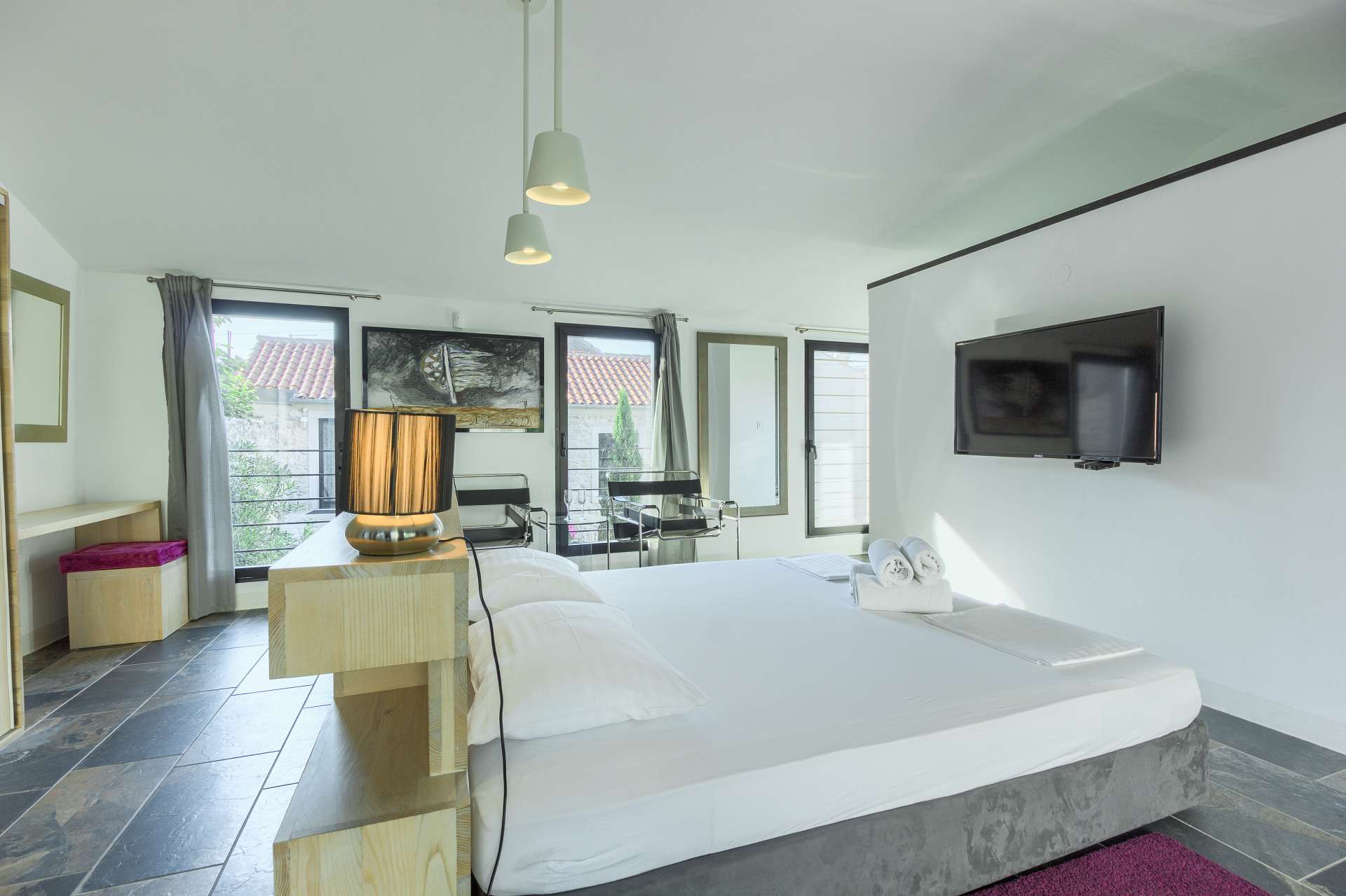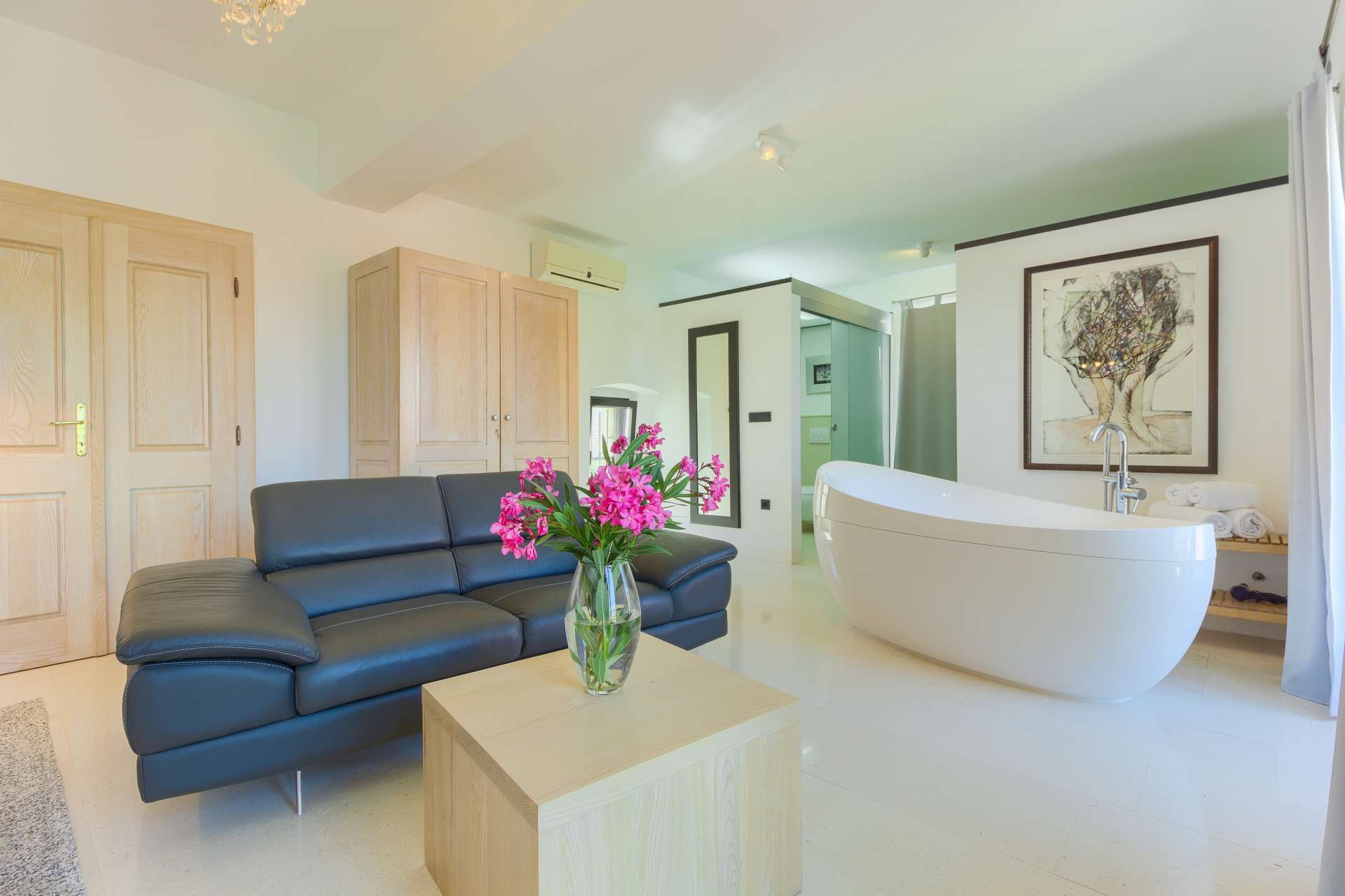 Welcome to Villa Cubismo, only 100 meters away from the sea with capacity to accommodate large groups or multiple families. Nine luxurious bedrooms come equipped with ensuite bathrooms, a separate seating area and some with in-room clawfoot bathtub. Modern and very spacious with elegant fixtures and timeless furnishings, sun filled rooms sparkle in the summer sun through floor to ceiling windows. Beamed wood vaulted ceilings, white walls covered with abstract art pieces, exposed stone craftsmanship and a flat screen TV are there to indulge you and set you up for a holiday you've been anticipating. Three living units comprise the villa with a pool and a Jacuzzi in the middle. In the main house is an ample and luminous fully equipped kitchen and seven of the bedrooms. Two annexes offer a bedrooms each with its own bathroom. The outdoor seating area accommodates 18 guests. Pool table and table football are available for your enjoyment. Beaches, restaurants and markets are all steps away. Villa Cubismo is a sanctuary for those seeking comfort, convenience, luxury, quality times with loved ones and some of the best beaches the Adriatic has to offer. Welcome to island Pašman.