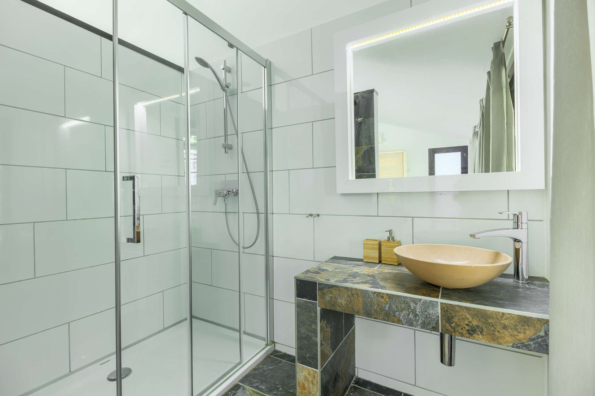 In nine bedrooms eighteen adult guests are comfortably accommodated.