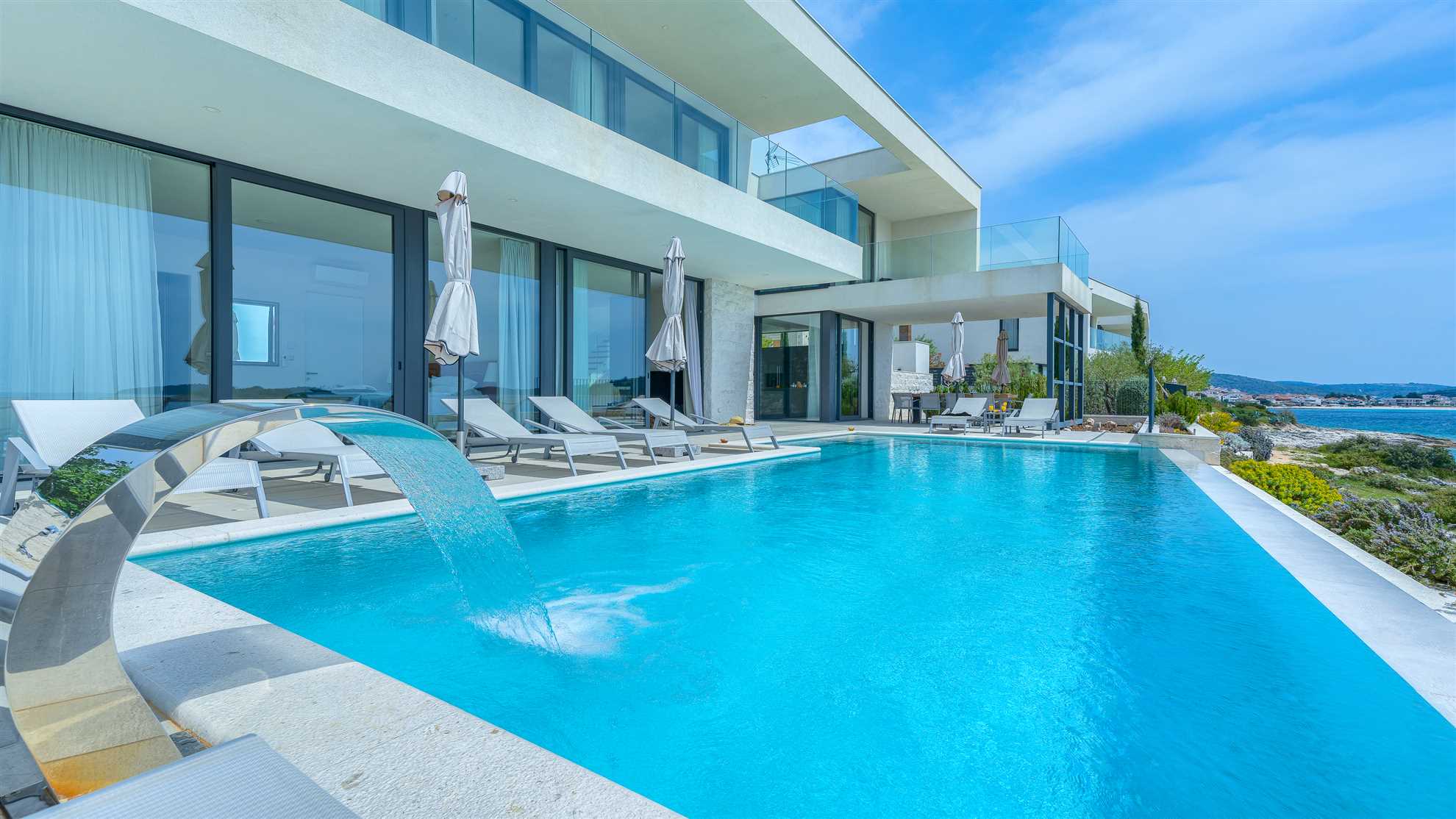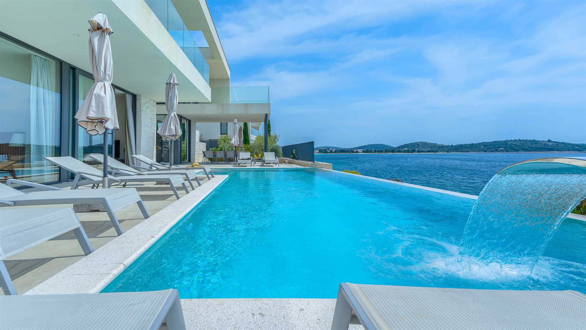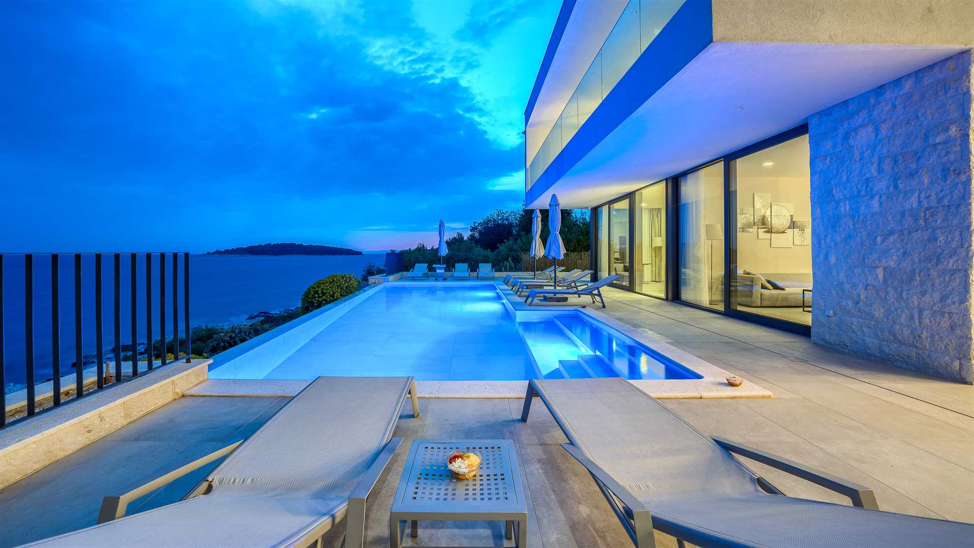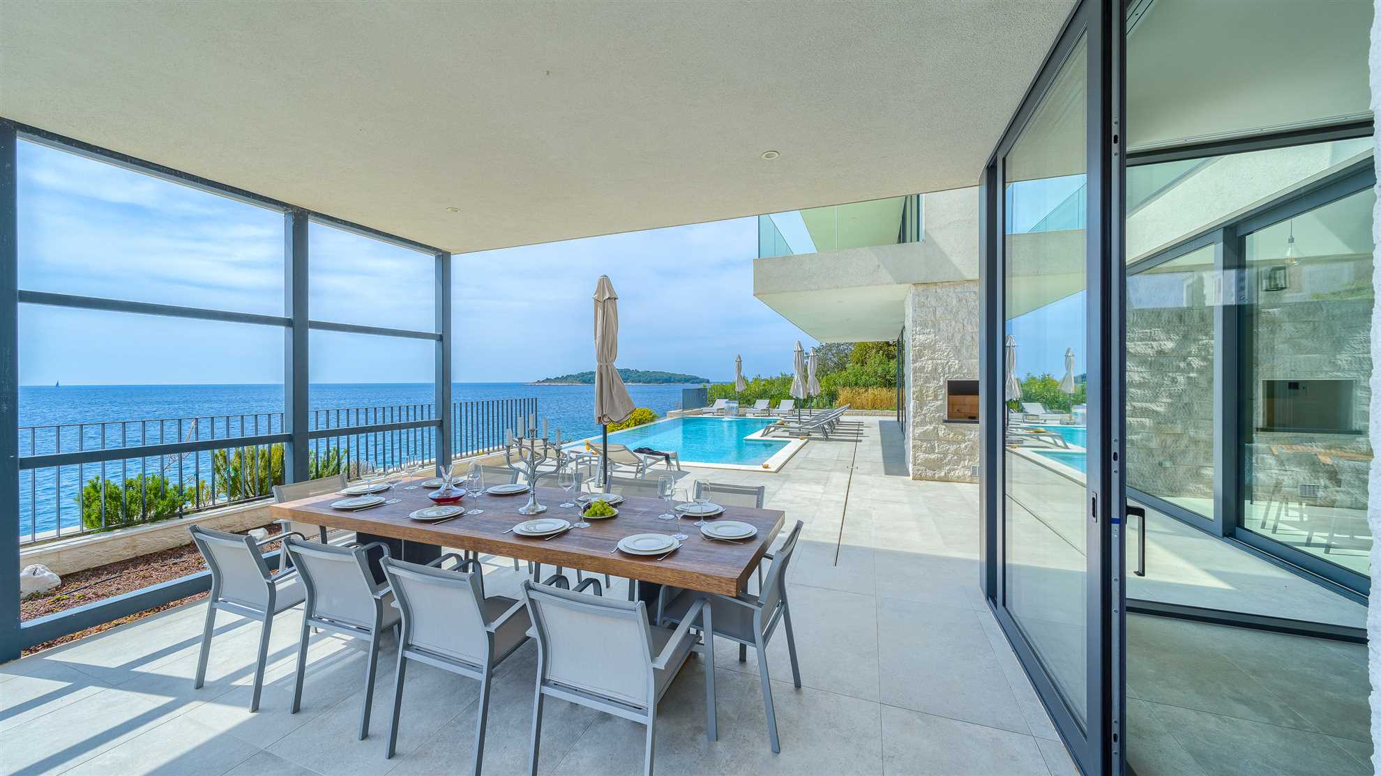 They say that a picture says 1000 words…so we’ll keep it short. Here is an absolutely stunning villa located on the sea itself with a large salt water heated pool, sea views from every which corner of the house, and splendid luxuries spread throughout. Villa Marvella is truly elegant in style with luminous, airy open living spaces, a fireplace, sauna, state of the art kitchen, romantic lighting, large en-suite bedrooms and bathrooms with double sinks and clawfoot standalone tubs - a complete setup for a dream vacation. The gorgeous deck facing the sea offers sun loungers, dining area with a barbecue and comfortable seating areas to enjoy the sunsets. Every detail has been carefully thought through for your comfort including the fabrics, the linens and the furnishings. Hospitable hosts are awaiting your arrival. Welcome to the Adriatic.