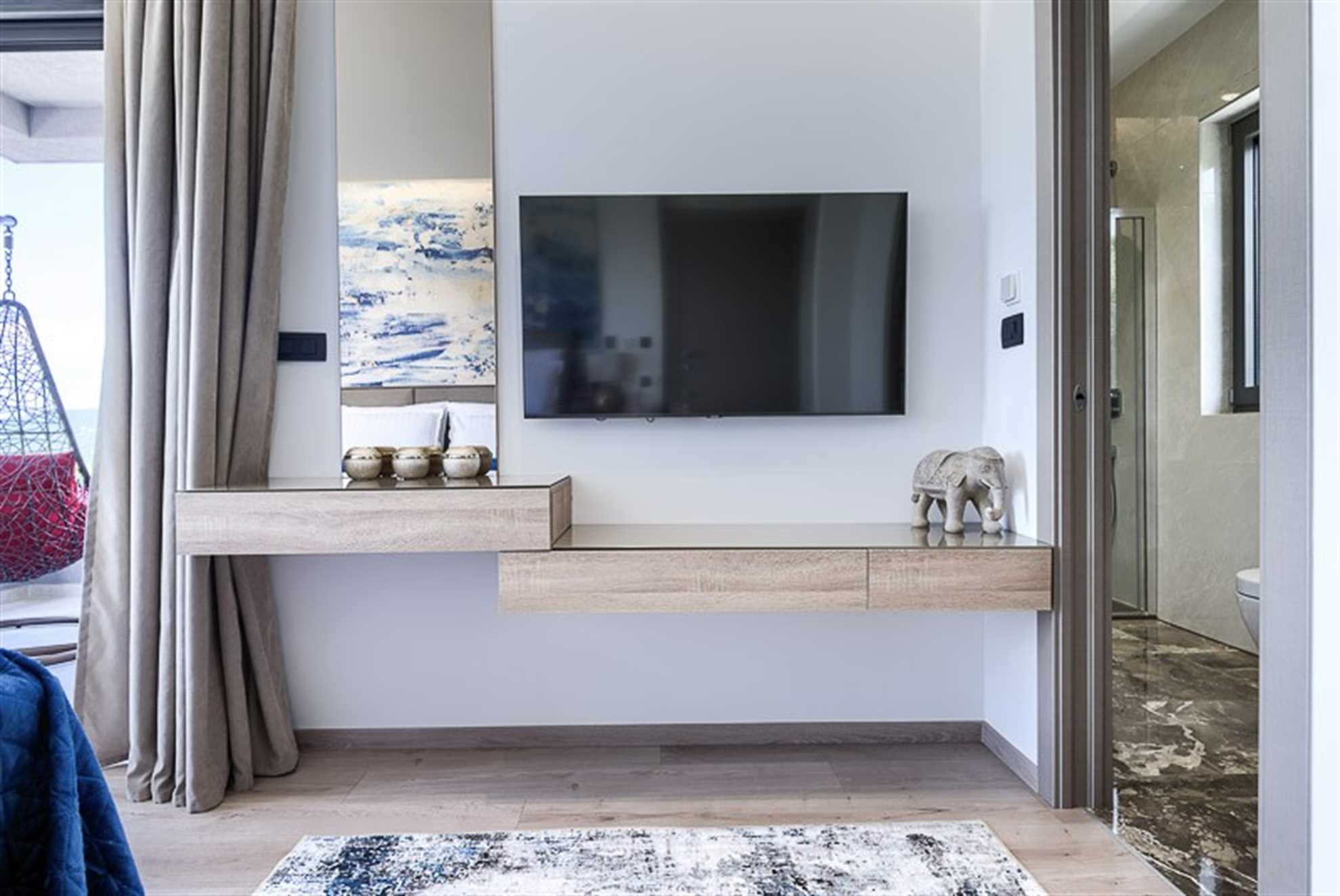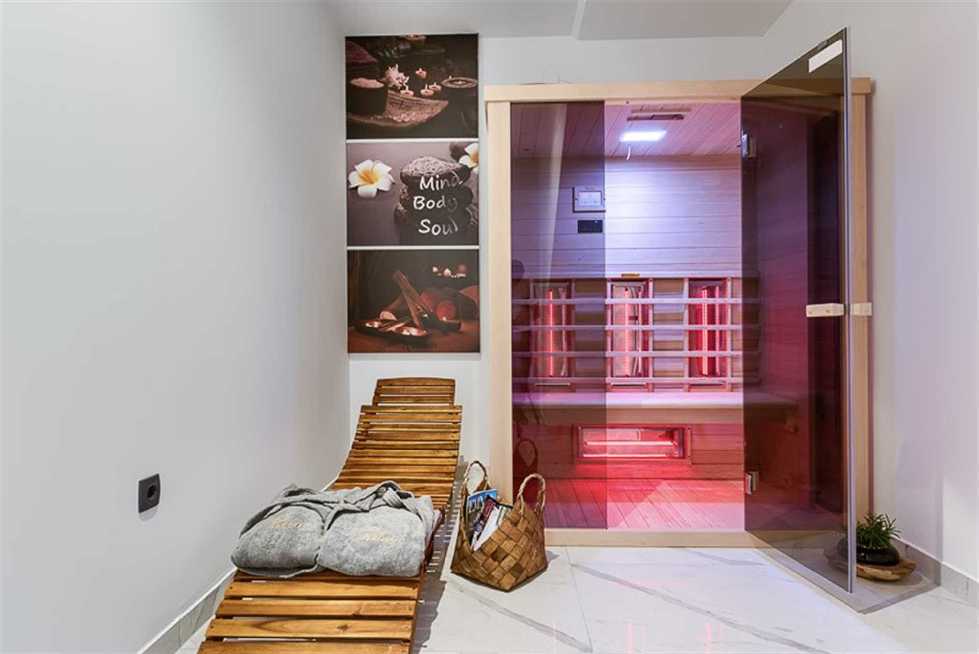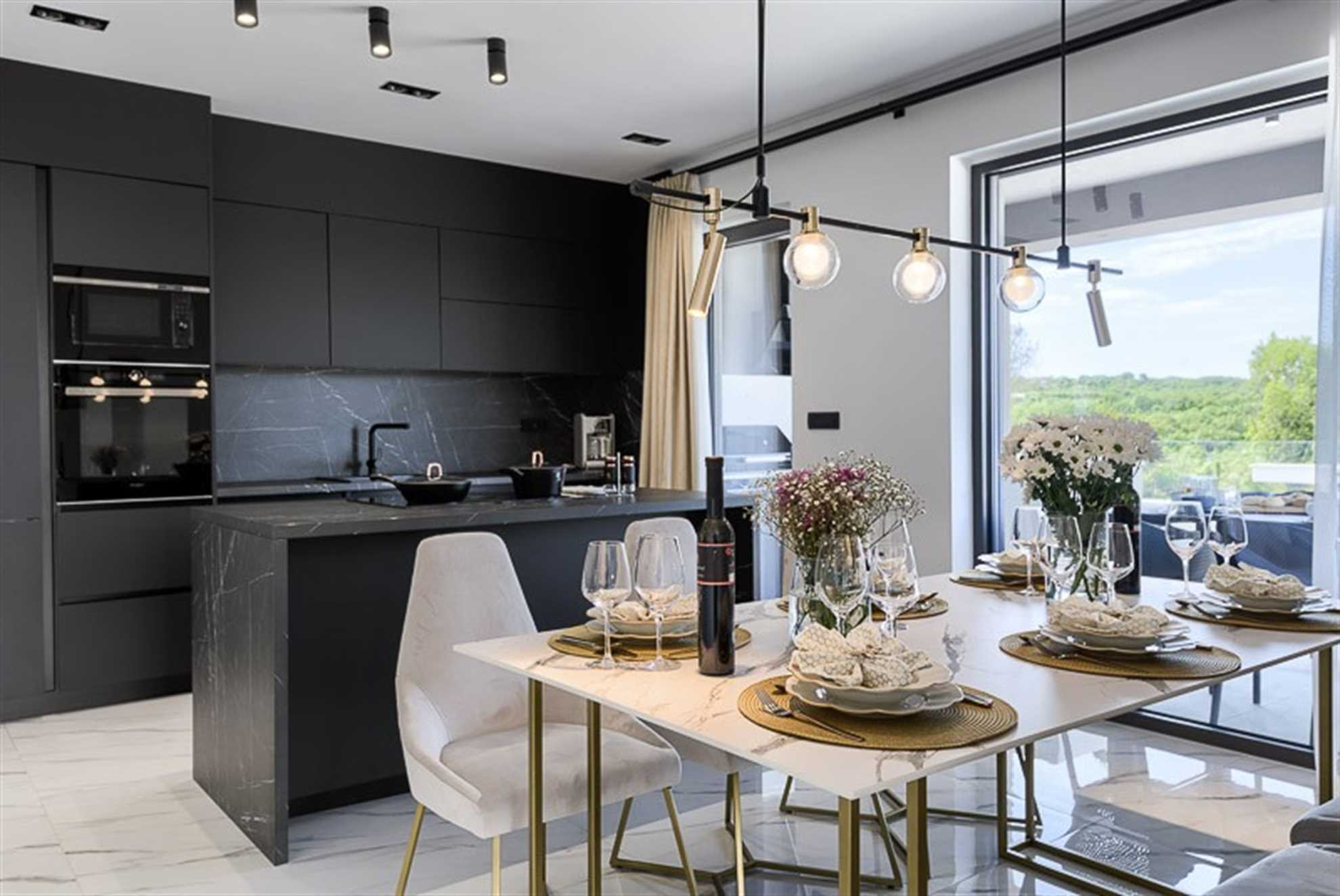This luxury villa is located in Rakalj in Istria. The villa is surrounded by a maintained garden with an outdoor barbecue and a summer kitchen for pleasant evening gatherings. In addition to the outdoor pool located on the spacious terrace, guests have a rooftop terrace at their disposal with stunning panoramic views of the surrounding hills and sea. There is an additional furniture and a jacuzzi on the terrace, from where you can enjoy the sunset. The modern and richly furnished interior abounds in luxurious details and interesting works of art. With a fully equipped kitchen and living room, the villa has 3 bedrooms with private bathrooms and one additional shared bathroom. Sports equipment includes bicycles, table tennis and darts, and after doing sports, you can relax in the sauna.