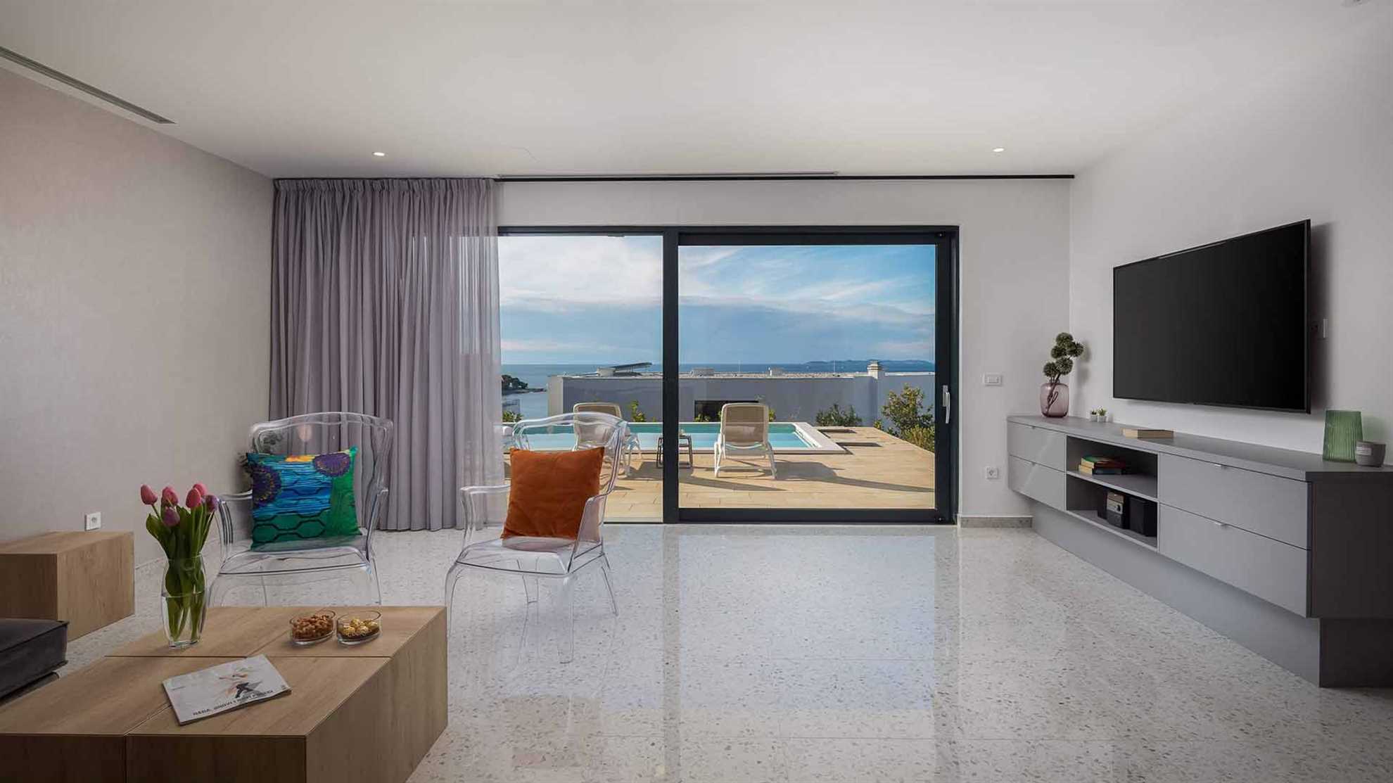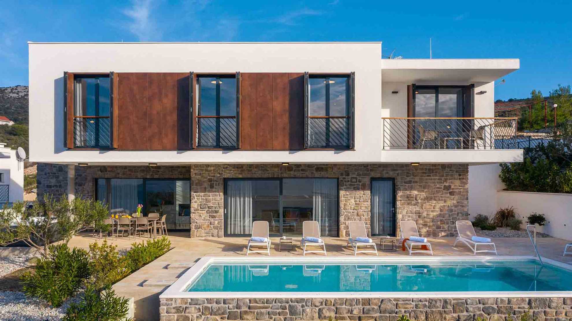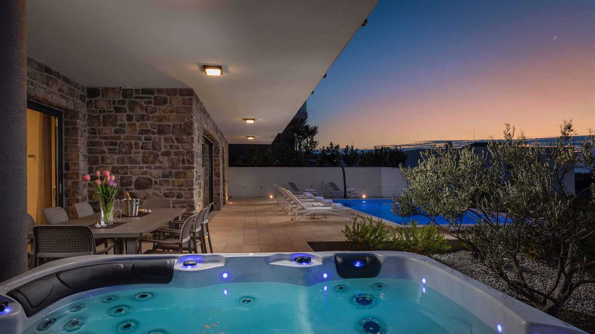 This modern and luxurious villa will provide its guests with wonderful mornings, as its name suggests. You can have your morning coffee on the spacious terrace with pool and outdoor jacuzzi with amazing views of the Adriatic Sea. On the terrace, in addition to deck chairs, there is an additional sitting set so that you can dine at, and there is also a barbecue should you decide to prepare meals during your stay. The villa can accommodate up to 10 people in a total of four spacious bedrooms and each room has its own bathroom, TV, air conditioning and sea view. To further relax, guests have access to a sauna and a ground floor entertainment room with table football, home cinema and extras. This villa is the ideal holiday villa for families or groups of friends looking for a relaxing holiday surrounded by the beautiful Mediterranean with all luxury amenities.