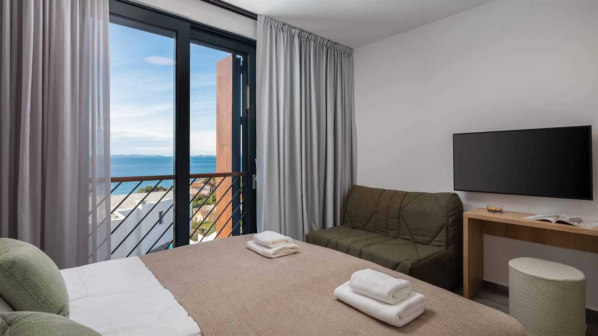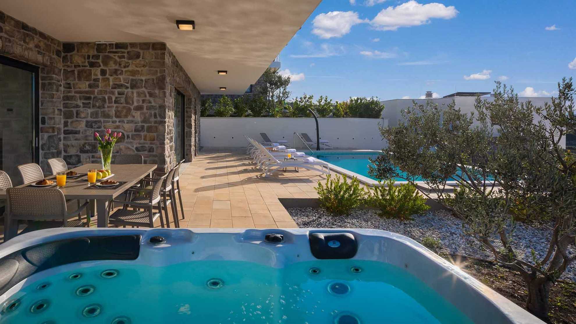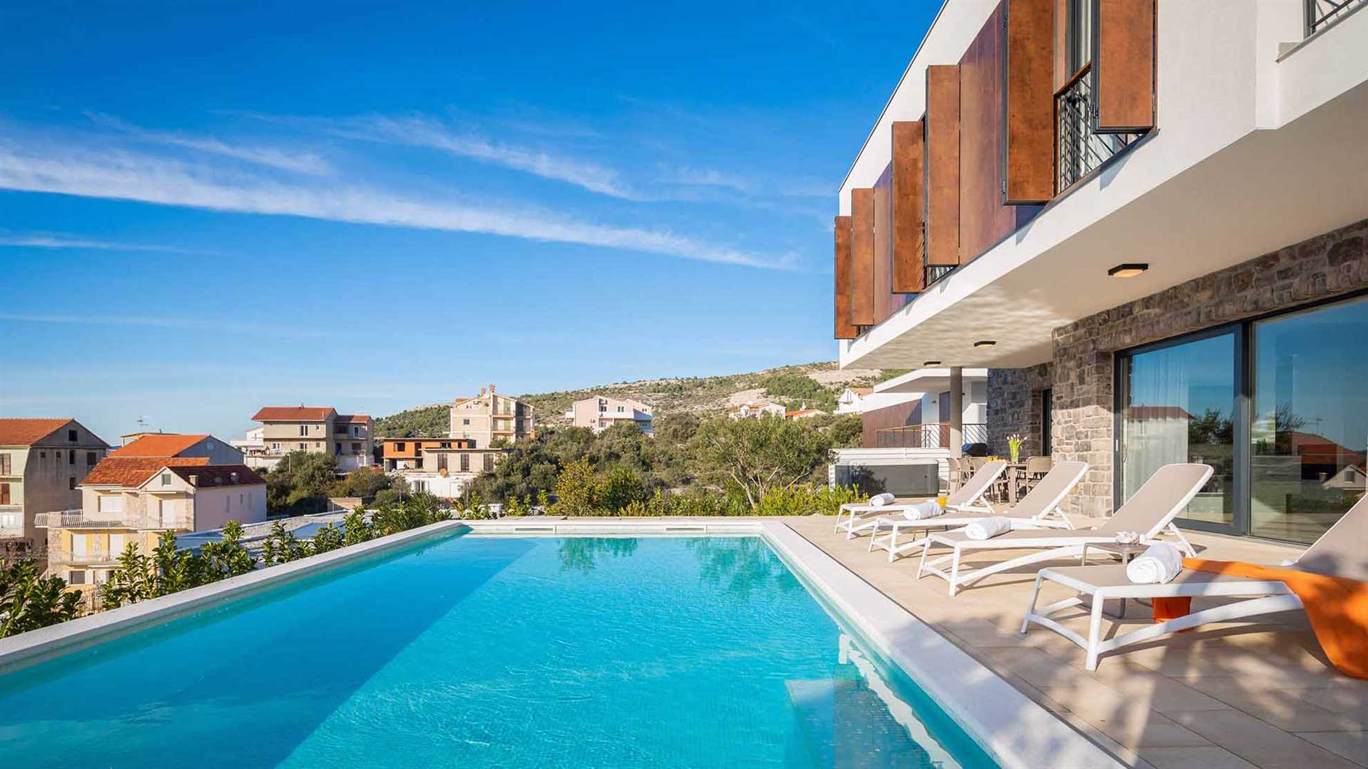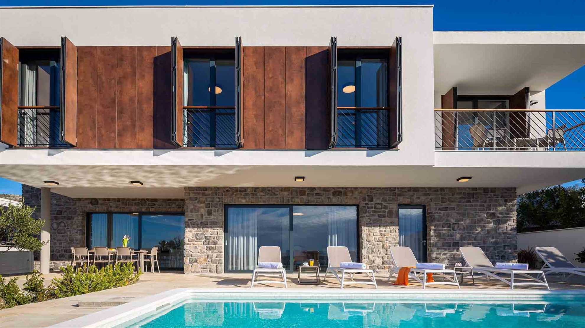 This modern and luxurious villa will provide its guests with wonderful mornings, as its name suggests. You can have your morning coffee on the spacious terrace with pool and outdoor jacuzzi with amazing views of the Adriatic Sea. On the terrace, in addition to deck chairs, there is an additional sitting set so that you can dine at, and there is also a barbecue should you decide to prepare meals during your stay. The villa can accommodate up to 10 people in a total of four spacious bedrooms and each room has its own bathroom, TV, air conditioning and sea view. To further relax, guests have access to a sauna and a ground floor entertainment room with table football, home cinema and extras. This villa is the ideal holiday villa for families or groups of friends looking for a relaxing holiday surrounded by the beautiful Mediterranean with all luxury amenities.