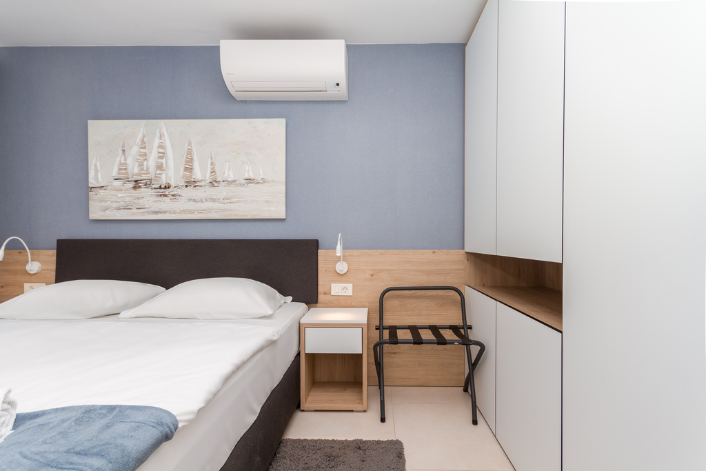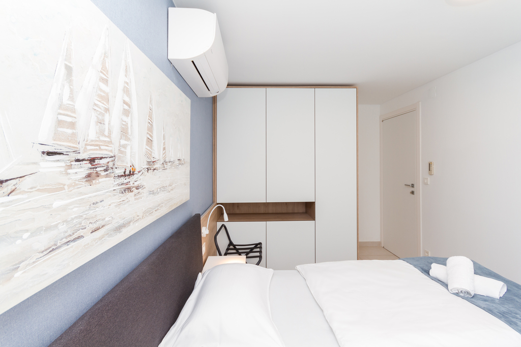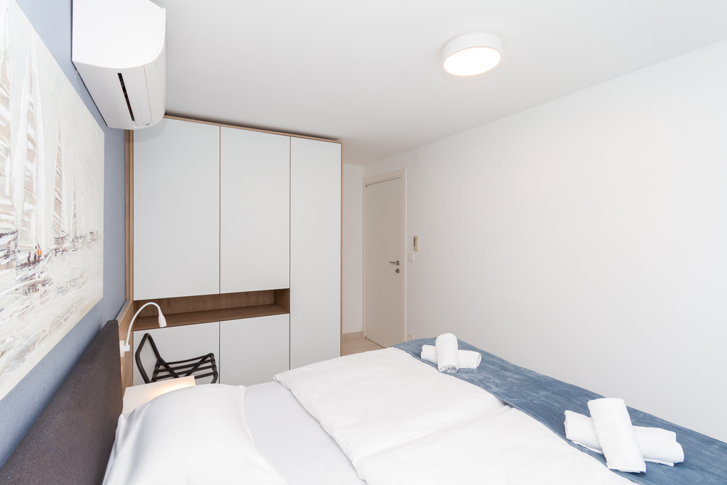 Air conditioning units are installed in each room. The apartment provides bed linen, towels, and WI-FI connection. One parking space is also available in the garage.