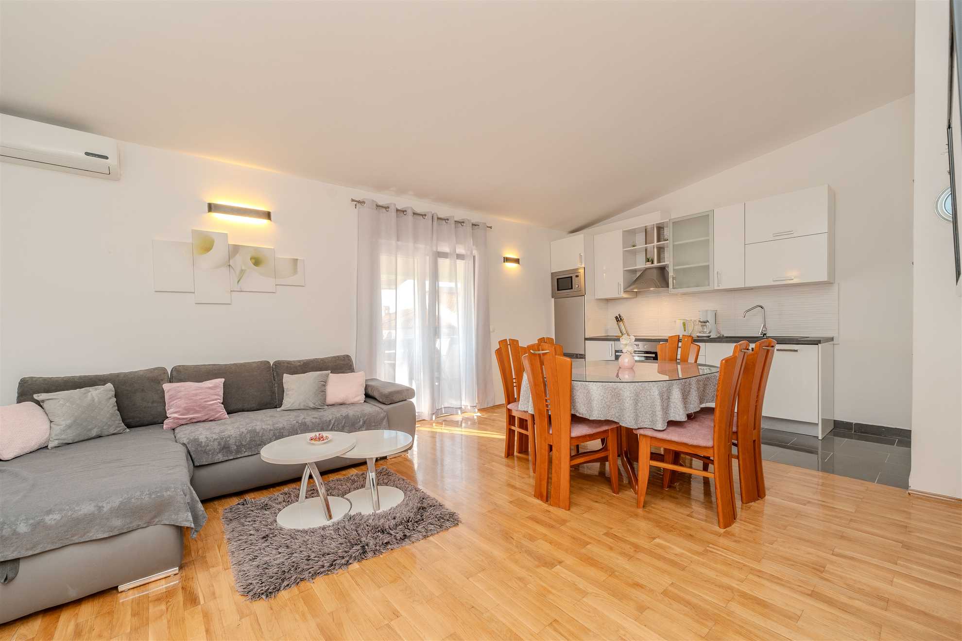 This spacious apartment on the first floor is located in a quite part of the municipality Privlaka and is ideal for 4 persons.