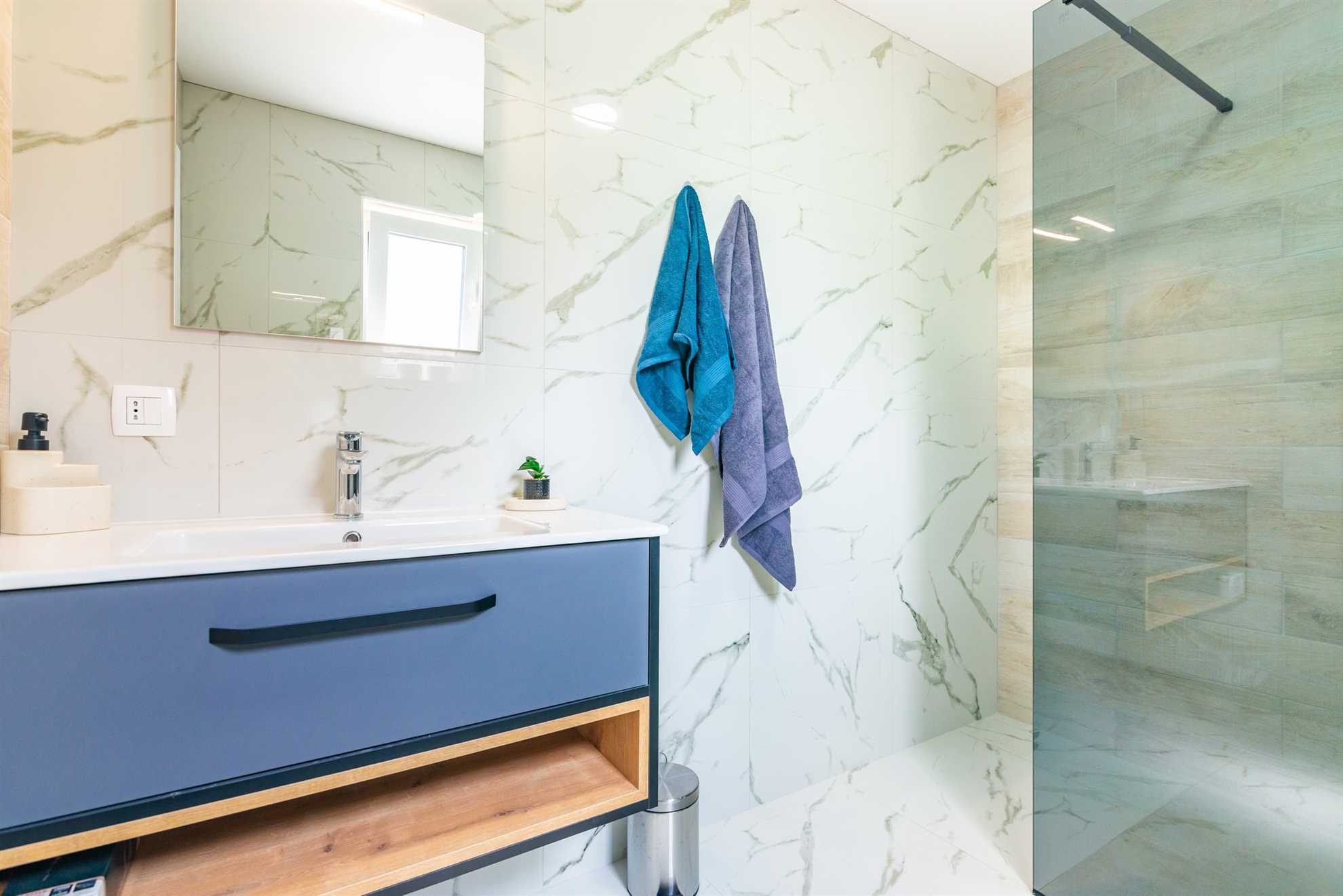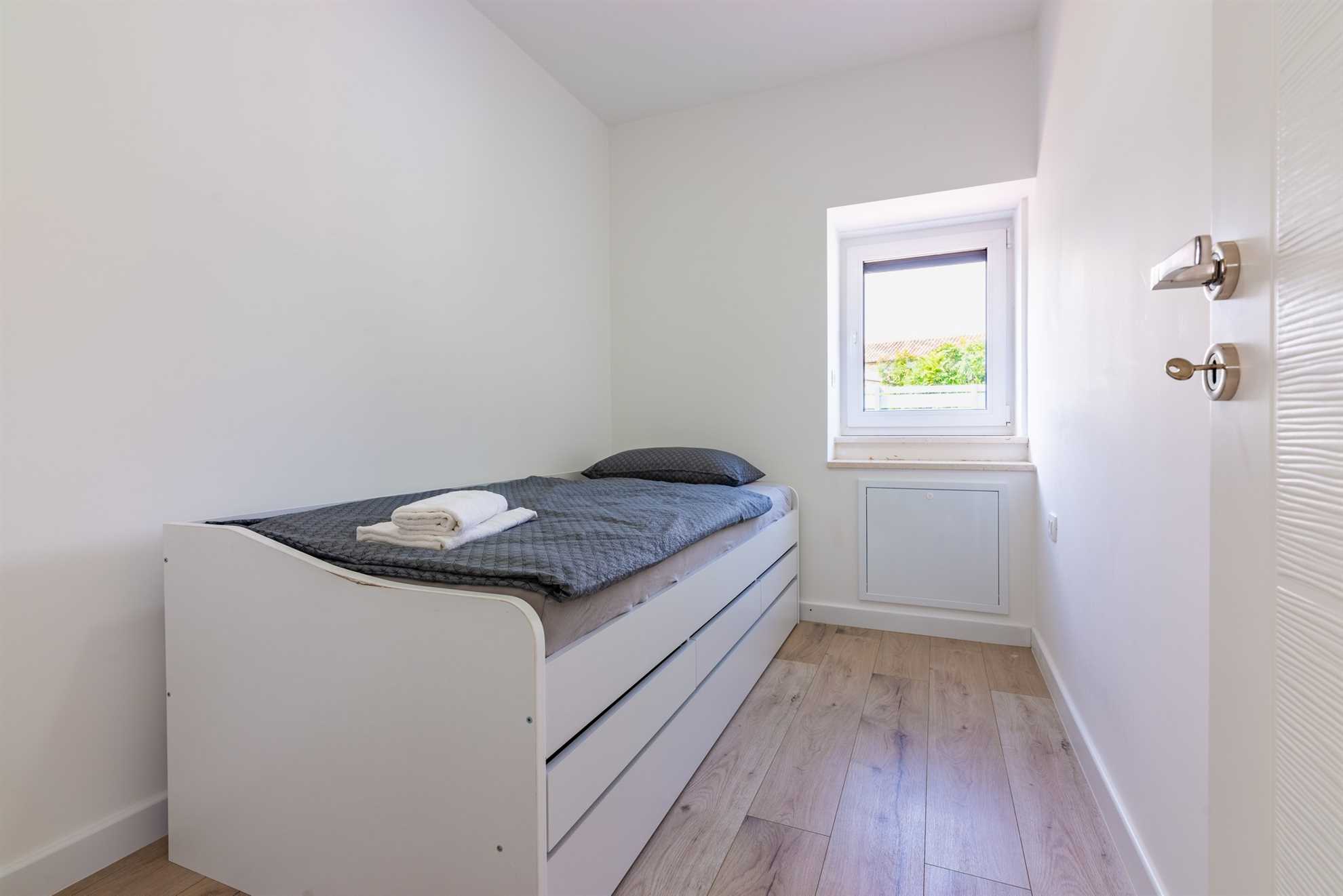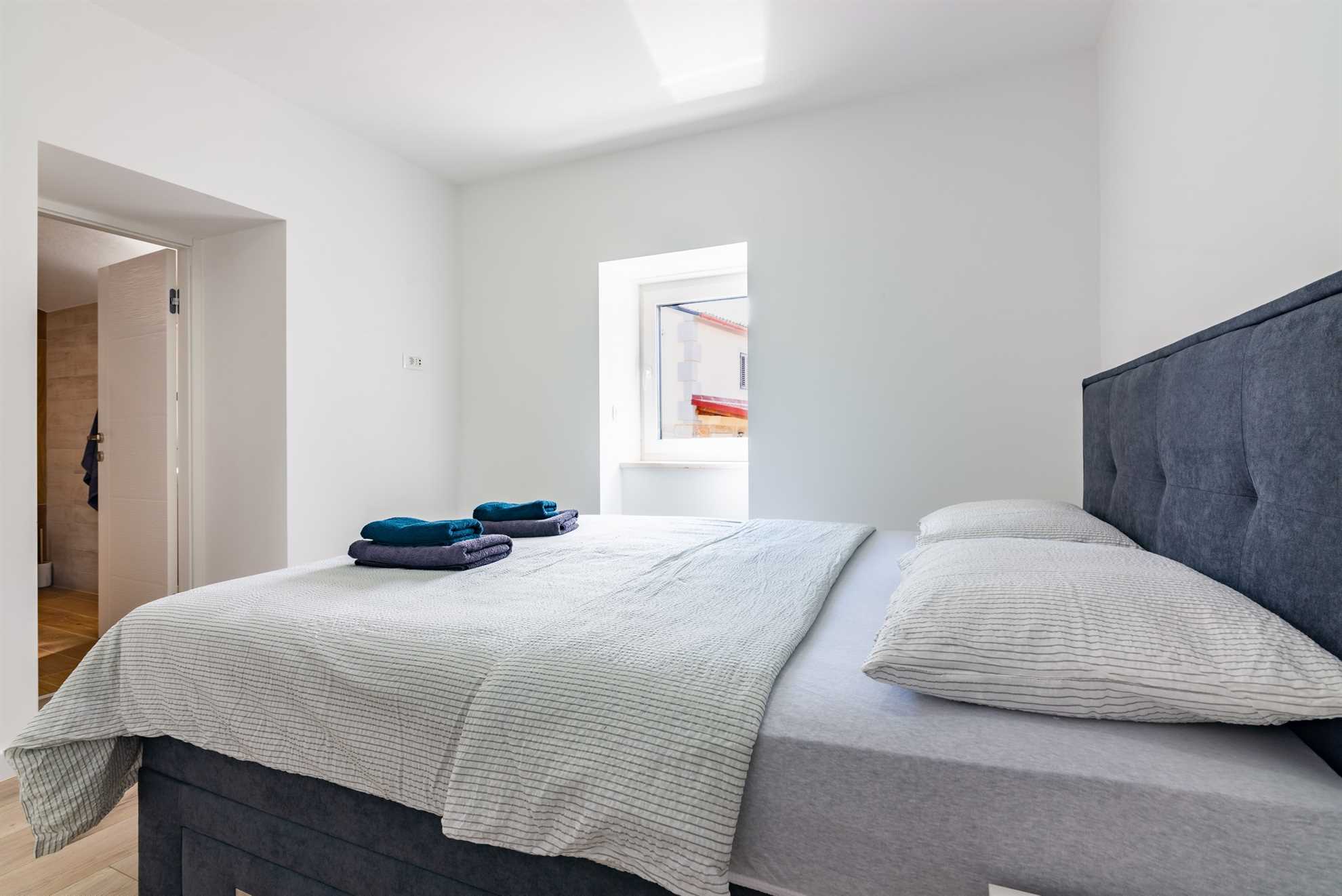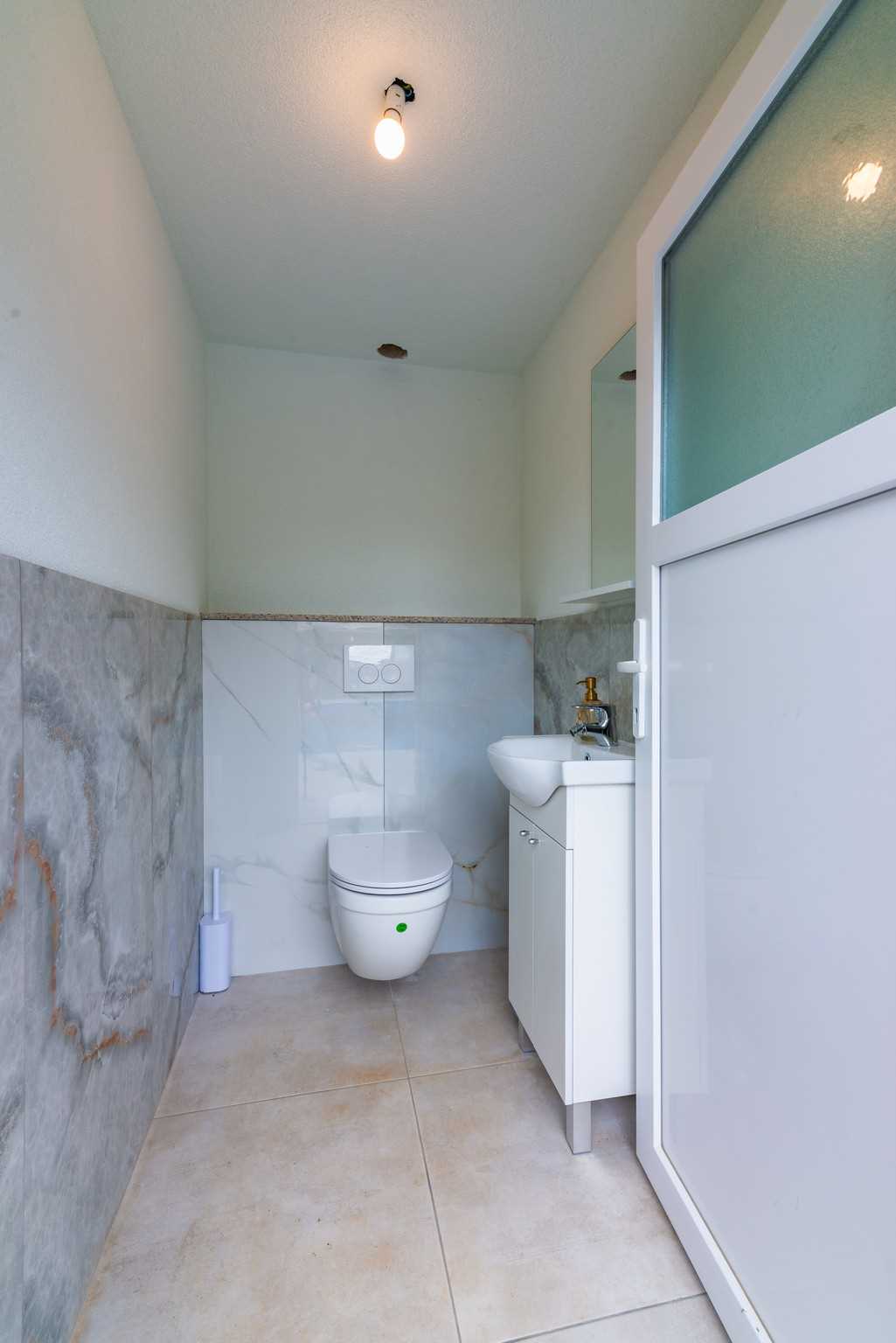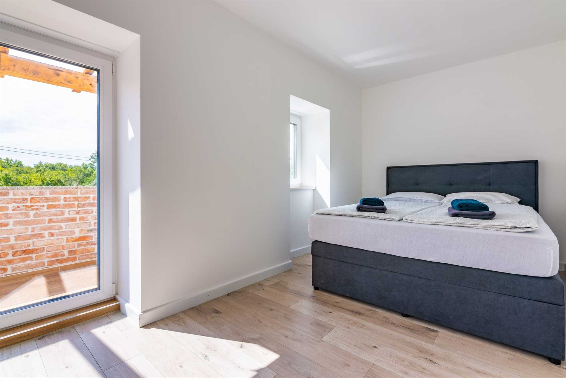 One of the king-size bedrooms comes with a private bathroom, equipped with a modern shower, allowing for added privacy and convenience. The second bedroom shares a bathroom located in the hallway, which is easily accessible for all guests. The third bedroom on this floor is perfect for children or additional guests, as it features a bunk bed that can accommodate two people. This setup makes Villa Old Stone a versatile choice for families with children or groups of varying sizes.