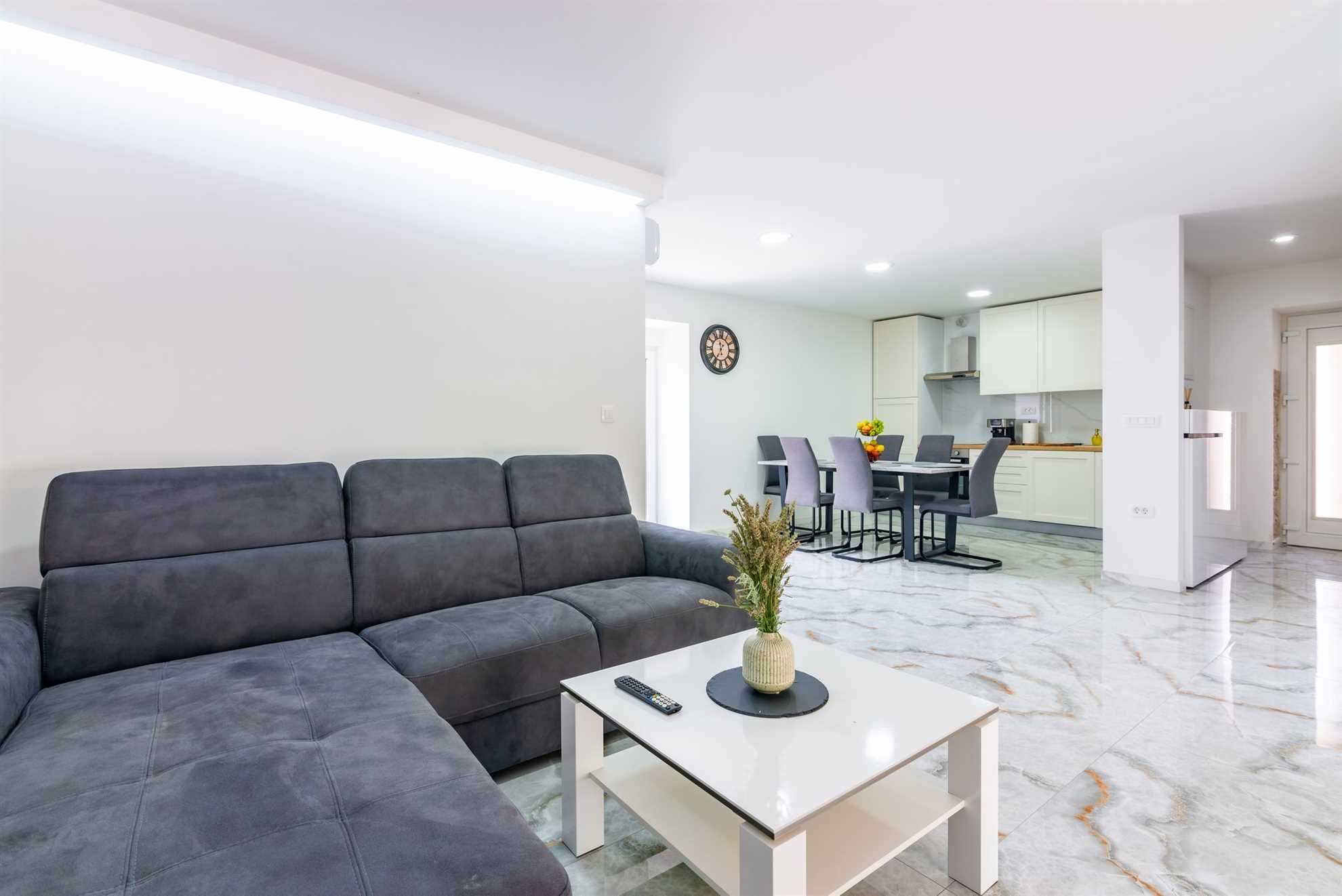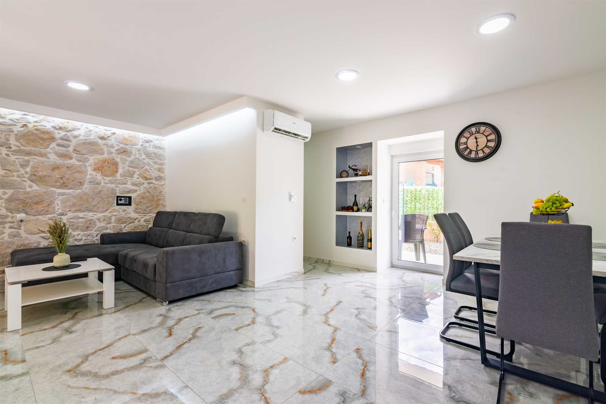 Step inside Villa Old Stone, and you'll find a beautifully designed interior that seamlessly blends traditional elements with modern amenities. The ground floor of the villa is an open-plan space that includes the living room, kitchen, and dining area. This layout creates a warm and inviting atmosphere, ideal for socializing and spending quality time with your loved ones.