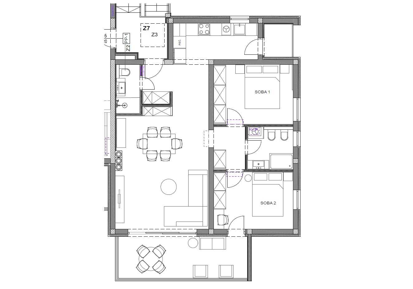 This modern and stylishly furnished apartment is ideal for guests seeking comfort, tranquility, and a touch of luxury. It is located on the second floor and can accommodate up to 6 guests.