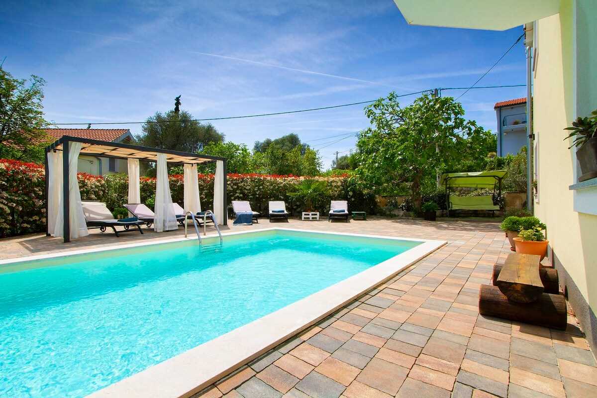 Villa Meline is a villa with a heated swimming pool located in the small village of Hlapa on the island of Krk, 900 m from the beautiful beaches in Soline bay and the popular healing mud area Meline. This villa is an ideal choice for families with children as well as groups of friends looking for privacy and comfort near famous tourist attractions.