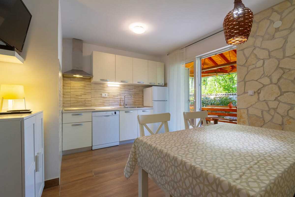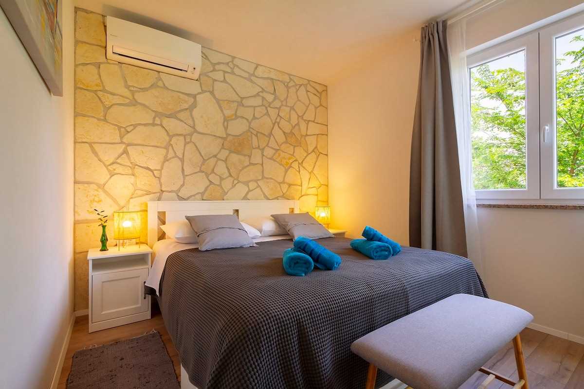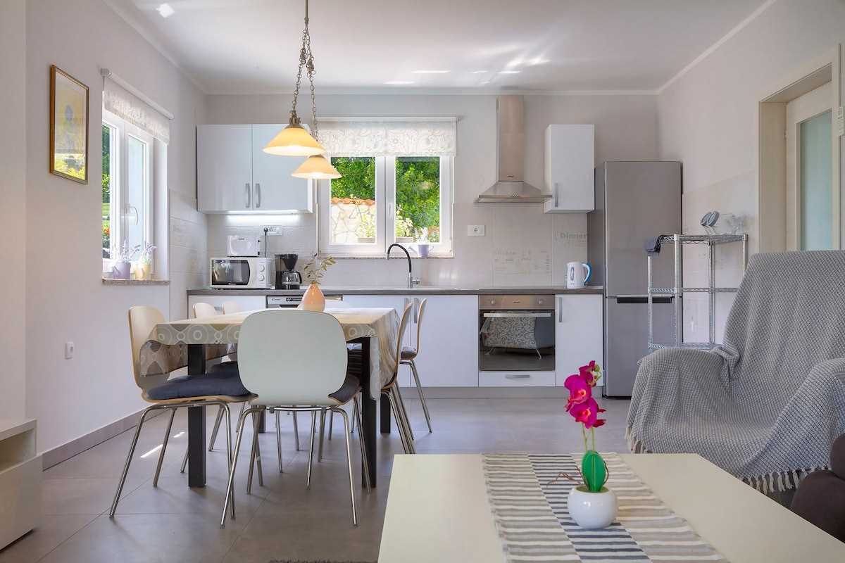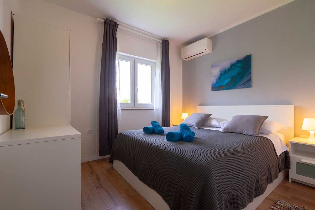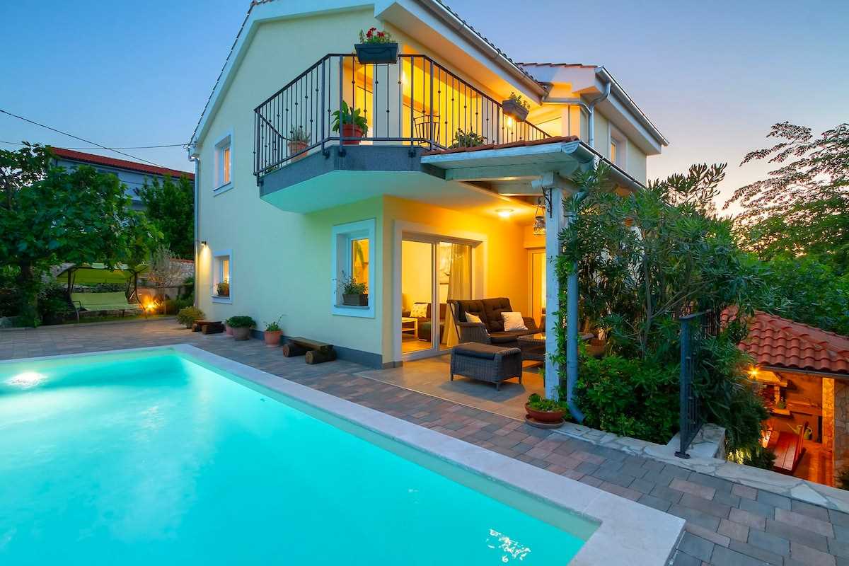 Located in the quiet village of Hlapa, Villa Meline is the right choice for those who want to discover the hidden beauties of the island of Krk. In the Soline Bay nearby, you will find beautiful sandy beaches, where you and your fellow travelers can enjoy your summer. The island of Krk is quite easy to reach, as it is connected to the mainland by the Krk Bridge, which means that you can always go to Rijeka, Opatija or Crikvenica. Visit Baška, Krk, or Vrbnik, or head to the neighboring island of Cres to taste their famous lamb. Explore the Camino pilgrimage trail and go hiking or cycling, and take your vacation to a new level!