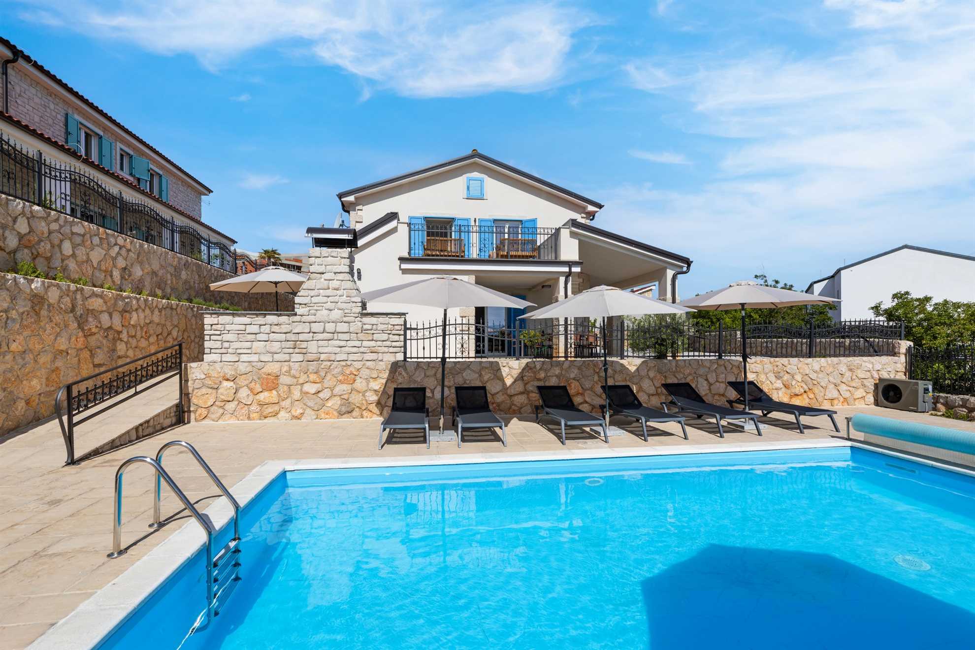 Welcome to Villa Maja – a modern holiday villa where the timeless elegance of traditional stone architecture harmoniously blends with luxurious comfort. This enchanting retreat will captivate you with its sophisticated outdoor space, breathtaking views of the endless blue Adriatic Sea and the charming town of Vrbnik, and a heated pool for ultimate enjoyment throughout the season. Inside, you will find a carefully designed oasis of comfort, perfect for stylish relaxation.
