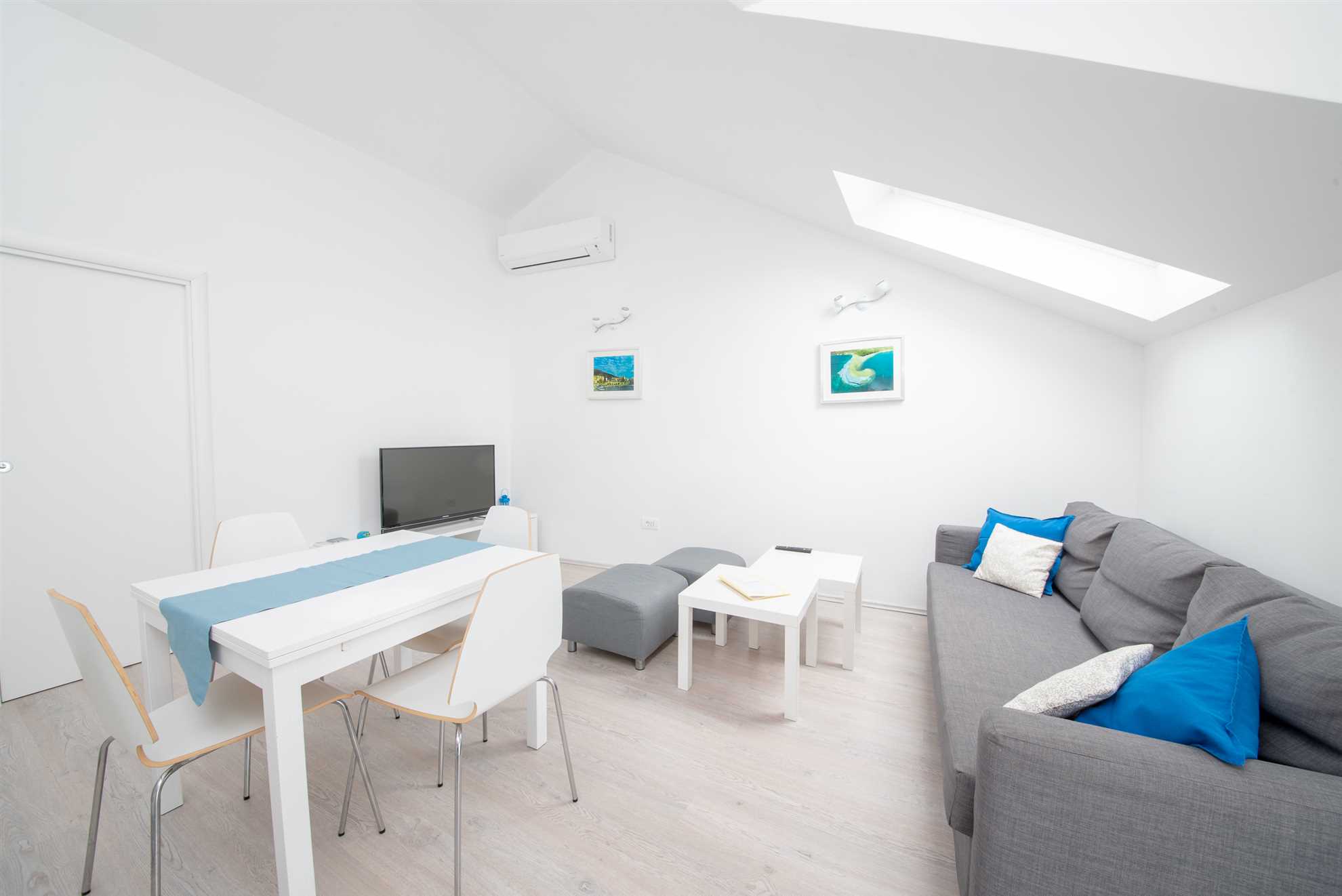 As you enter the apartment, spacious living quarters welcome you. The interiors draw inspiration from the surrounding coastal charm, offering a serene ambiance. The living room, one of the apartment's key features, is equipped with comfortable seating, ensuring a relaxing space to unwind after a day of exploration.