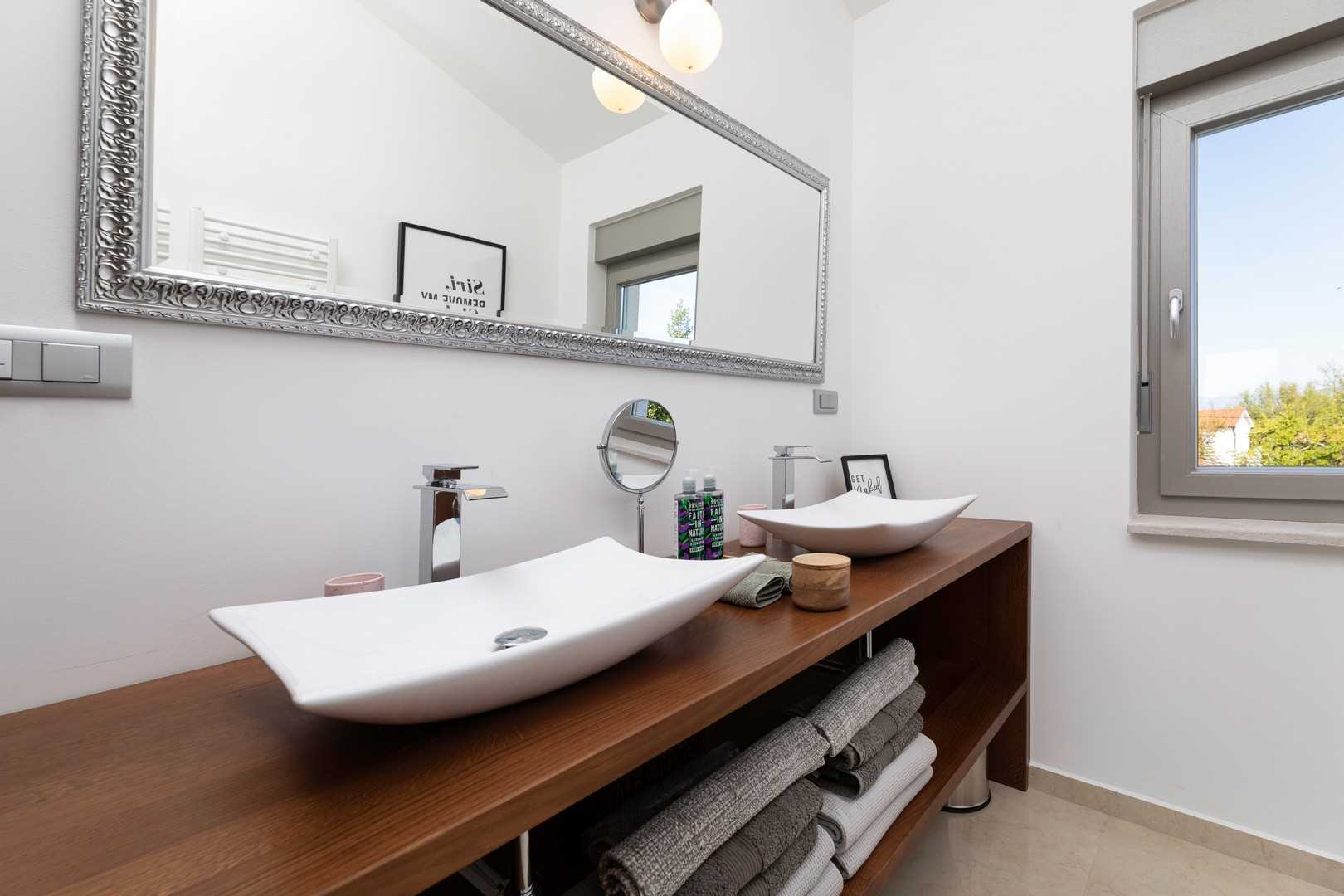 The villa's surroundings offer a wide range of opportunities for exploration and enjoyment. Rasopasno is a small and quiet village, ideal for relaxation, yet only a few minutes' drive from the tourist center of Malinska. In Malinska, you will find numerous shops, restaurants, bars, and a lively nightlife that will enrich your evenings. Just 3000 meters from the villa, beautiful beaches with refreshing sea waters await you, where you can swim, sunbathe, or engage in various water sports. The island of Krk is also known for its vineyards, olive groves, and stunning landscapes that can be explored on foot, by bike, or by car.