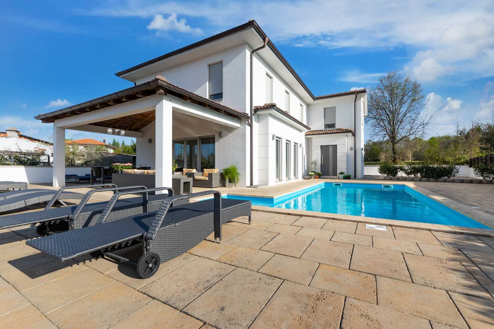 Villa EL is a beautiful holiday home designed for a relaxing vacation by the sea. It is located in the idyllic village of Rasopasno on the island of Krk, where you can enjoy peace and comfort in the embrace of green nature. The villa combines modern interior design, spacious outdoor areas, and complete privacy, ensuring an unforgettable getaway.