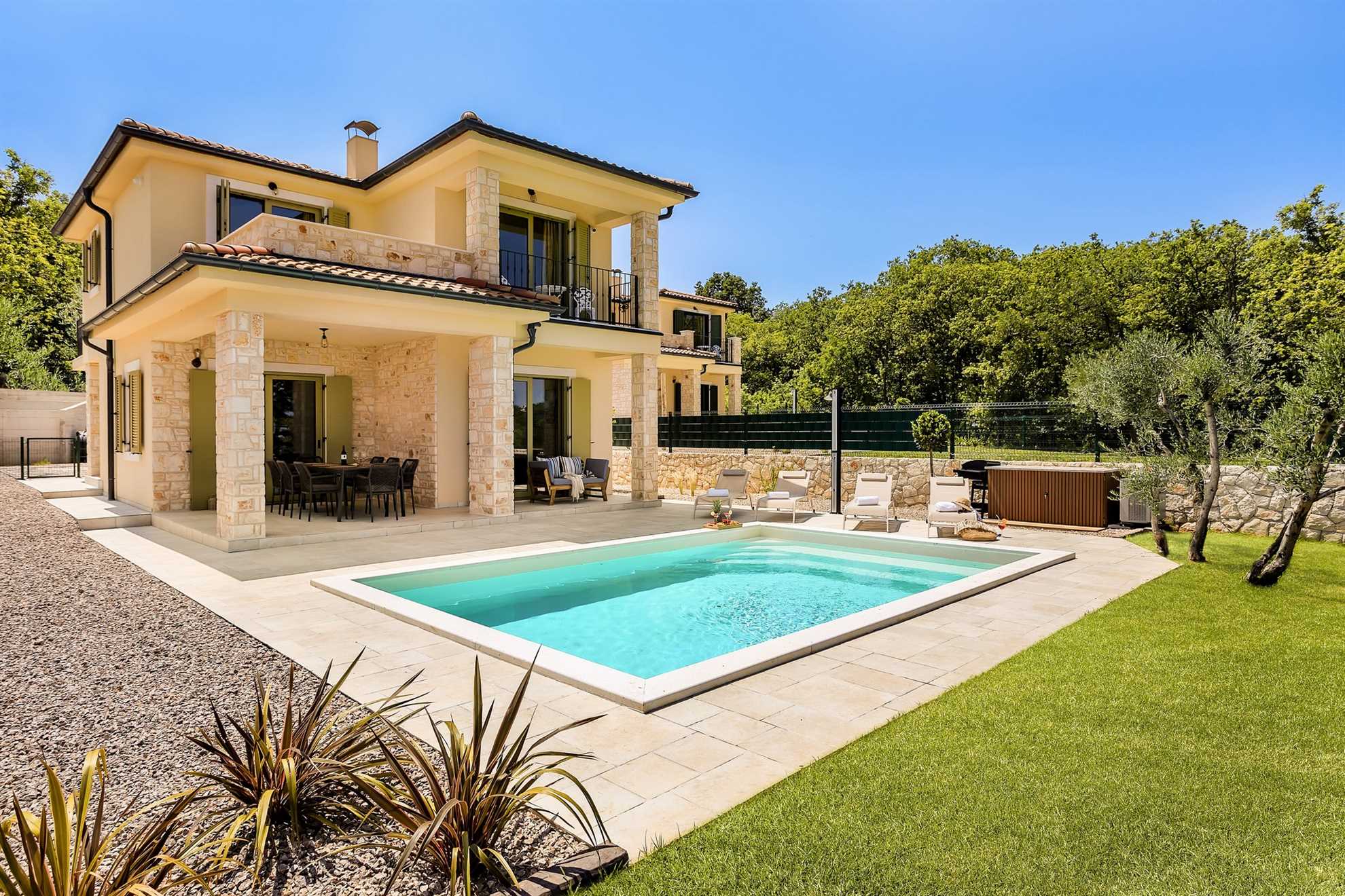 Villa Pinaza B, nestled in the charming coastal town of Vrbnik on the island of Krk, is a private holiday home that beautifully combines traditional Adriatic charm with modern comfort. With a heated pool, jacuzzi, panoramic views of the Adriatic Sea, and the picturesque old town of Vrbnik in the background, this villa offers the perfect setting for unforgettable holidays with family or friends. Whether you're looking for a peaceful seaside retreat or an active vacation full of exploration, Villa Pinaza B is designed to meet all your needs year-round.
