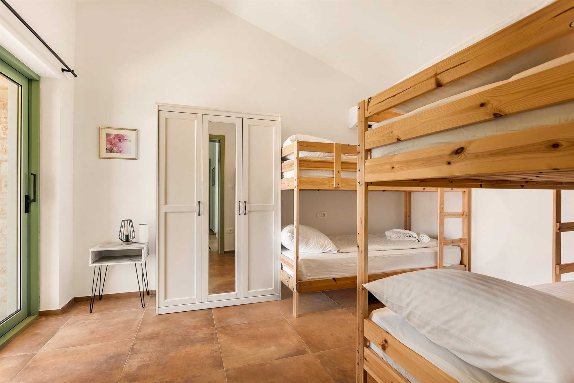The third bedroom is equally inviting and designed with families or groups in mind. It is equipped with a bunk bed that accommodates up to four guests and is also air-conditioned. This makes it an ideal room for children or a group of friends.