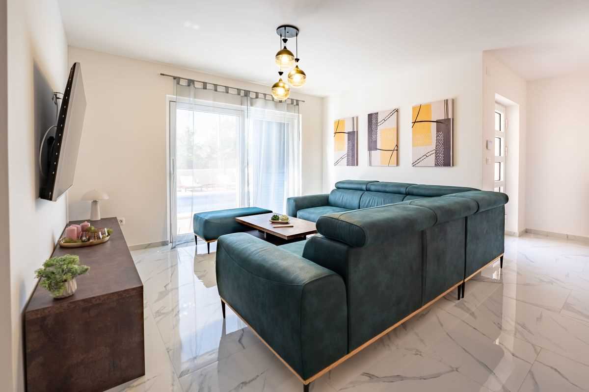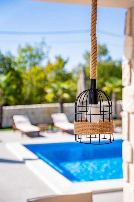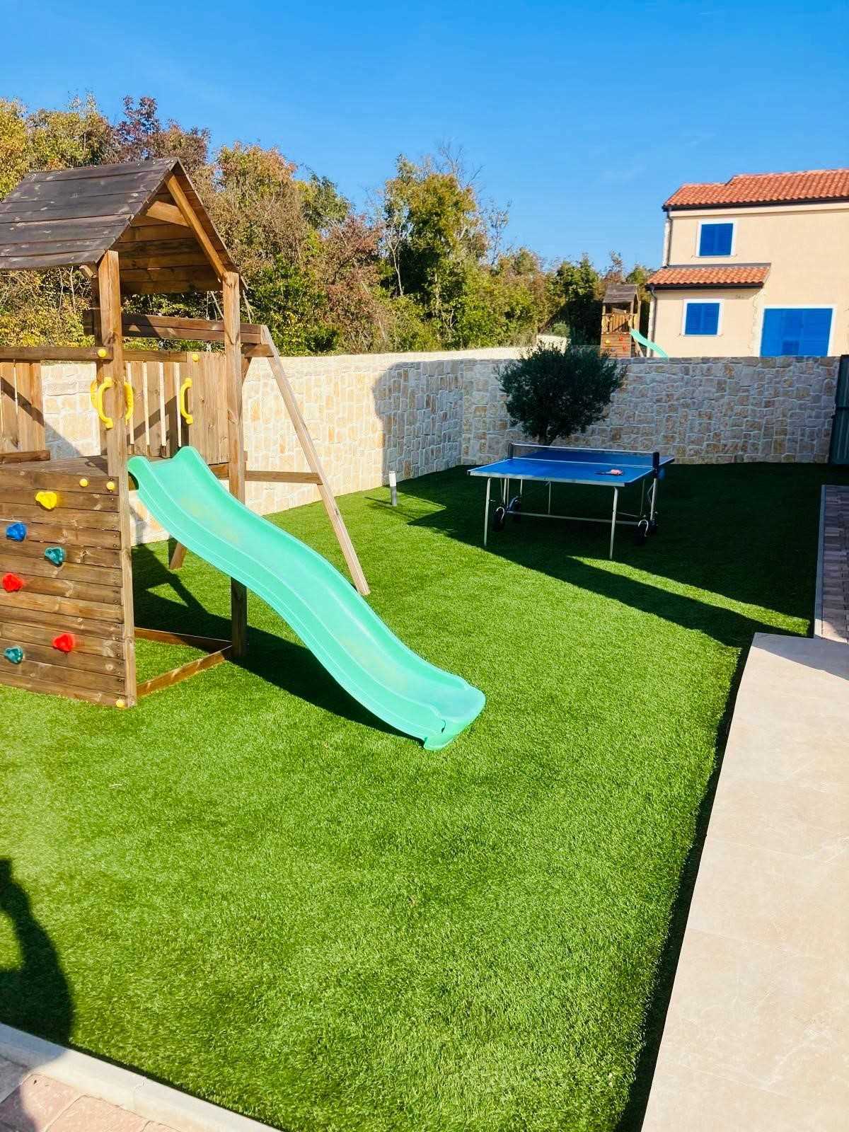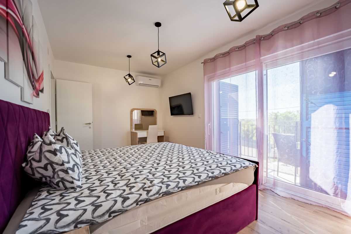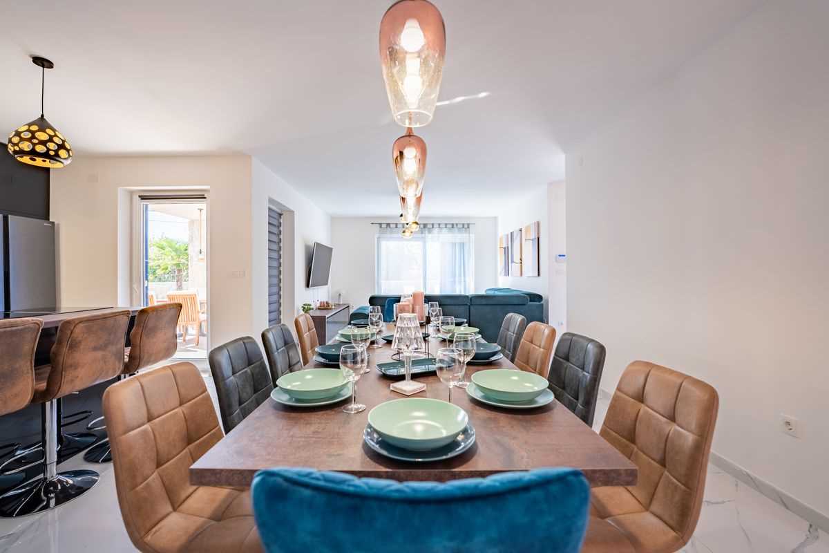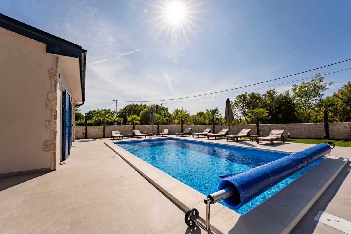 Villa Silvia Krk is modern comfortable 5-bedroom villa (200 m2) with private open swimming pool (32 m2) in small quite village. 4 Bathrooms ensuite plus 1 Toilet. Spacious living room with fireplace, dining area (for 10 persons) and fully equipped kitchen. Terrace with barbecue and outdoor sitting (10 persons). Outdoor area for children. Three parking spots on the property. Spacious garden around the house fully fenced. Outdoor furniture, Darts. Children playground.
