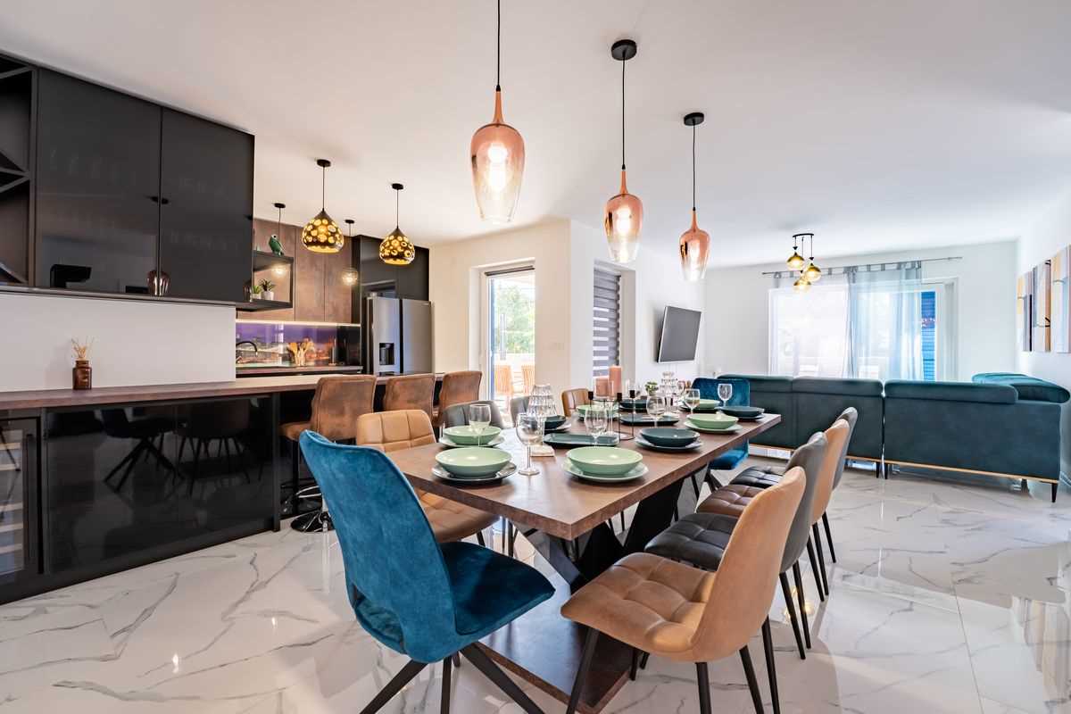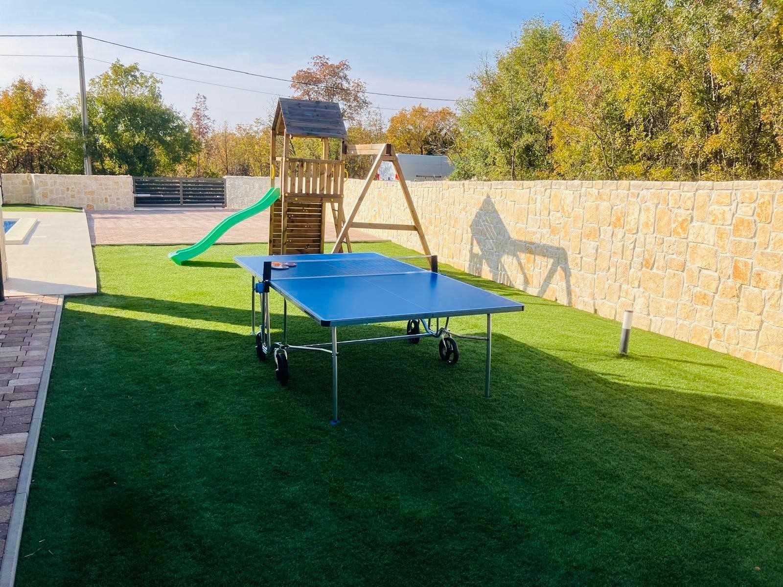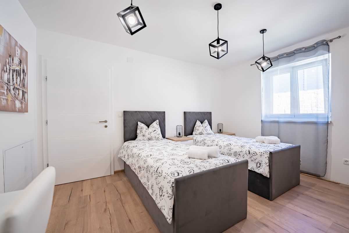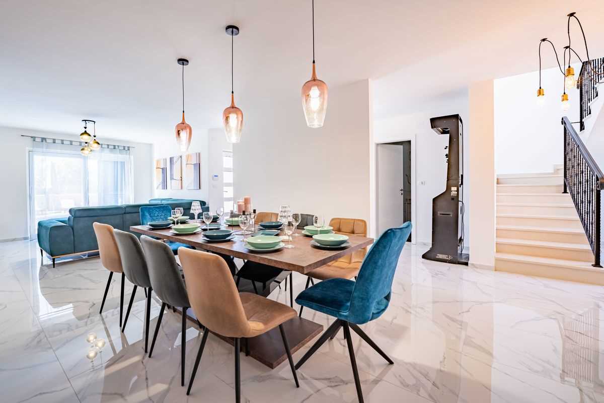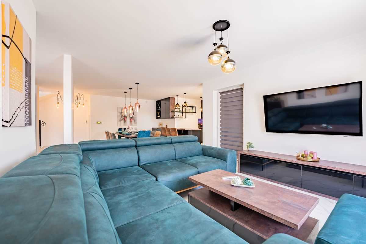 Villa Silvia Krk is modern comfortable 5-bedroom villa (200 m2) with private open swimming pool (32 m2) in small quite village. 4 Bathrooms ensuite plus 1 Toilet. Spacious living room with fireplace, dining area (for 10 persons) and fully equipped kitchen. Terrace with barbecue and outdoor sitting (10 persons). Outdoor area for children. Three parking spots on the property. Spacious garden around the house fully fenced. Outdoor furniture, Darts. Children playground.