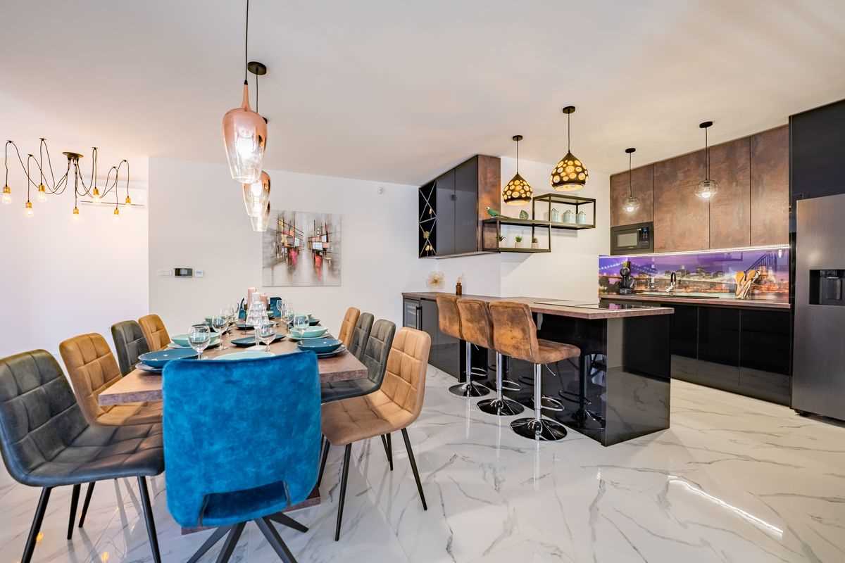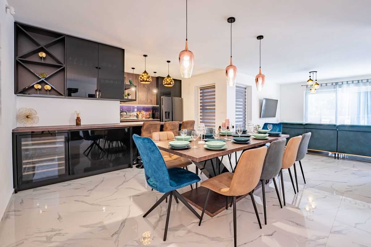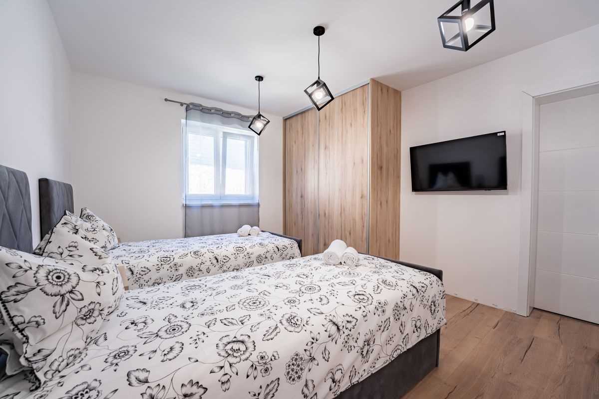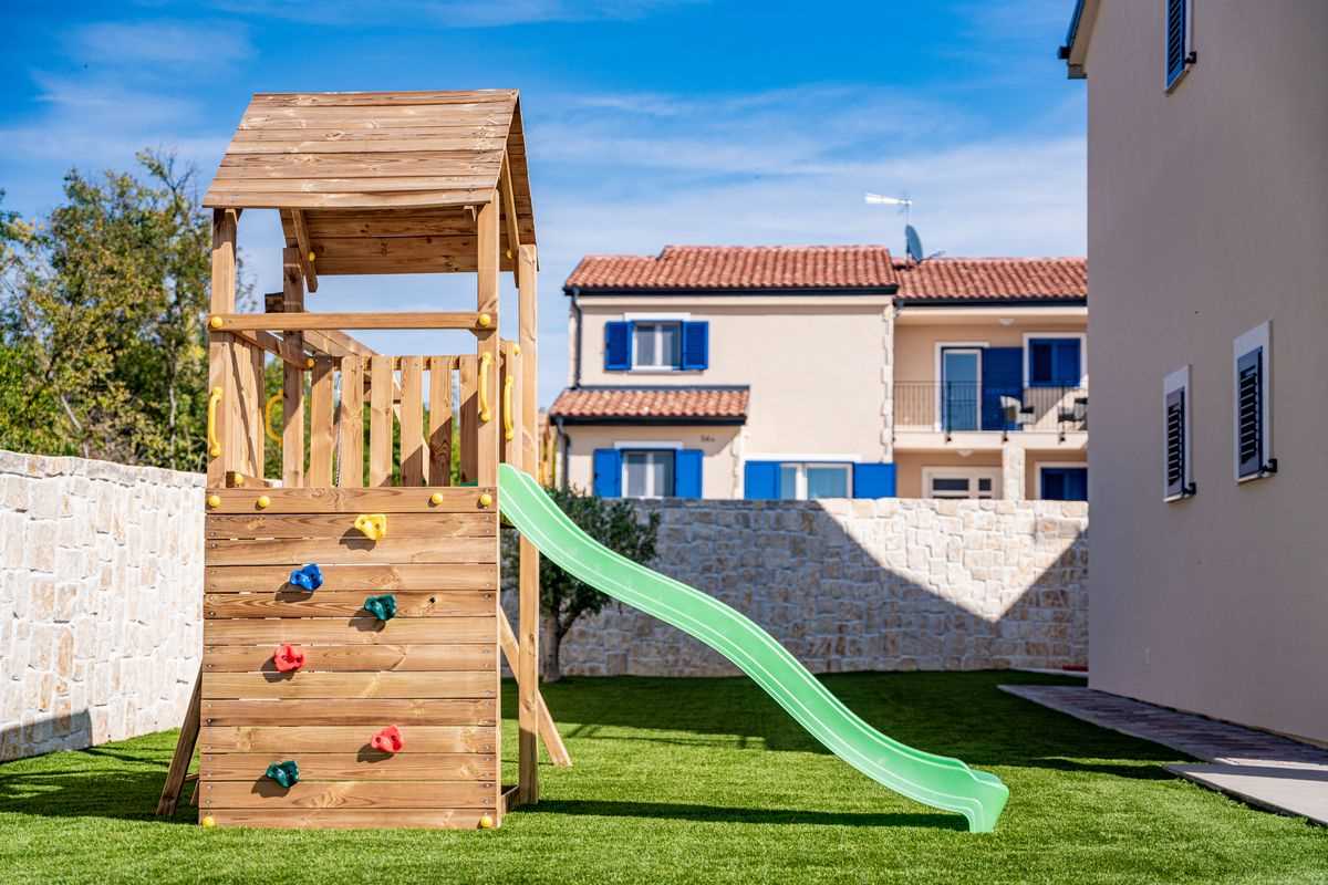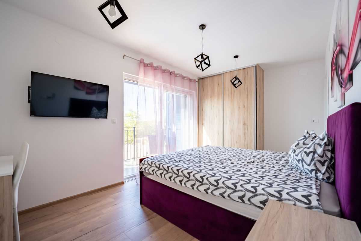 Villa Silvia Krk is modern comfortable 5-bedroom villa (200 m2) with private open swimming pool (32 m2) in small quite village. 4 Bathrooms ensuite plus 1 Toilet. Spacious living room with fireplace, dining area (for 10 persons) and fully equipped kitchen. Terrace with barbecue and outdoor sitting (10 persons). Outdoor area for children. Three parking spots on the property. Spacious garden around the house fully fenced. Outdoor furniture, Darts. Children playground.