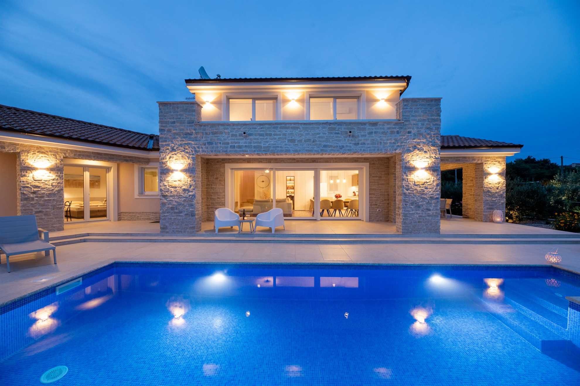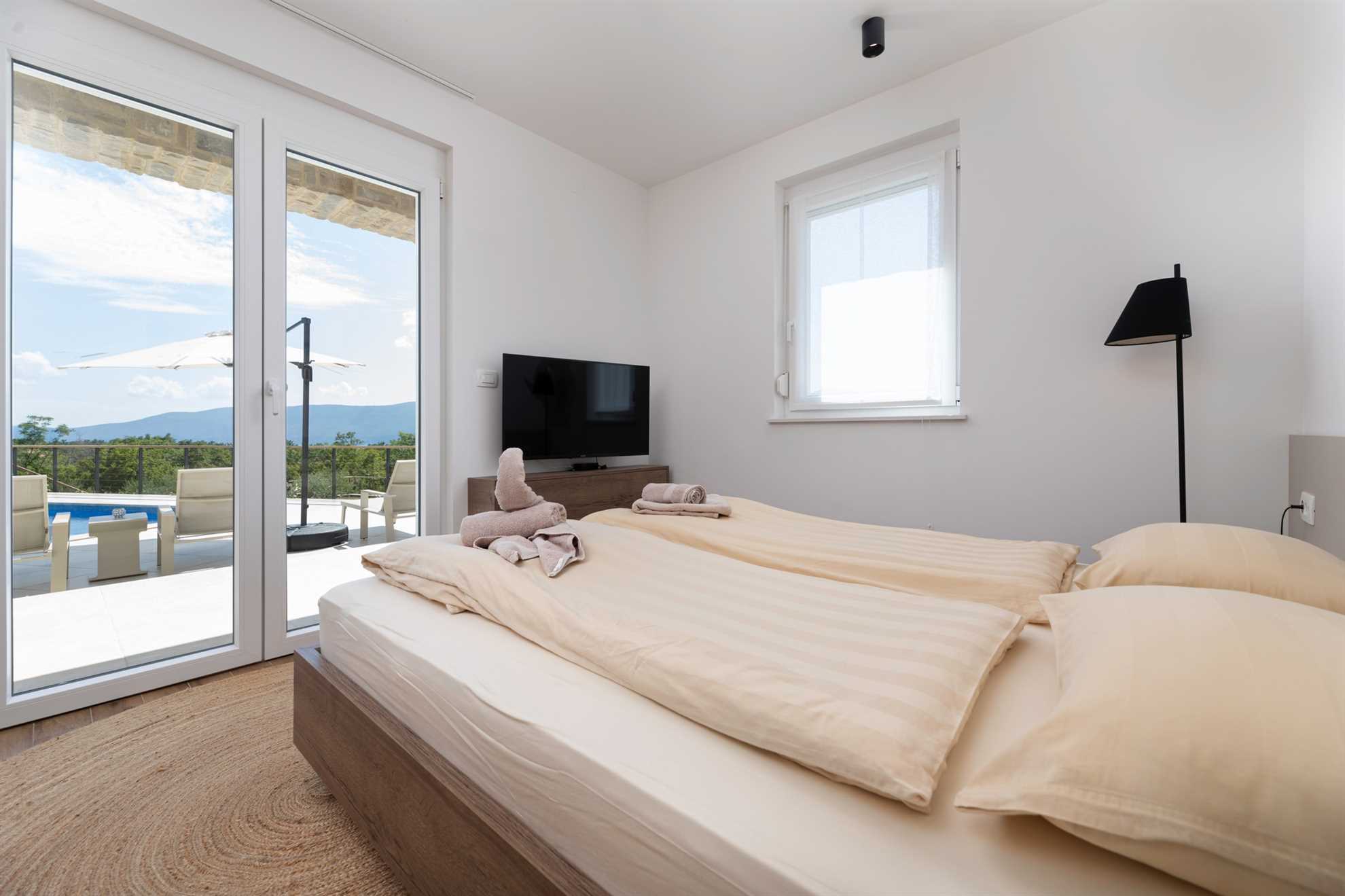 If you are looking for a vacation home that combines the comforts of modern living with charming Mediterranean vibes, Villa Olive Garden is the perfect choice for you. Located in the tranquil village of Brzac on the western side of Krk Island, this villa offers breathtaking sea views, an olive garden, a spacious terrace, and a large pool. With four bedrooms and four bathrooms, the newly built villa accommodates up to 8 guests, providing complete privacy for a relaxing vacation.