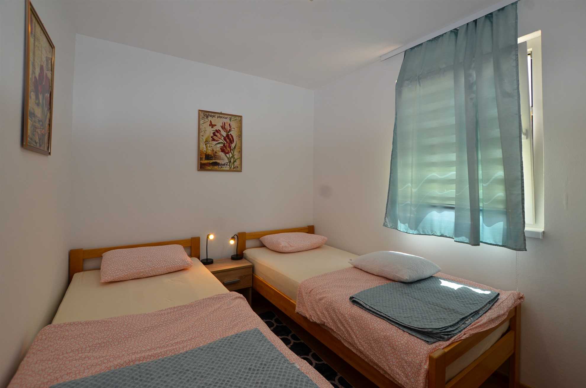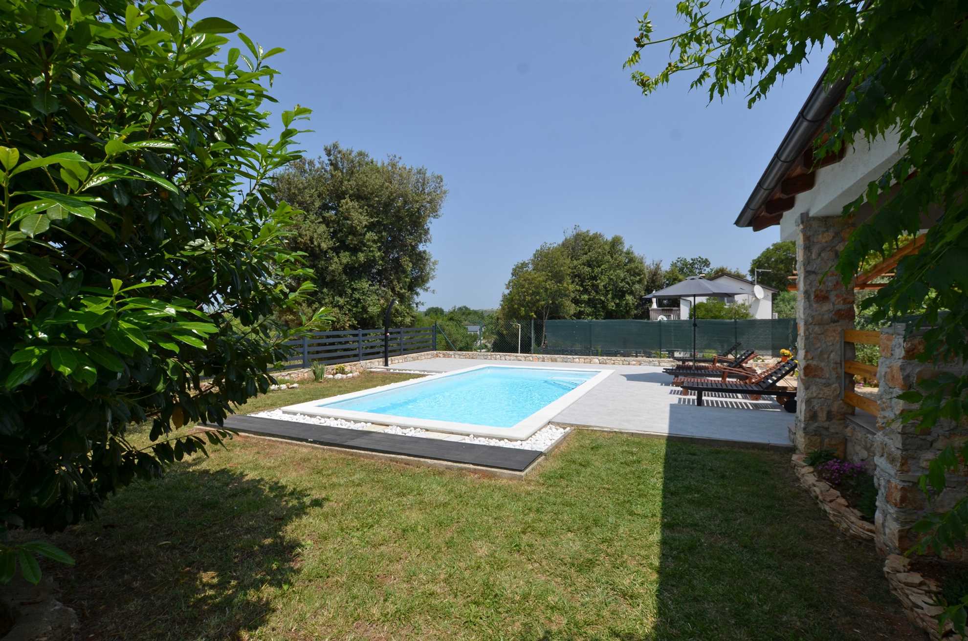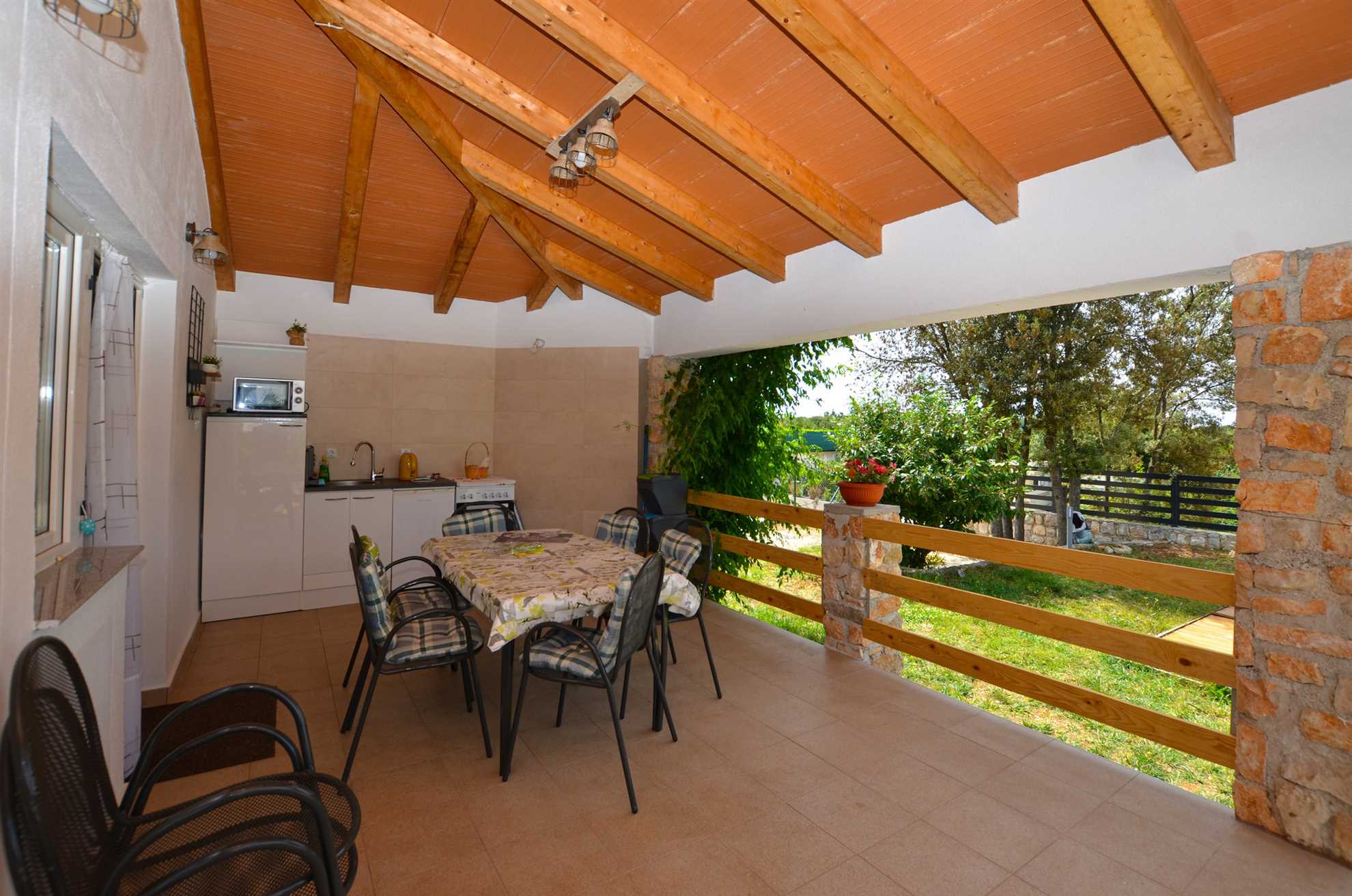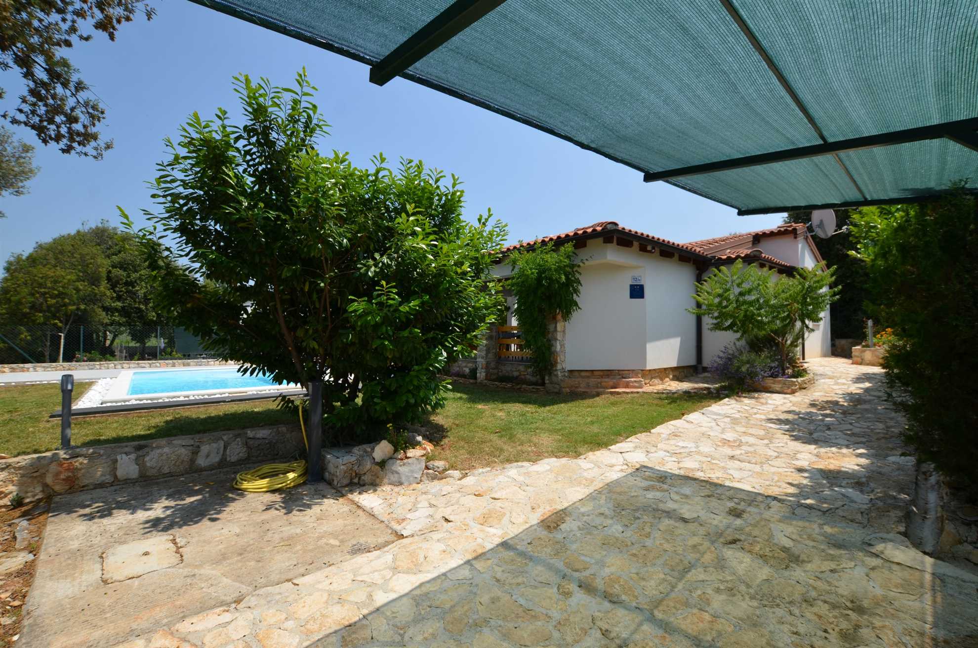 A house with parking situated on Cocalleto, close to the camp Vestar and to the beach, few kilometers from Rovinj. The house has a big terrace with outside with an outside kitchen. Inside a kitchenette, living room with Sat TV and internet Wi Fi, a bathroom with shower, 2 bedrooms. The house has air condition. Outside a private parking and a pool. The house is best for 4 person but it can accommodate a 5th on the sofa.
