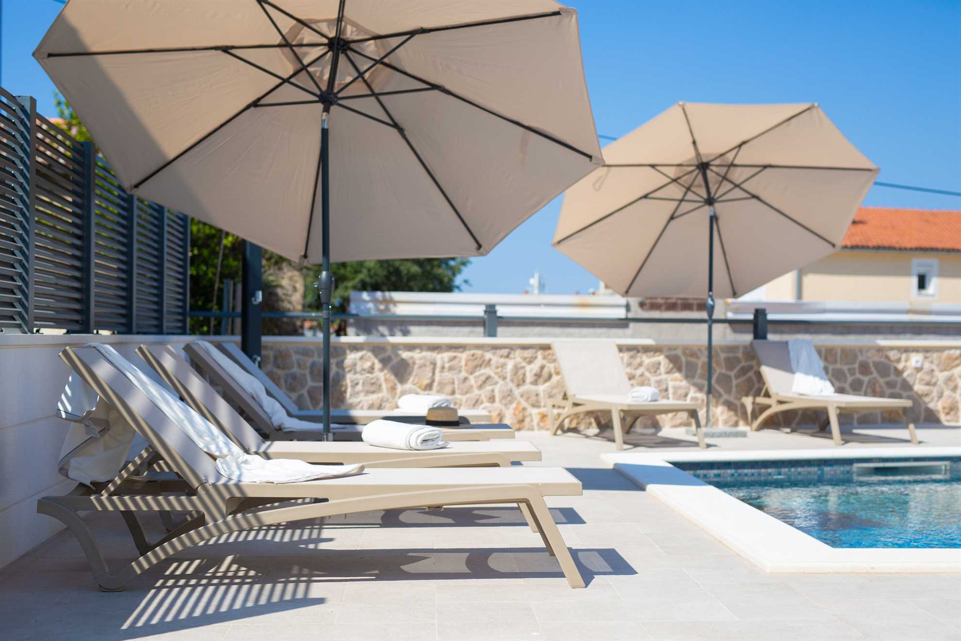 Beautiful, charming villa QUARNARO in Omišalj, island Krk for 4 - 6 persons. The house has two bedrooms and two bathrooms with shower. The convertible sofa in living room is used as an additional bed. Outdoor area with heated pool, terrace, barbecue area is a perfect spot to enjoy hot summer days! Pets are welcome. Private parking spot provided. Fully equipped, nicely furnished and located near the center of Omišalj and the sea. The pool is open 29.03.-02.11. Welcome!