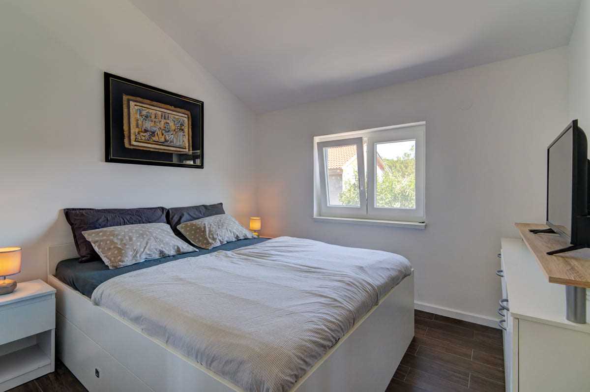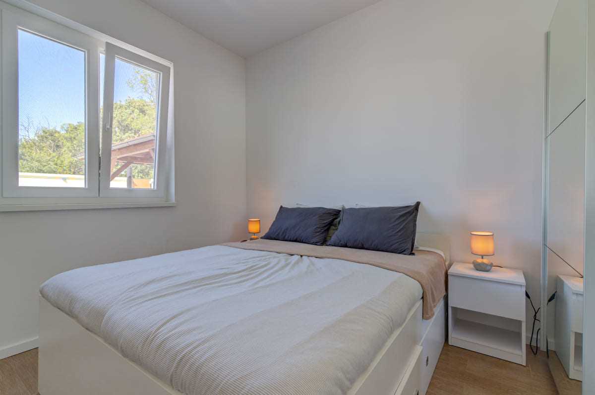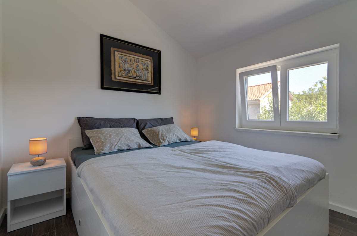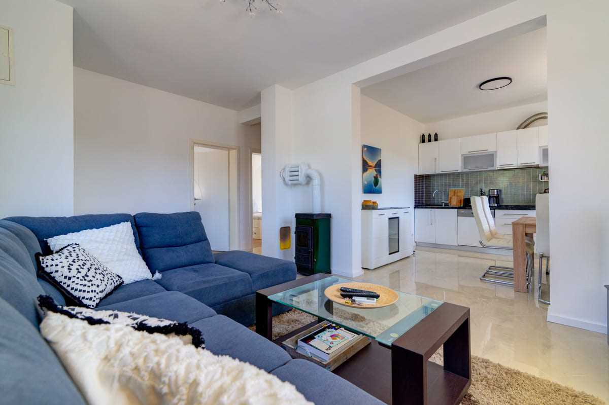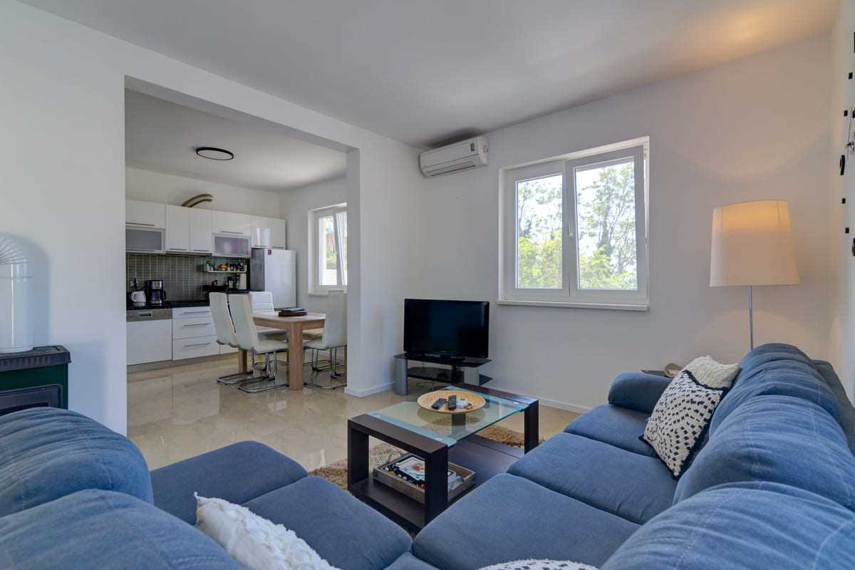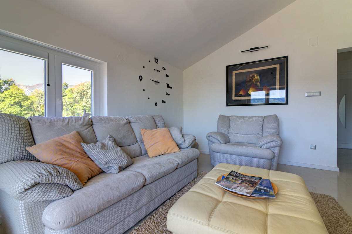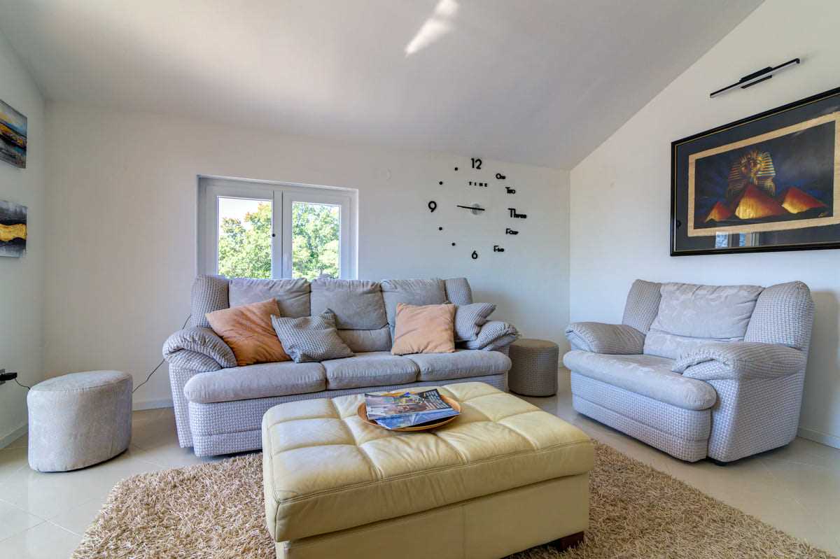With an elegant saltwater pool and a quiet location close to Crikvenica town center, this beautiful holiday home offers everything you could wish for a relaxing holiday. When you enter the property, you will be enchanted by the harmonious combination of indoor and outdoor areas. The ground floor and first floor, together with the magnificent outdoor area, offer maximum enjoyment for families with children or friends longing for relaxation. The property is generously laid out and consists of a ground floor and a first floor, each with two bedrooms, a bathroom, a stylish living room and a state-of-the-art kitchen. The tasteful furnishings and carefully selected details give the house an inviting atmosphere that invites you to linger. The villa can accommodate up to 10 people, with 8 people being the optimal occupancy. Access from the ground floor to the first floor is via a picturesque external staircase. A covered terrace with a barbecue invites you to spend sociable evenings, while the well-kept garden and the spacious 32 m2 pool represent an oasis of relaxation. Parking spaces in the yard ensure convenient storage of vehicles. Located in a quiet and idyllic area, the villa is not suitable for parties and youth groups are not allowed. This guarantees guests an undisturbed and relaxing break in this dreamlike environment. This villa is undoubtedly a place where unforgettable memories are created. Discover the beauty and comfort of this property and let yourself be enchanted by its unique atmosphere.