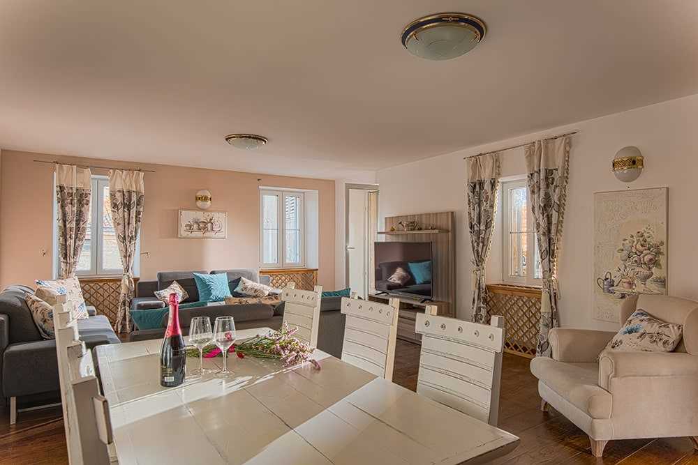 Welcome to the apartment in the heart of Poreč! Enjoy Mediterranean charm, modern design, a large terrace, and proximity to the sea. The UNESCO-protected Euphrasian Basilica and the seafront promenade are just a minute away. Two bedrooms, two bathrooms, a fully equipped kitchen, Wi-Fi, air conditioning, and more – for a perfect holiday. The apartment consists of two bedrooms, a fully equipped kitchen, a living room, two bathrooms, and a spacious sun terrace – ideal for relaxing and enjoying the view. Guests have exclusive use of the entire apartment, including the large covered terrace. Parking is included.