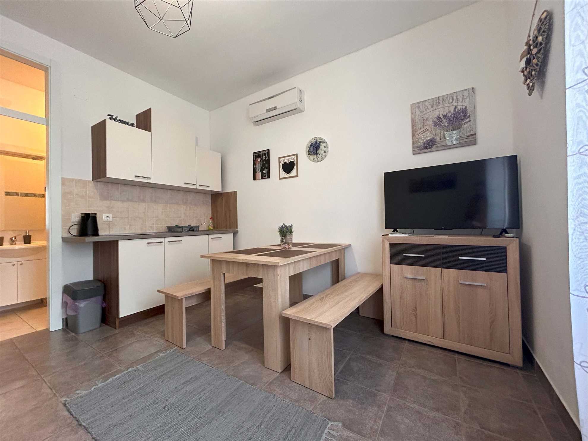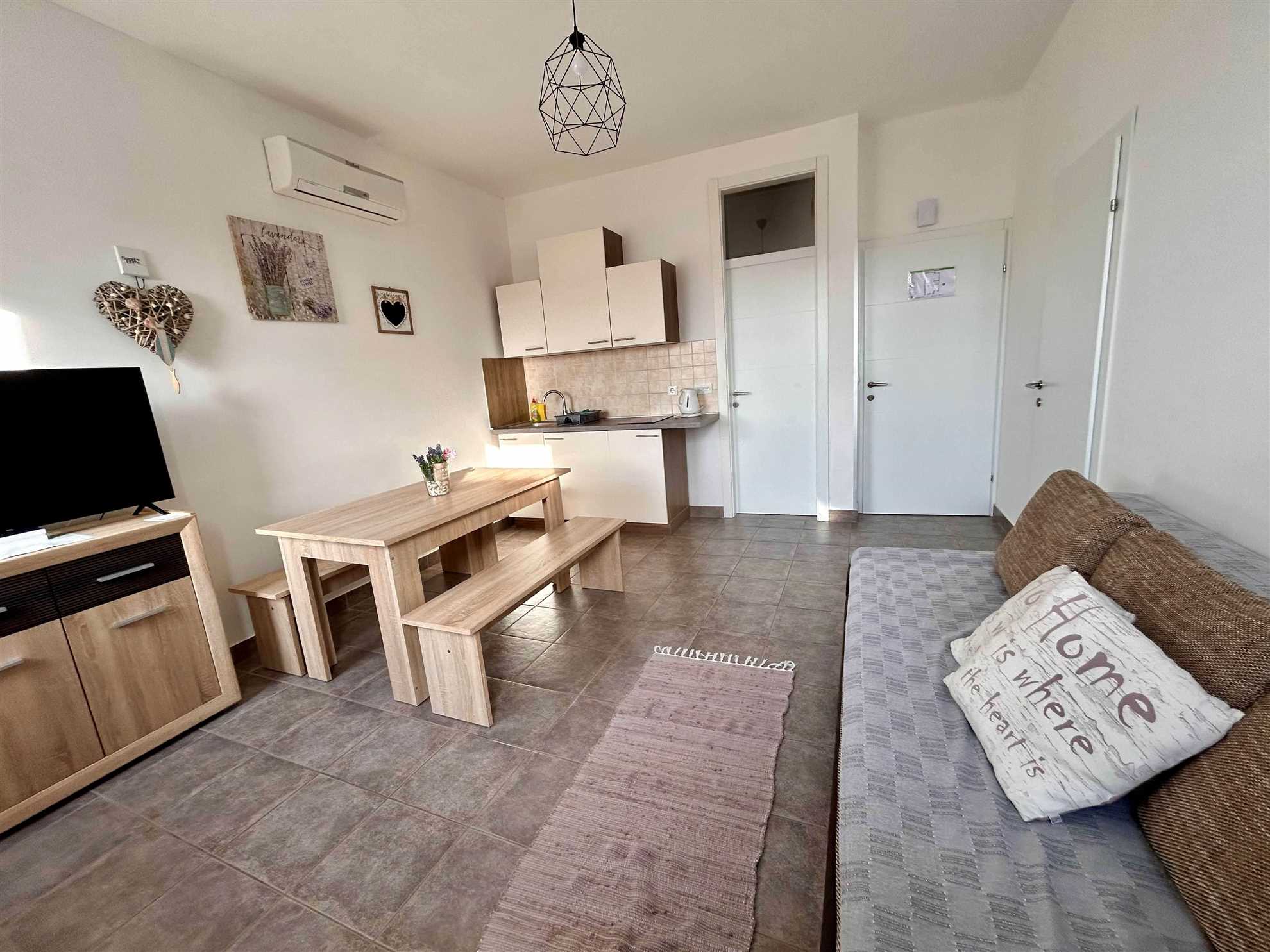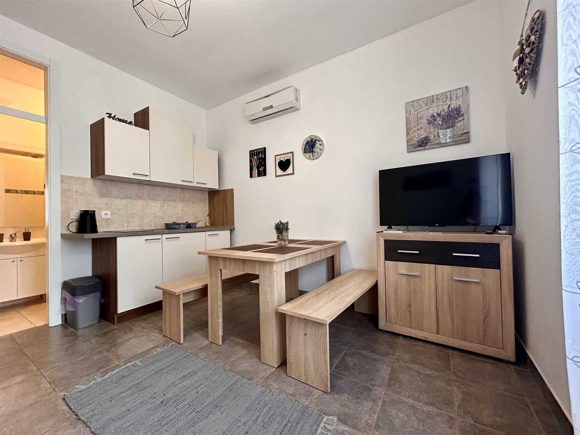 The apartment is situated in a prime location, just 50 metres from the sea, with shops and restaurants in close proximity.