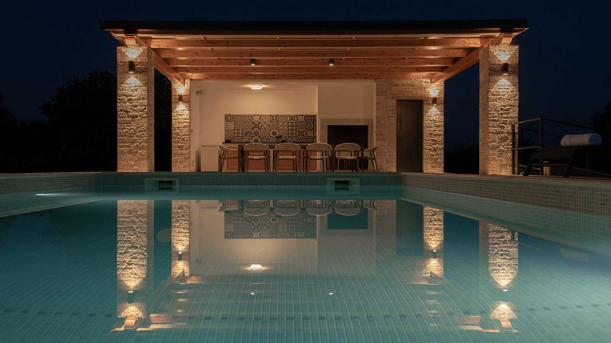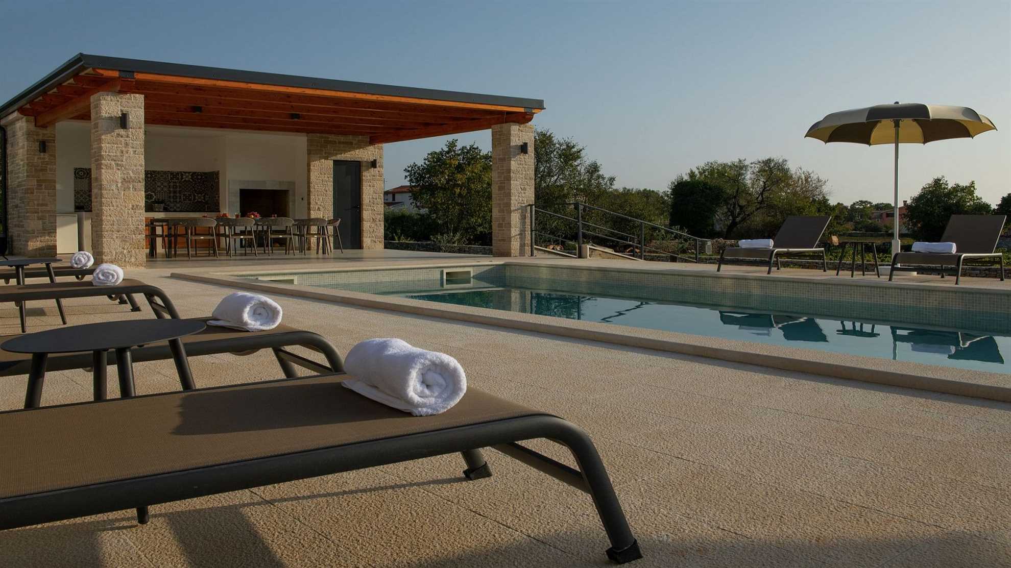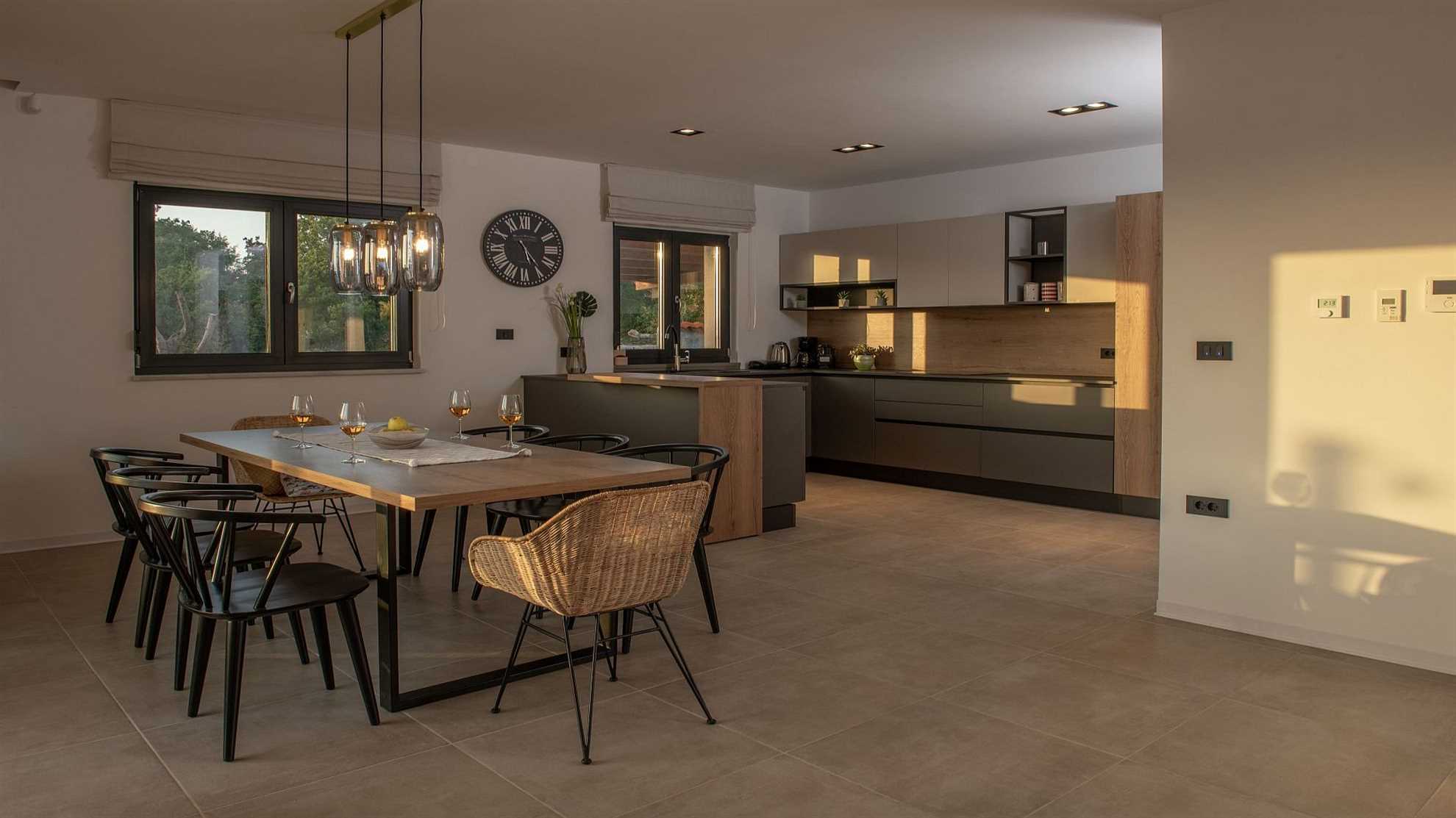 This luxury villa is a truly beautiful and modern villa, and as its name suggests, it exudes luxury that stands out from the surrounding buildings. The exterior of the villa abounds in natural materials and neutral earthy colors, while glass fences additionally contribute to the impression of luxury. The interior of the villa is harmonious, complemented by modern stylish furniture and interesting details. On the ground floor of the villa there is a spacious living room with dining area and direct access to the terrace with swimming pool. The kitchen is equipped with modern appliances and has all the necessary amenities to make you feel at home while preparing meals. It is possible to accommodate up to 8 people in a total of 4 bedrooms, and each room has its own bathroom. The outdoor kitchen and dining area by the pool are ideal for preparing meals and relaxing in the evening with your favourite drink. Take your family or friends on an in-depth holiday away from the hustle and bustle of the city in a villa that provides luxury and comfort.