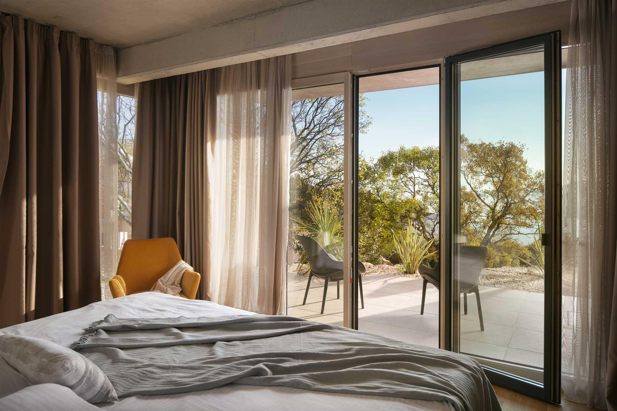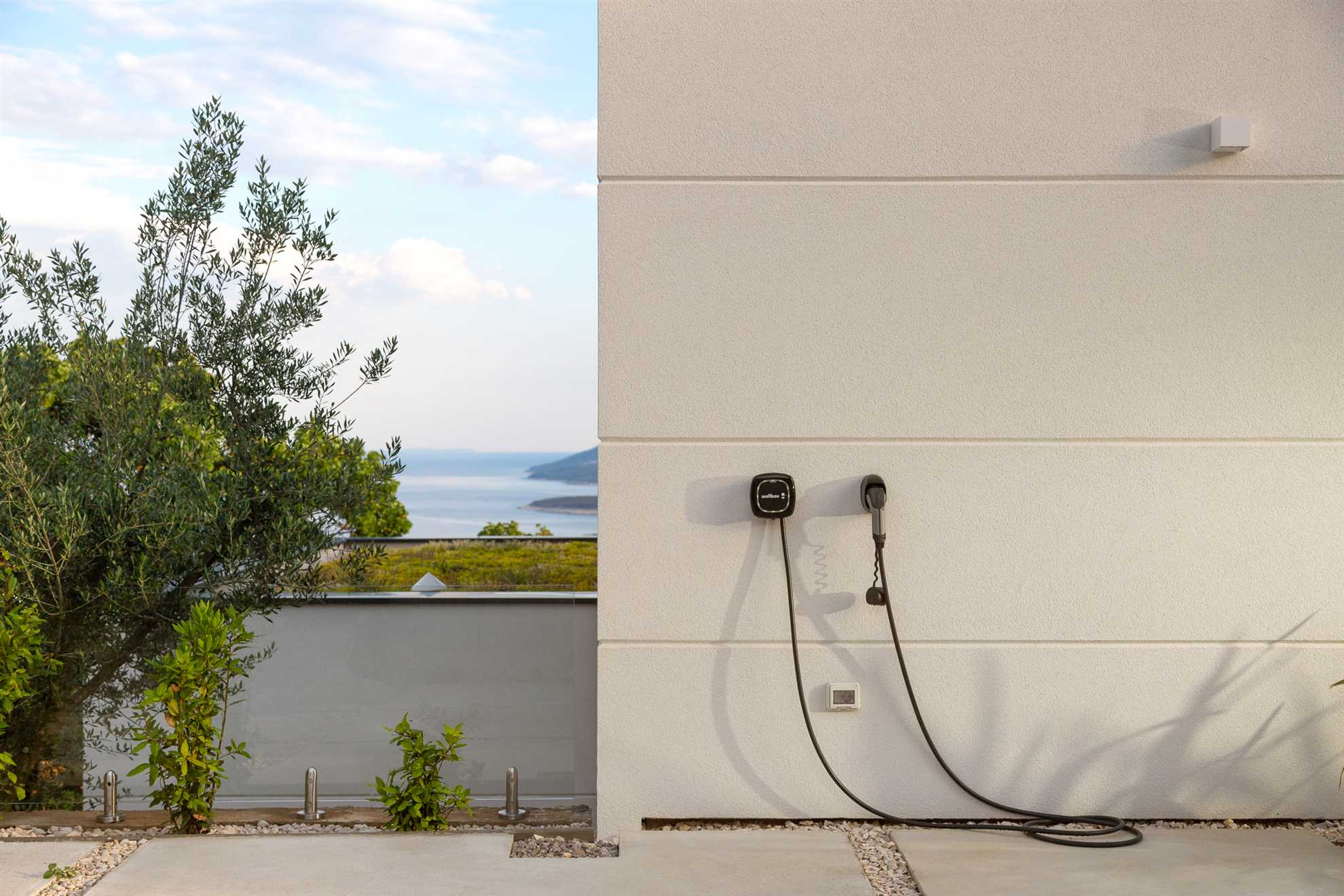 Overlooking the Adriatic Sea and Island Cres, new to the market Villa Verde Horizon is built to provide luxurious comforts, as well as a restful and tranquil holiday escapade. Clean design showcases cement walls, wood floors, natural colored furnishings, floor to ceiling windows and tasteful décor. Enormous windows facing the sea treat to spectacular views from every room. Entering the upper level you will find two of the ensuite bedrooms. The stairs lead to the ground floor, where there are two more ensuite bedrooms, also a bright and spacious living room and a contemporary kitchen with the dining area set for eights. From here access the pool deck with sun loungers and umbrellas, and when dinner time comes enjoy alfresco dining area with an outdoor kitchen and gas barbecue. Entered from the pool deck Swedish sauna, gym and a Jacuzzi are also at your disposal. Dalmatian balote is there for those with competative spirit. Friendly host awaits your arrival.