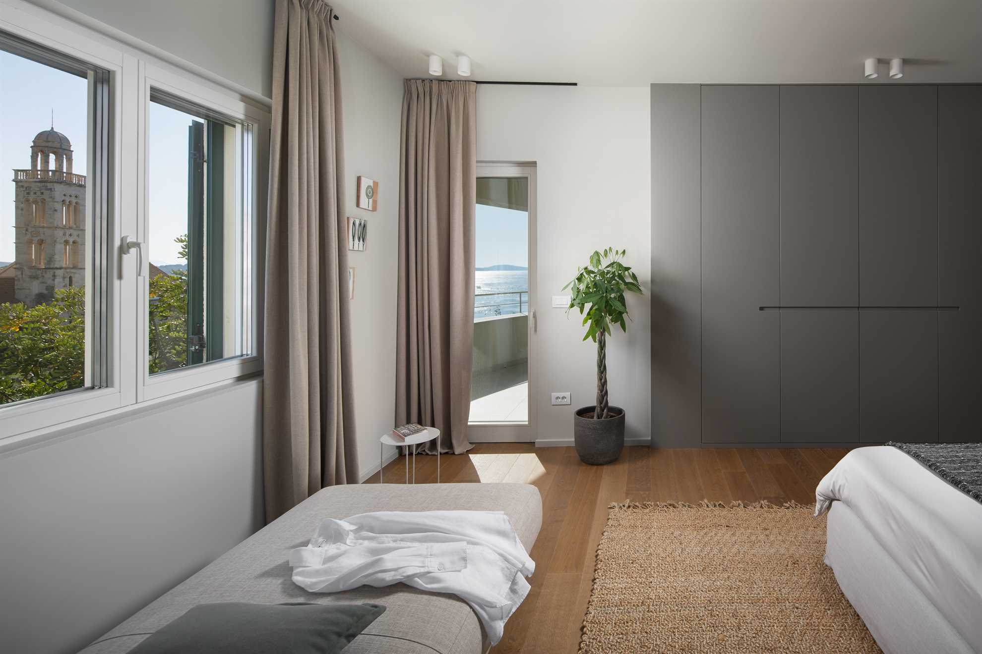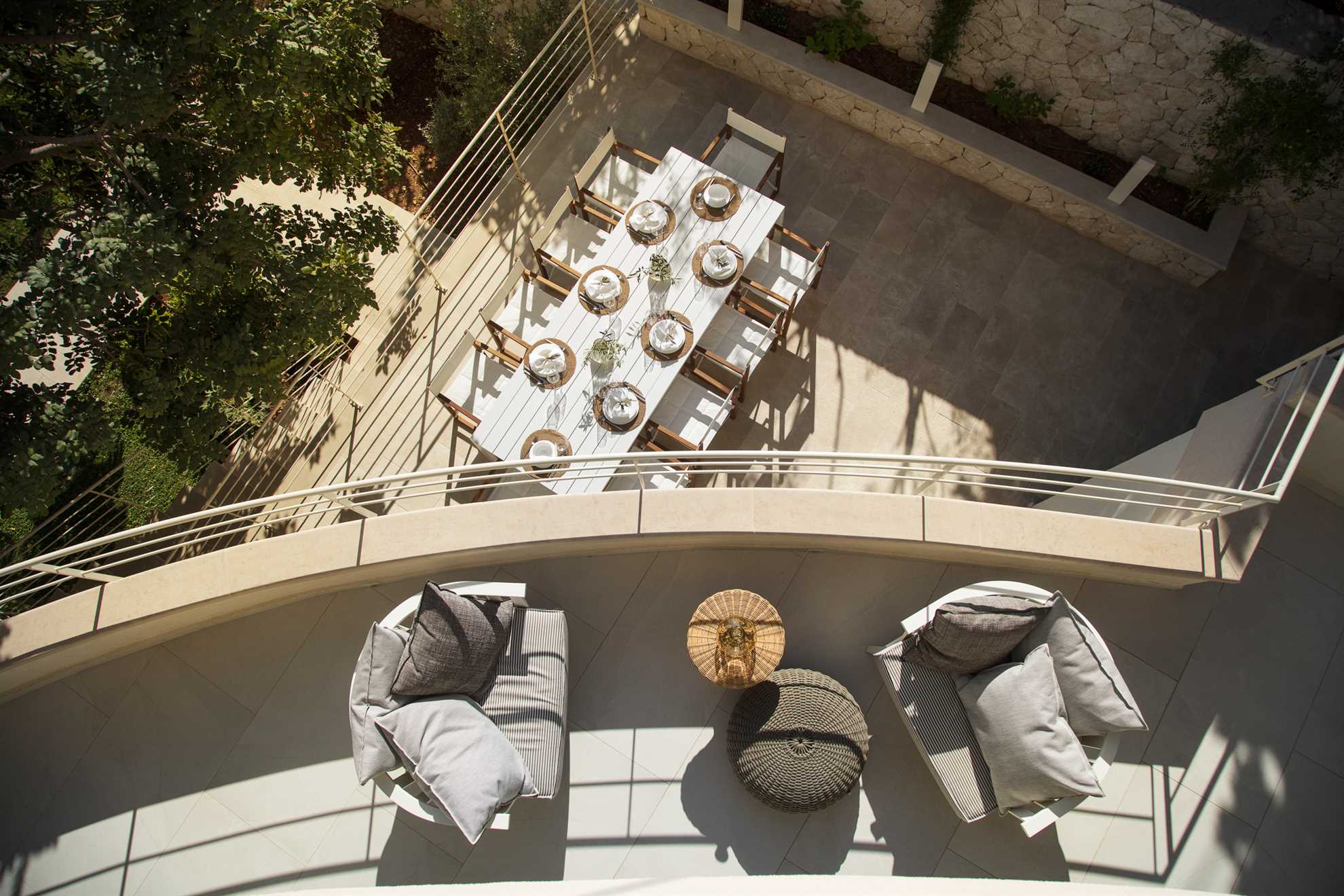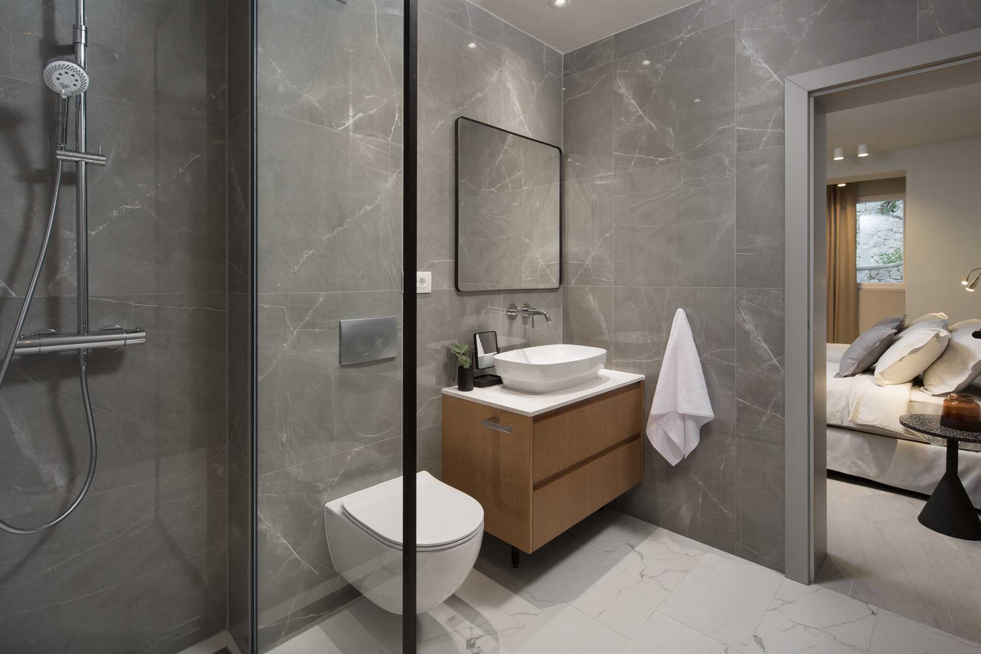 A stone throw’s away from Old Town Hvar, also the beach, restaurants and cafés, plus a luxurious view of the sea and the historic Franciscan monastery, Villa Amore doesn’t seize to amaze any observer. With four specious levels, each with its own living area, a kitchen, and an entrance to a terrace or a balcony, this holiday home gives way to privacy for multiple families. Staring at the top is the attic, with a living room and one of the ensuite bedrooms with an exit to a charming terrace keeping a Jacuzzi, an outdoor kitchen and a large dining table. Level below occupies another kitchen with a dining area, plus a living room and two of the ensuite bedrooms. On the 1st floor is another kitchen with a dining area, a living room, and two of the ensuite bedrooms. Finally, the airy and bright ground floor presents a large kitchen with a living area, a dining table set for 12, the final ensuite bedroom, as well as a massage and fitness studio. From here access a charming garden with a 30 m² heated pool surrounded by sun loungers. Splendid views of the Adriatic and the surrounding greenery can be enjoyed from every corner.