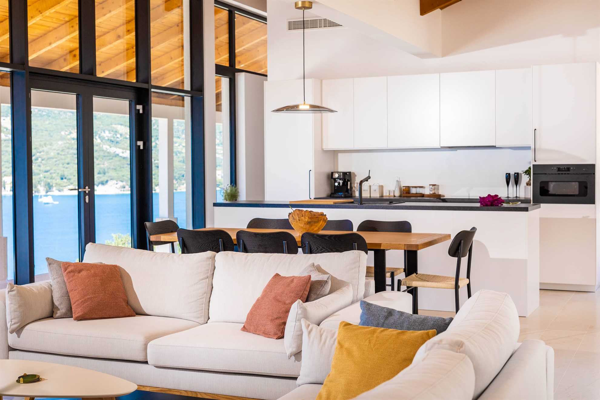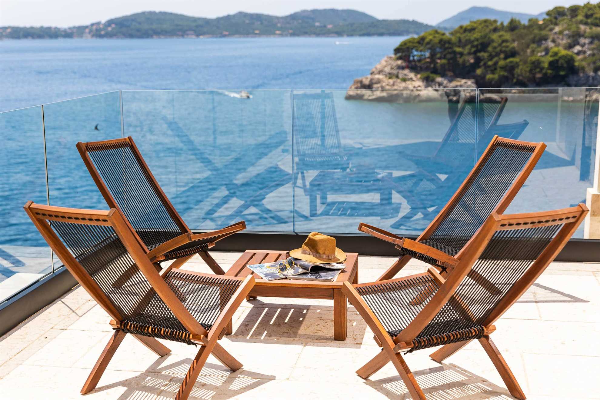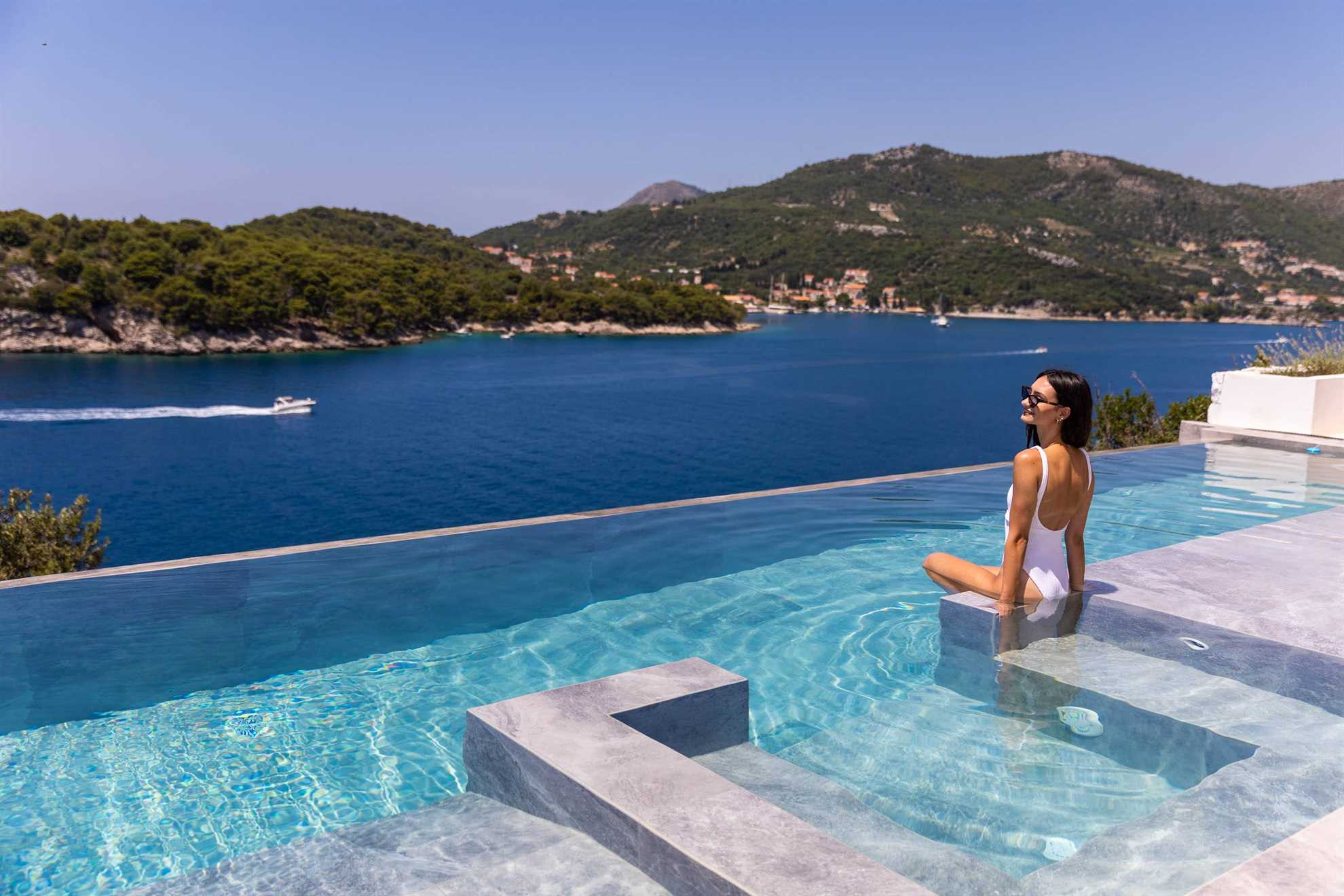 In honor of the artist himself, Villa Milo is a work of art, a museum, and an example of effortless elegance. Located just around the corner from Dubrovnik overlooking Zaton Bay, with a private access to the beach Villa Milo showcases luxurious modesty. The work on the Villa was started by the artist Milovan Stanić himself, but it had only been recently finished in 2022 with the dedication of his family. Perhaps the most notable is the museum situated in the basement of the house taking up 80 m² showcasing artist’s notable work. Airy openness continues throughout the house, with windows facing the sea allowing unobstructed, extraordinary sea views. Natural colors dominate the interior with wood beamed ceilings, comfortable and contemporary yet unpretentious furnishings. Perhaps even most impressive are the outdoor terraces extending the further 200 m² with an infinity pool, covered seating areas, dining table and balconies which can be reached from each of the bedrooms. Enjoy sunsets, leisurely times, art and a unique stay, welcome to Villa Milo.