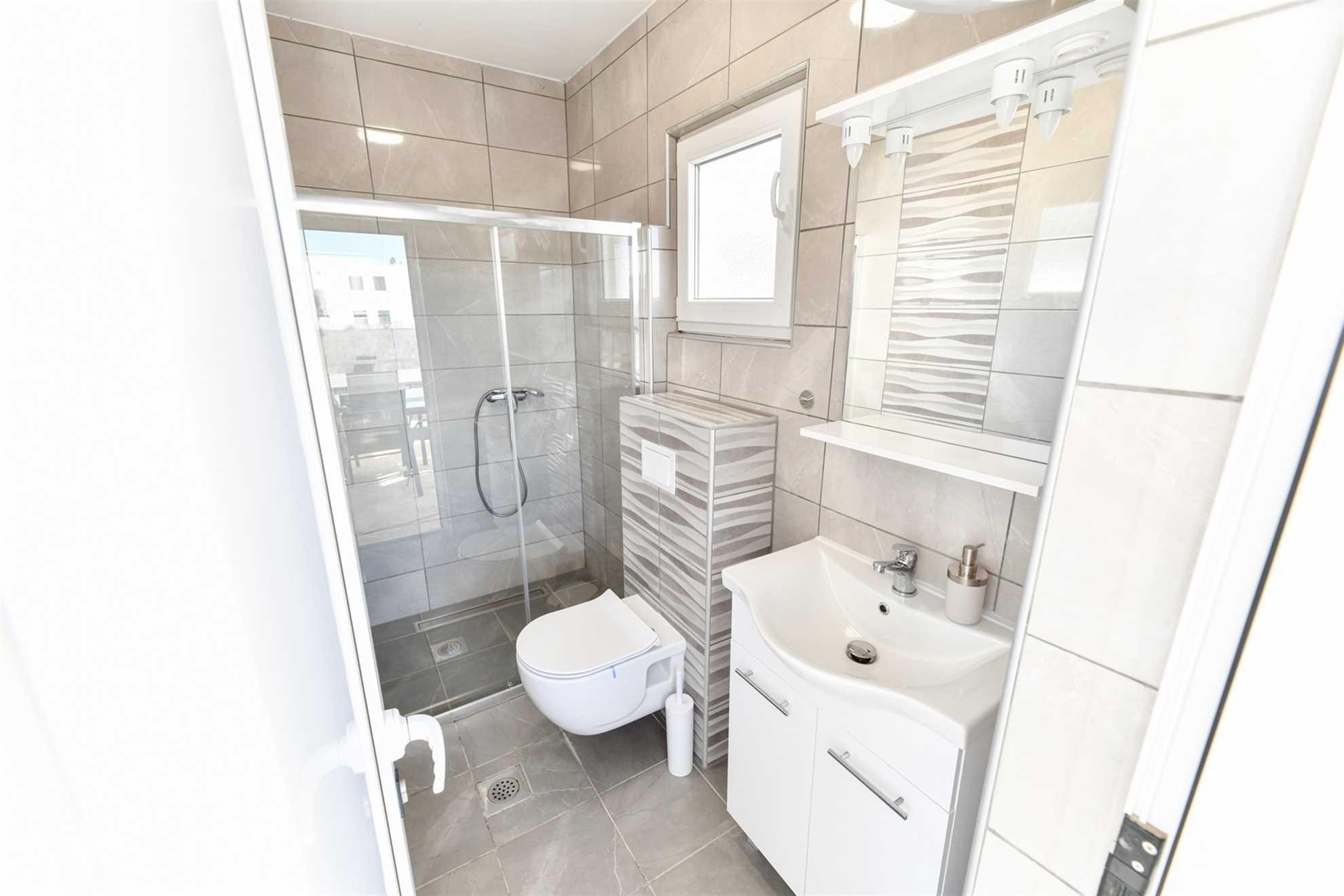 Guest can be accommodated in 3 bedrooms, two of which are equipped with double beds and one with 2 single beds. Rooms are cooled by a common air-conditioning unit located in the living room. Bedrooms share one bathroom with a shower and washing machine but there is also an additional toilet.