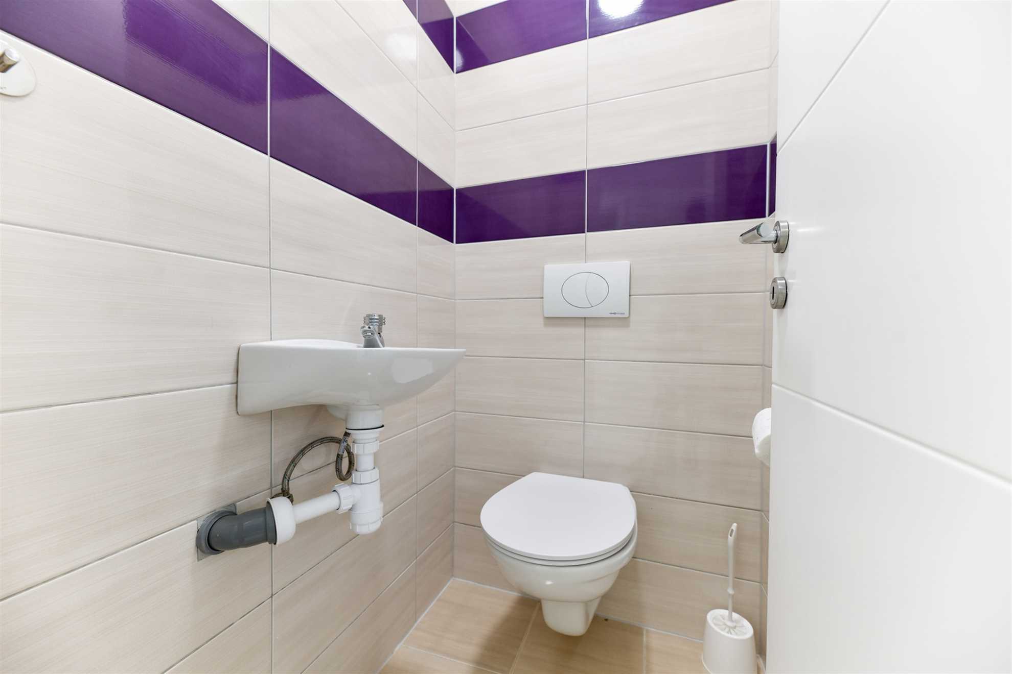 A spacious backyard covered by stone slabs ensures a lot of privacy and is a perfect place to relax. There is a sun deck with a private swimming pool (26m2, depth 1,45m), outdoor shower and sun loungers.