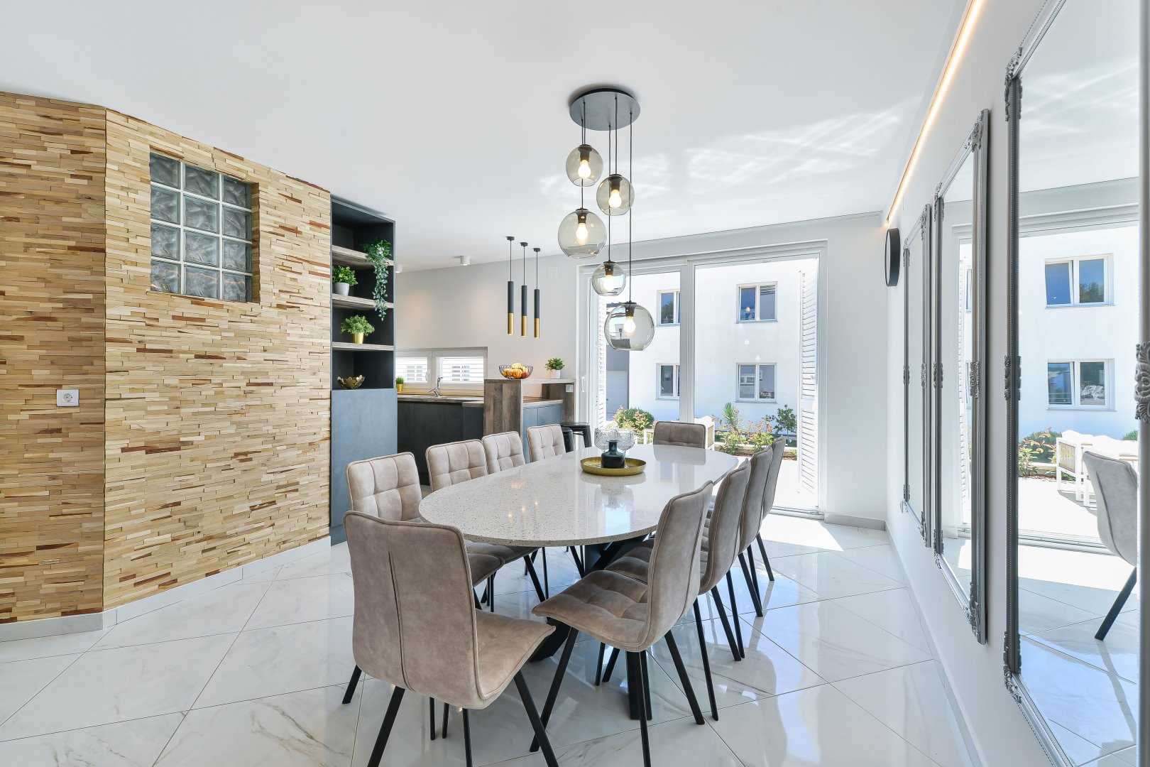 Step into Villa Nika, a sophisticated retreat offering 286 m² of beautifully furnished living space across four floors, designed for families, friends, and groups seeking comfort, privacy, and unforgettable memories. Every detail has been crafted to combine luxury, relaxation, and social living, making it the ultimate holiday destination on the Adriatic.