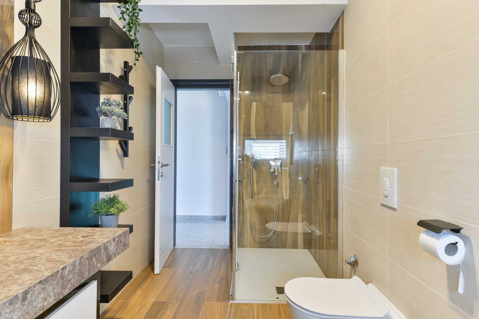 Bedrooms 3 and 4 share a stylish bathroom. All rooms are cooled via central air conditioning. Step out onto the 18 m² partially shaded terrace with a jacuzzi and sun loungers for private relaxation.