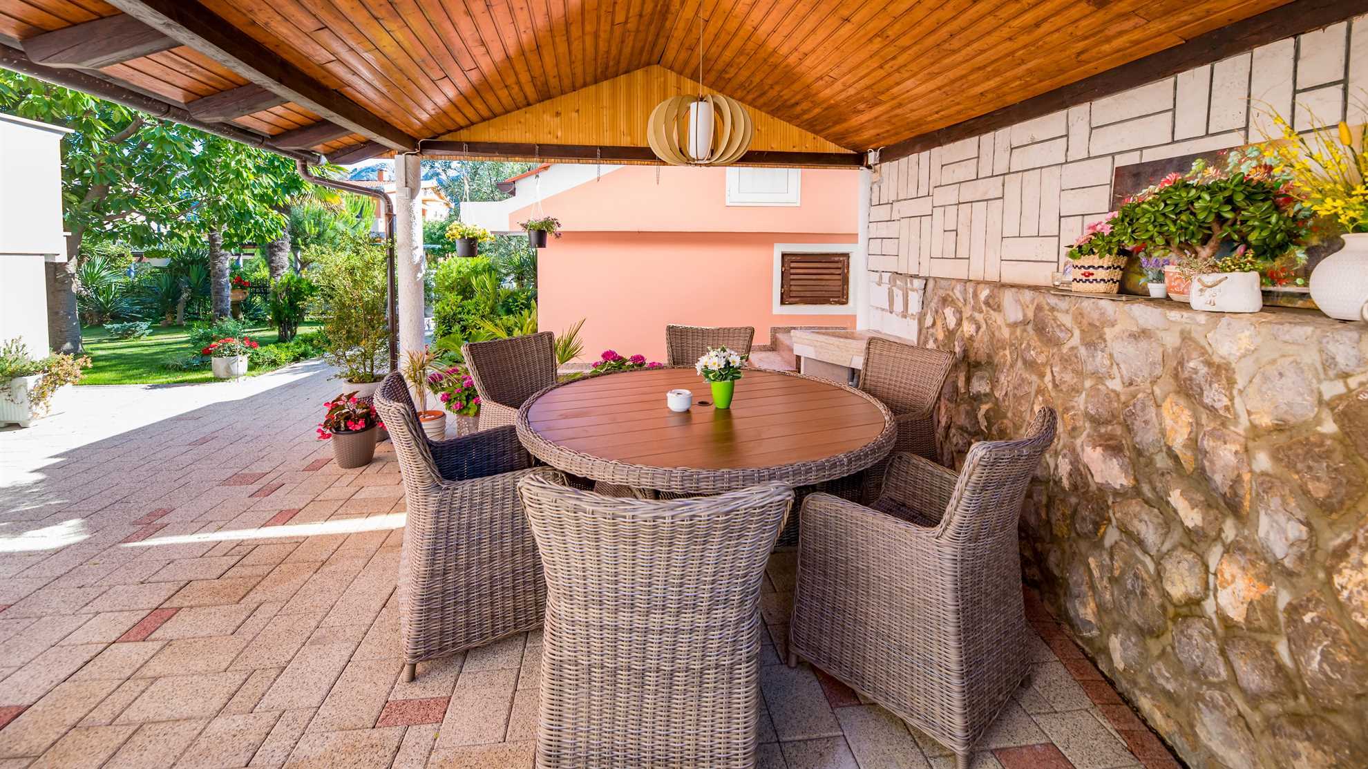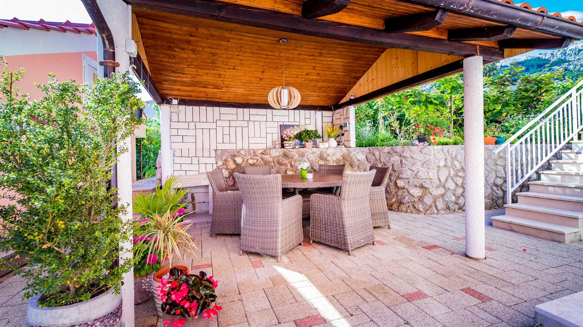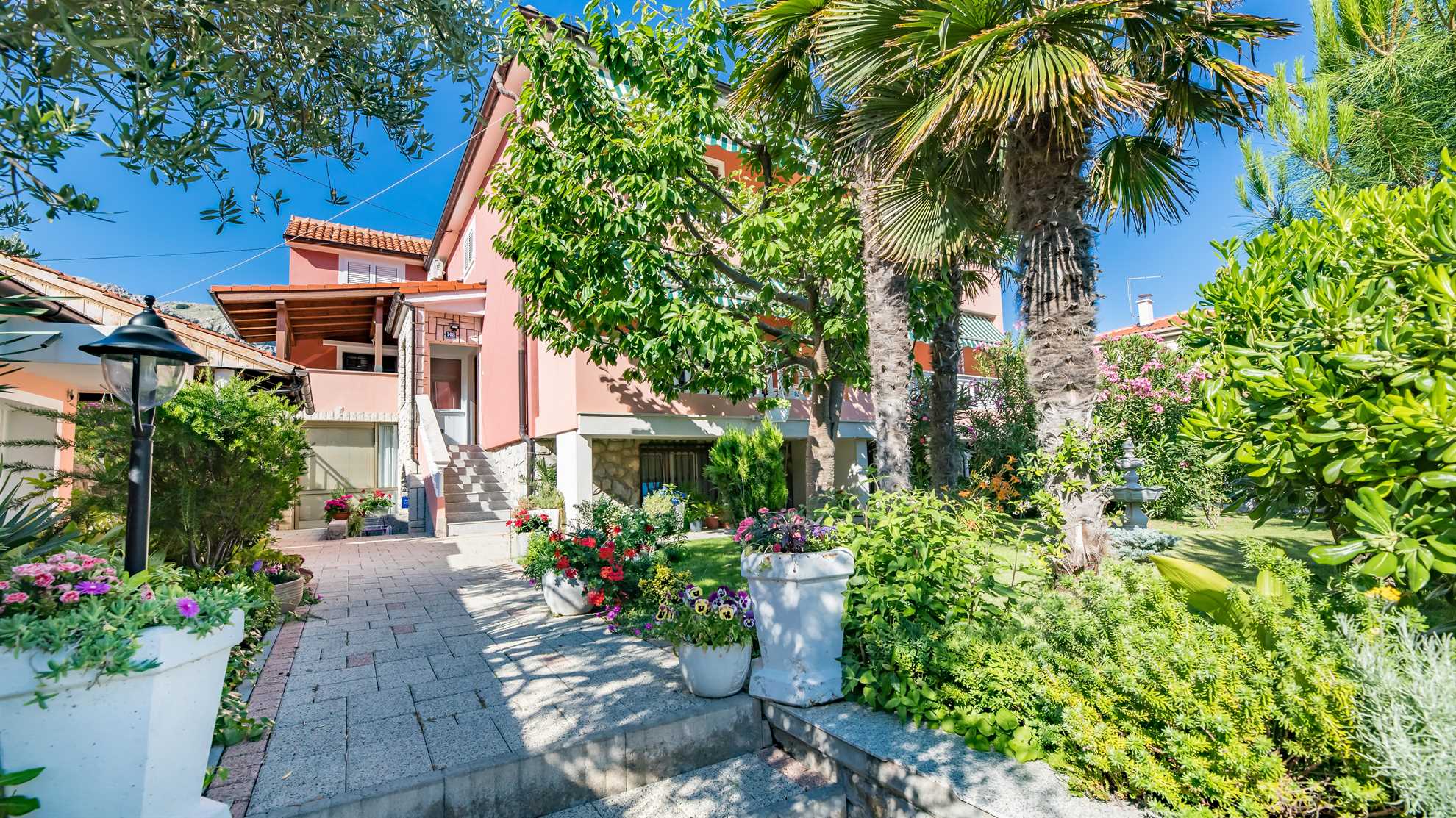 The accommodation is located in a quiet location , and at the same time it is near the center of the town and the sea , which allows an easy walk to beaches, restaurants, cafes and other facilities. Guests are also provided with parking , which further contributes to a carefree stay.