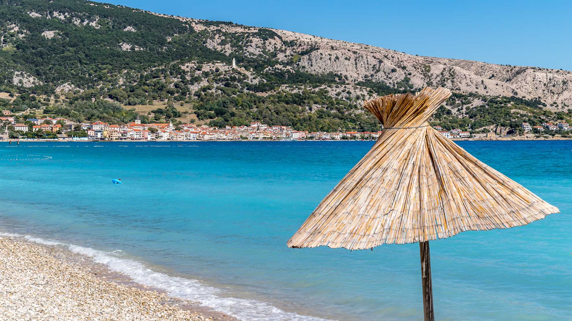 One of the region's most attractive locations is undoubtedly the beach of Vela Plaža, the most popular with those who come to swim in the area. One of Baška's symbols, and a key element in its landscape, it is 1,800 metres (1.1. mi) long and faces a crystal-clear sea. Since 1999 it has been the proud recipieng of the European Blue Flag award, which testifies to its high-quality standards.Many activities and entertainments await visitors there: restaurants and cafes are present all around it, and pedal boats, windsurf boards, beach umbrellas, and sun loungers are available for rent.Besides Vela Plaža, Baška is also home to more than thirty beaches; the most famous of these are the ones near the bays of Vela Luka and Mala Luka, the FKK beach near the Bunculuka camp, and the beaches of Konjska, Vrženica, Jablanovo, Storišće, and Dubna.